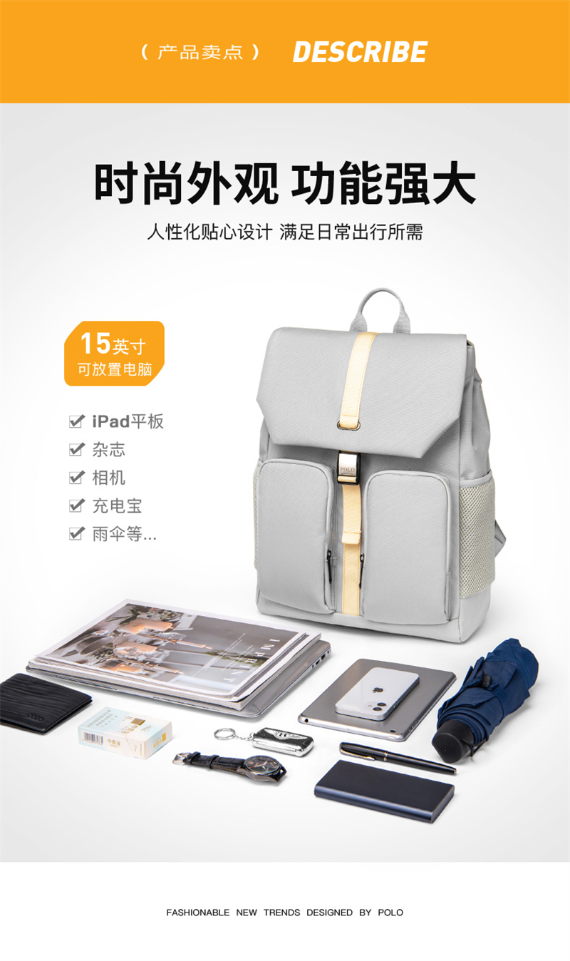 POLO双肩包商务时尚背包男大容量多功能防溅水耐磨包093061