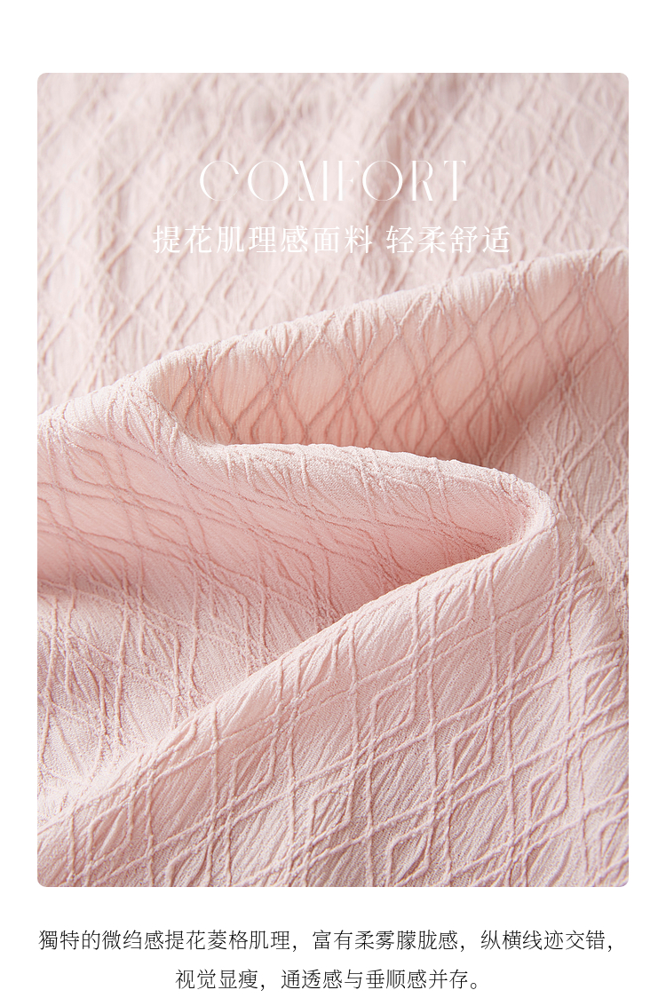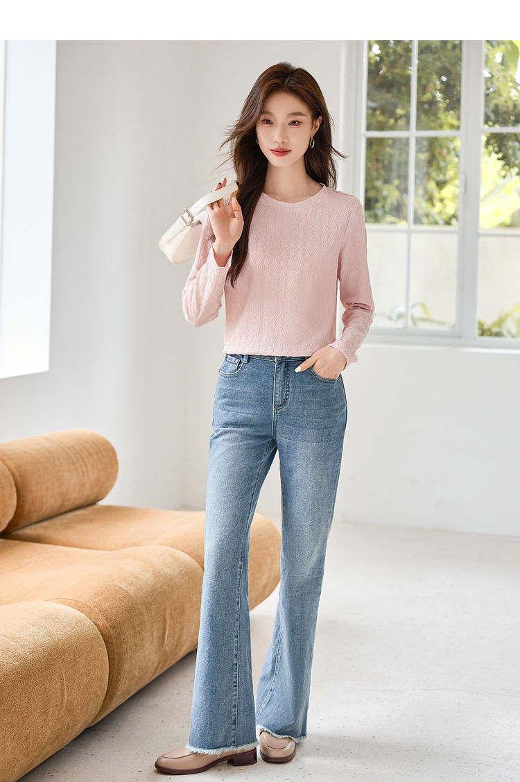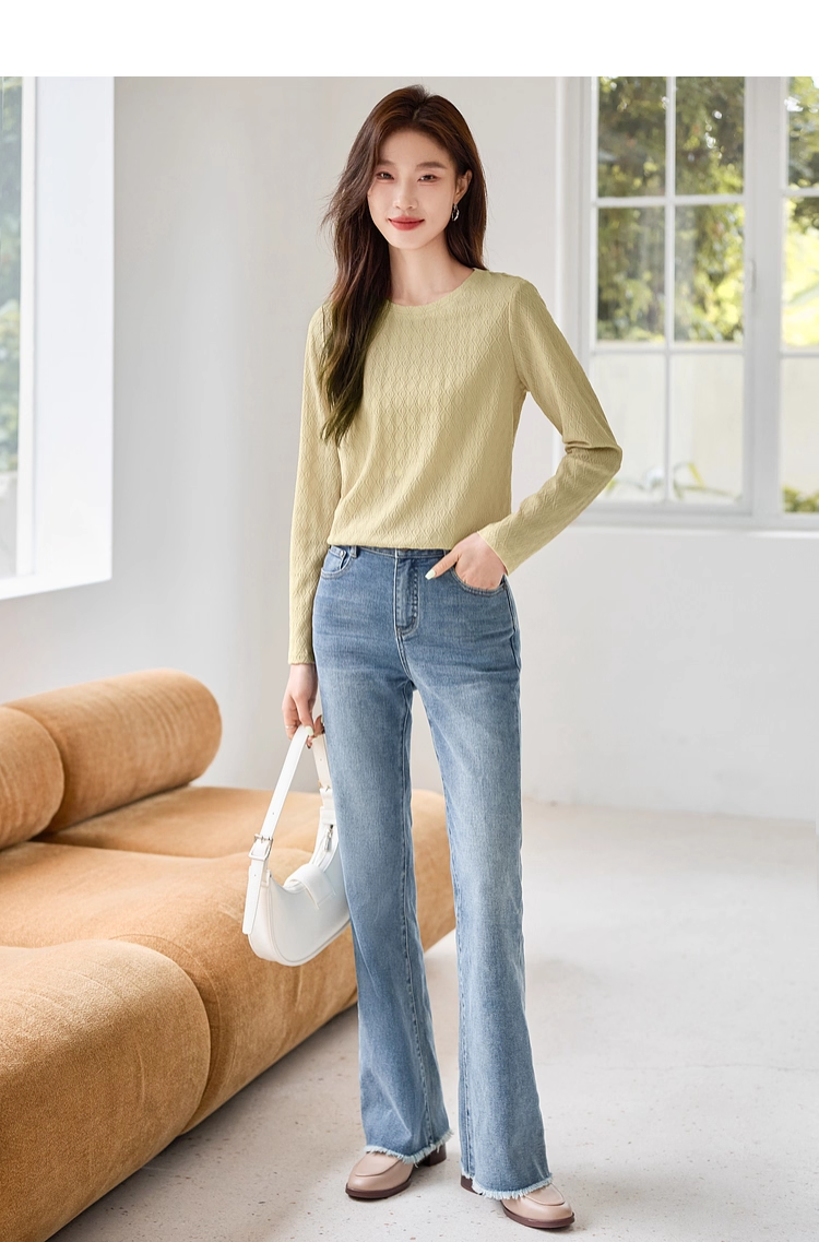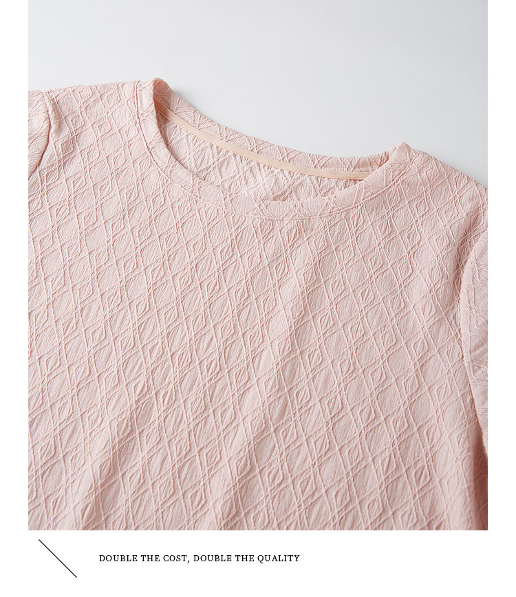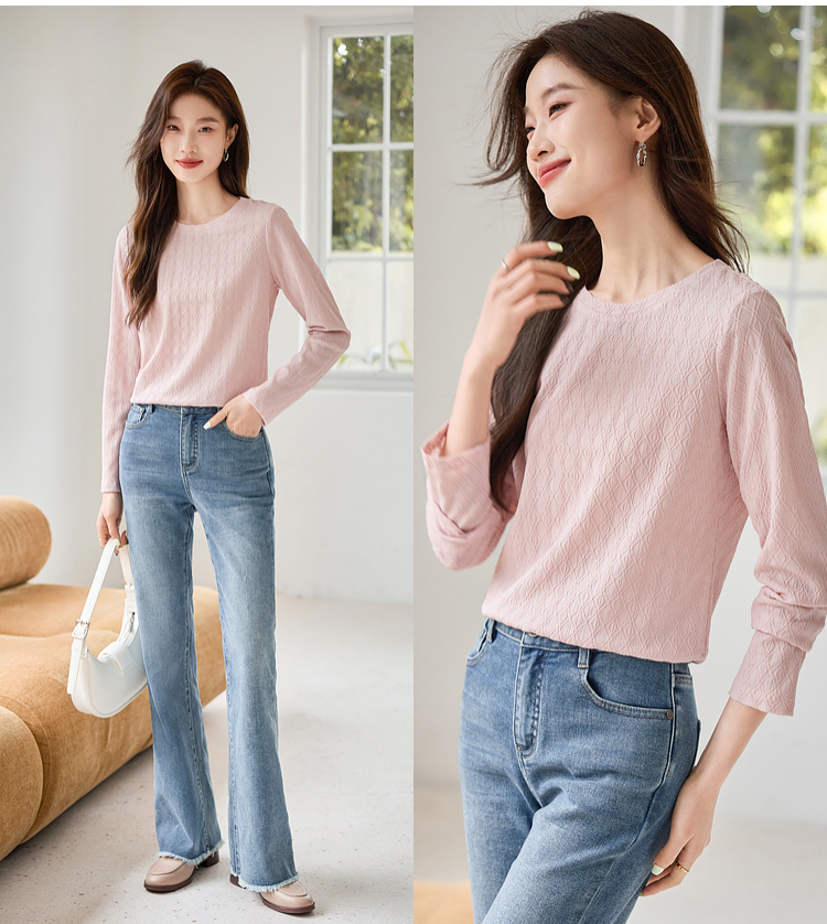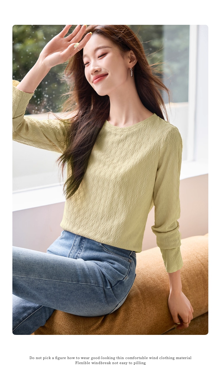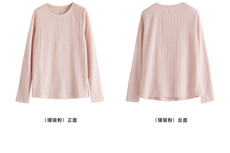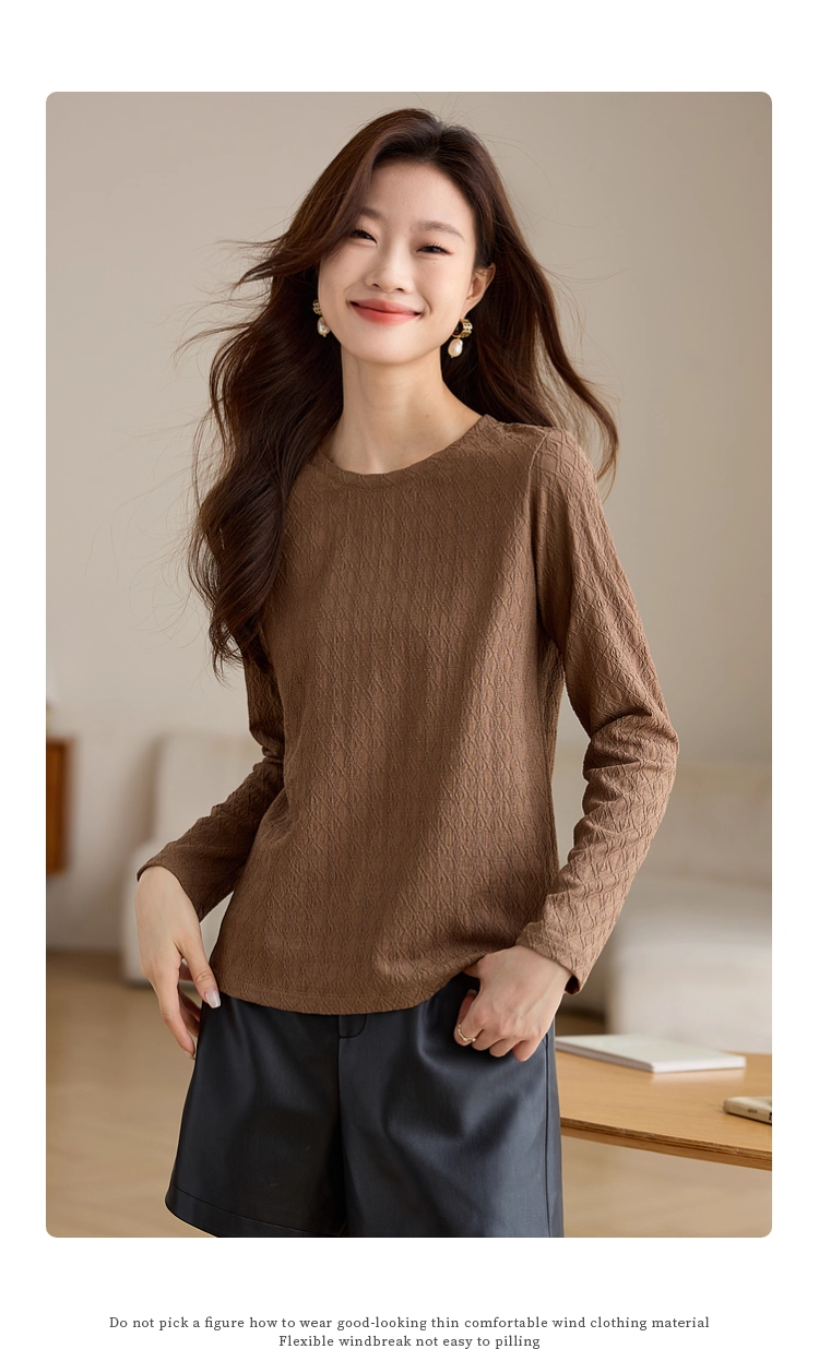 【周四狂欢价】熙世界肌理感菱格圆领T恤女长袖2025秋季新款宽松休闲体恤上衣