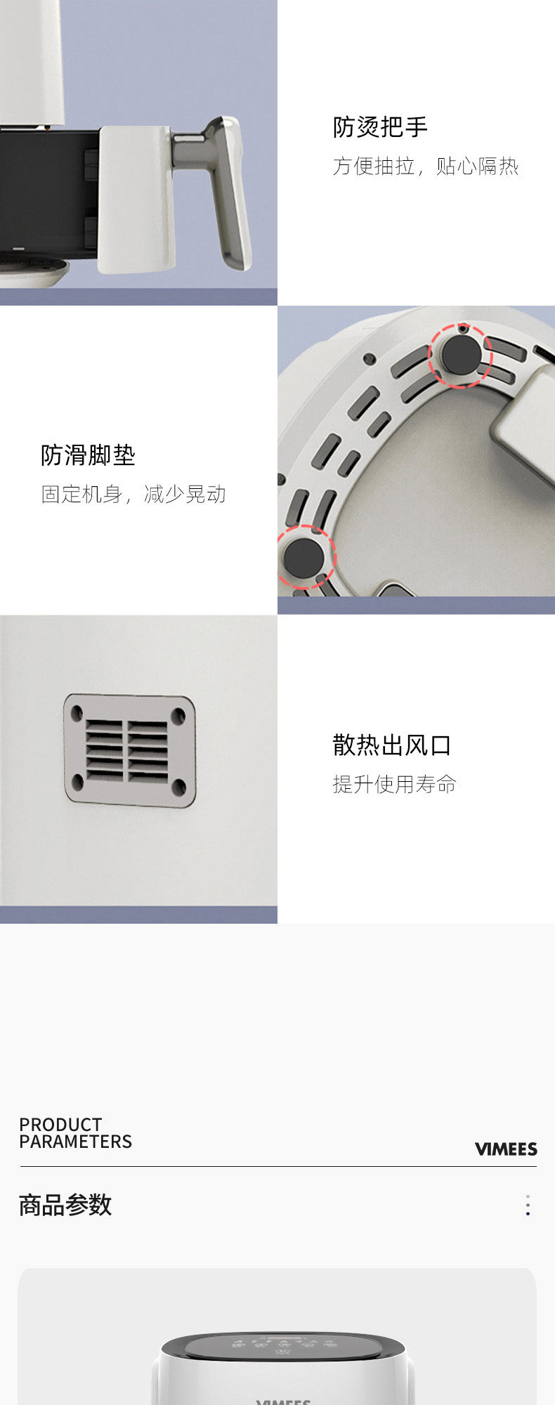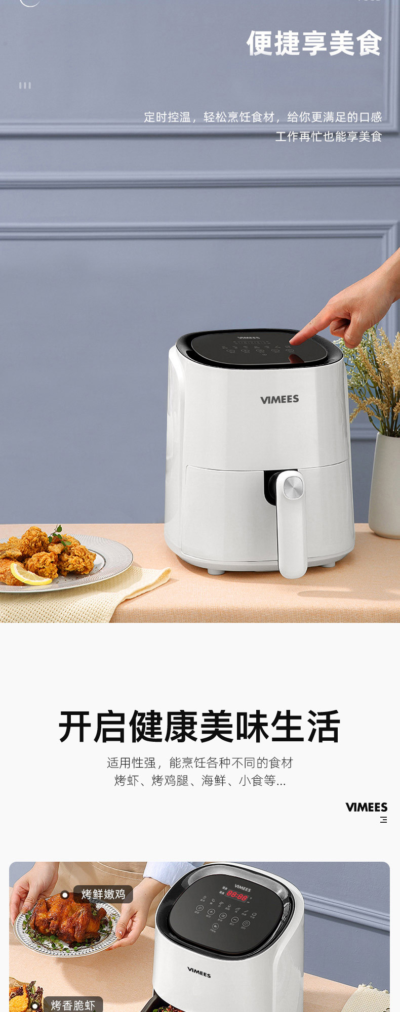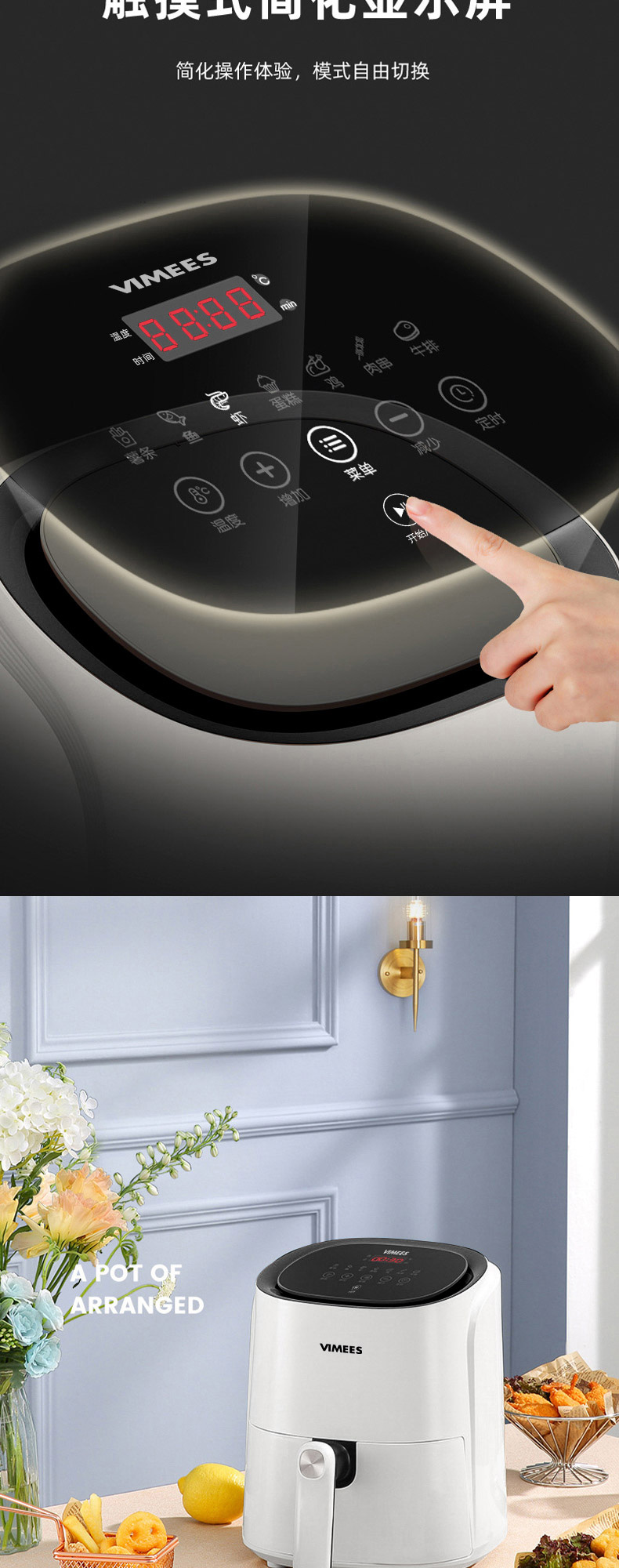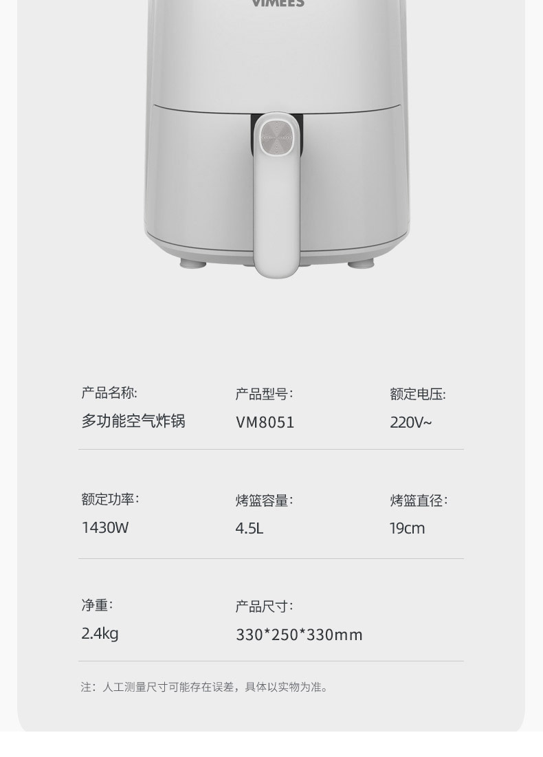 维米仕(vimees)大容量空气炸锅4.5L 白色VM8051