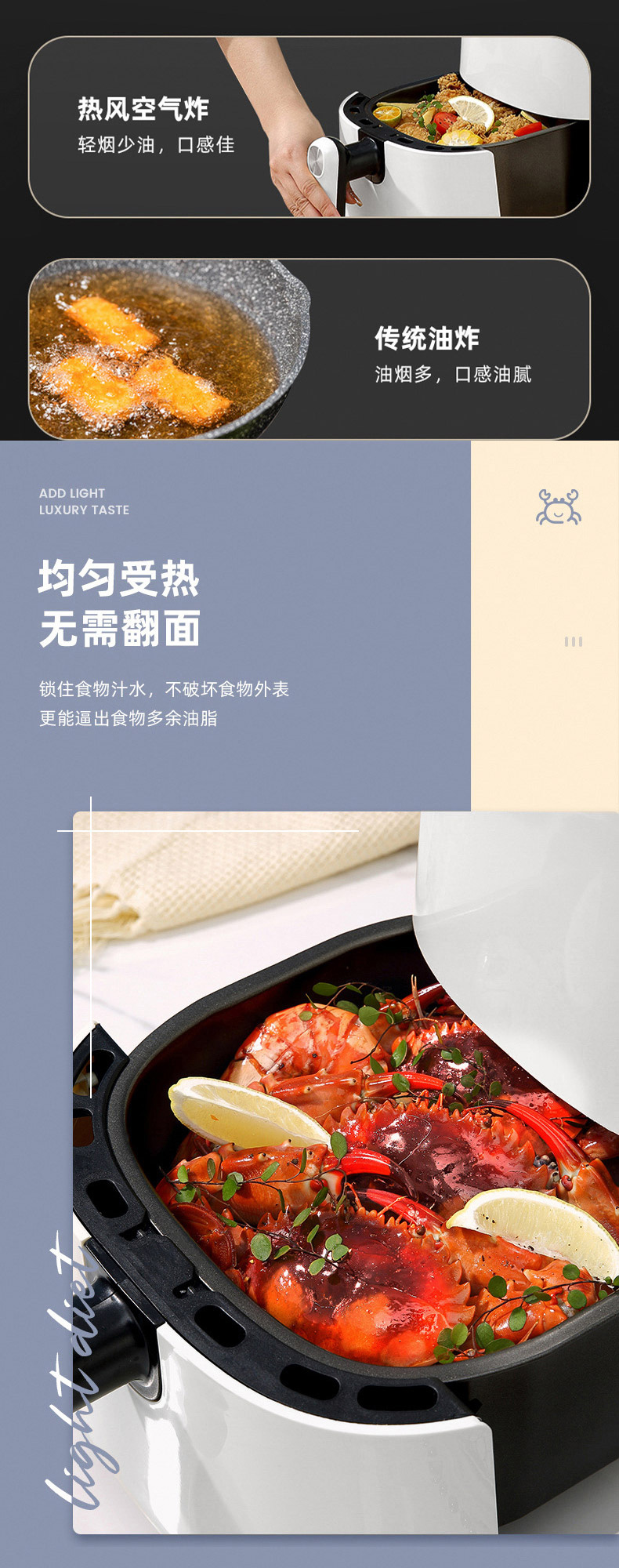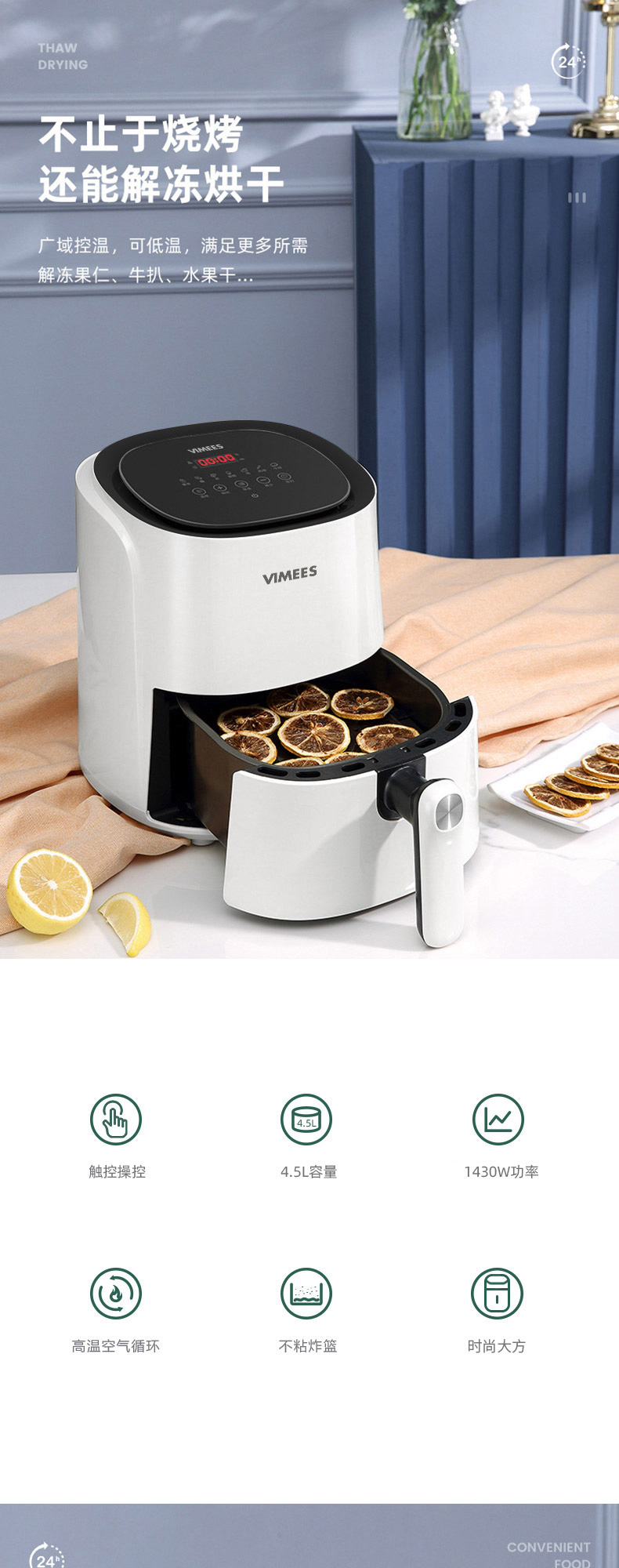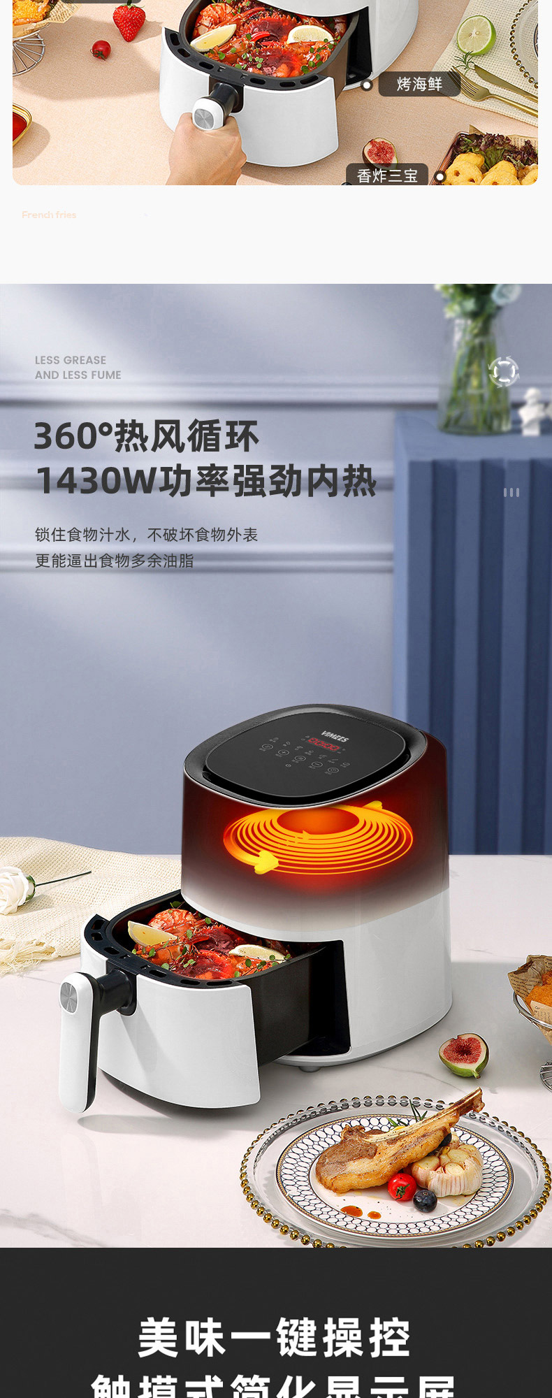维米仕(vimees)大容量空气炸锅4.5L 白色VM8051