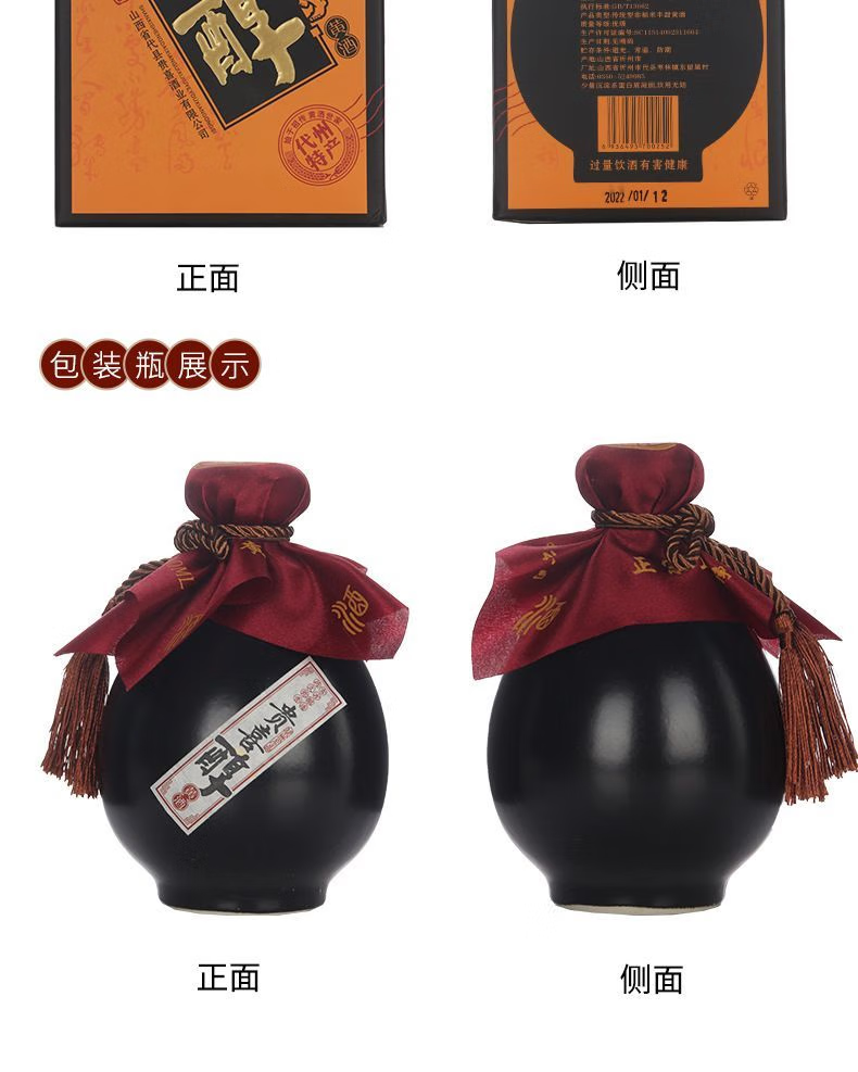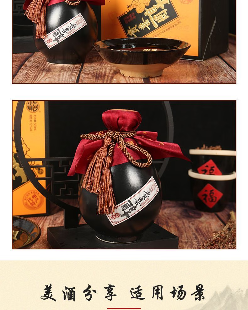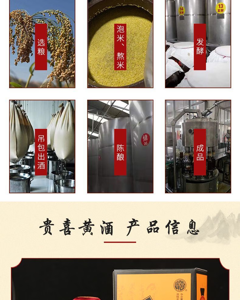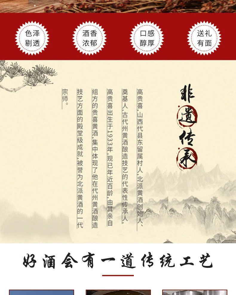 贵喜黄酒 贵喜醇半甜型 代县黄酒15度无添加小黑坛礼盒装 500mL *6盒 整箱装