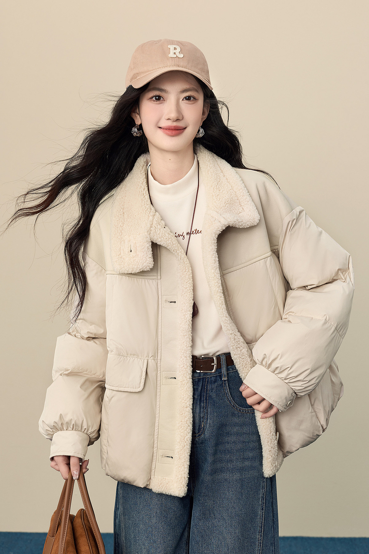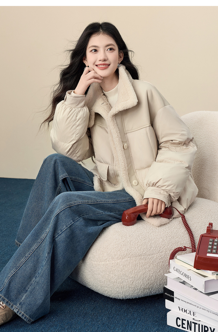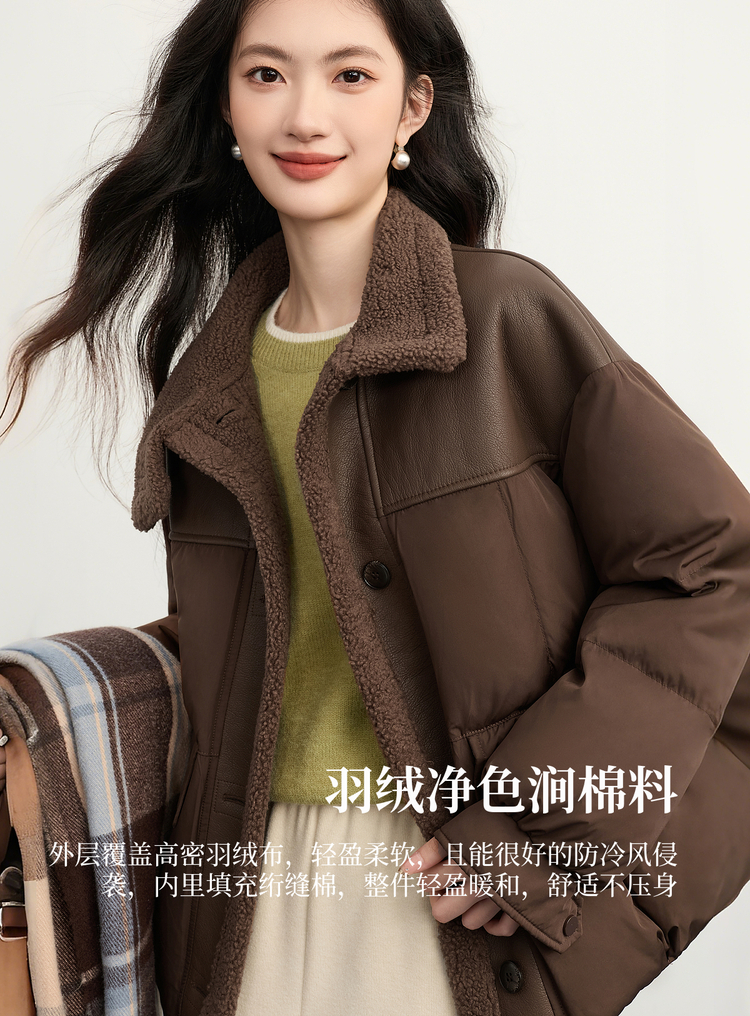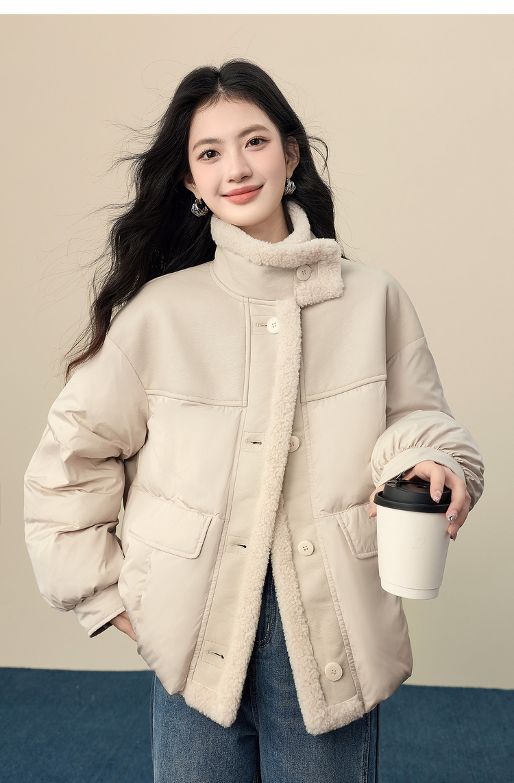 【周末秒杀】熙世界琥珀流光风穿搭颗粒绒立领面包棉服短款外套女2025冬装新款