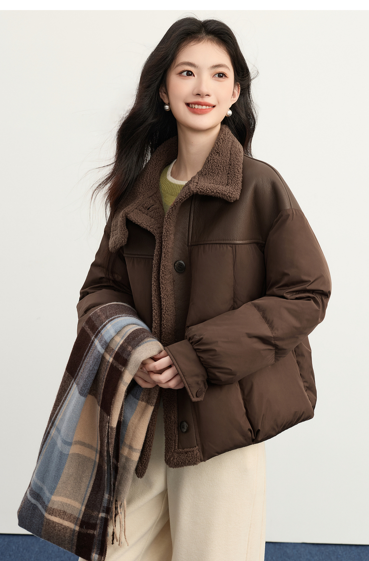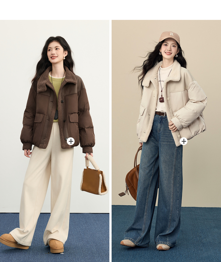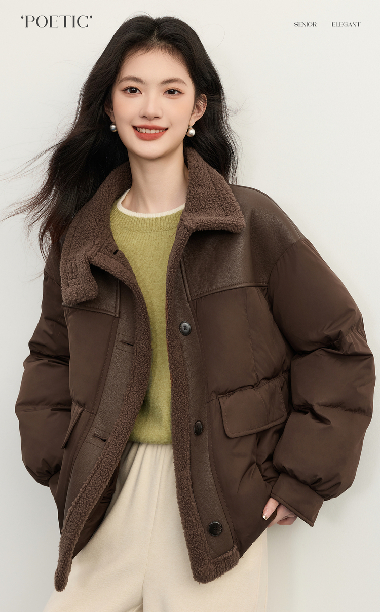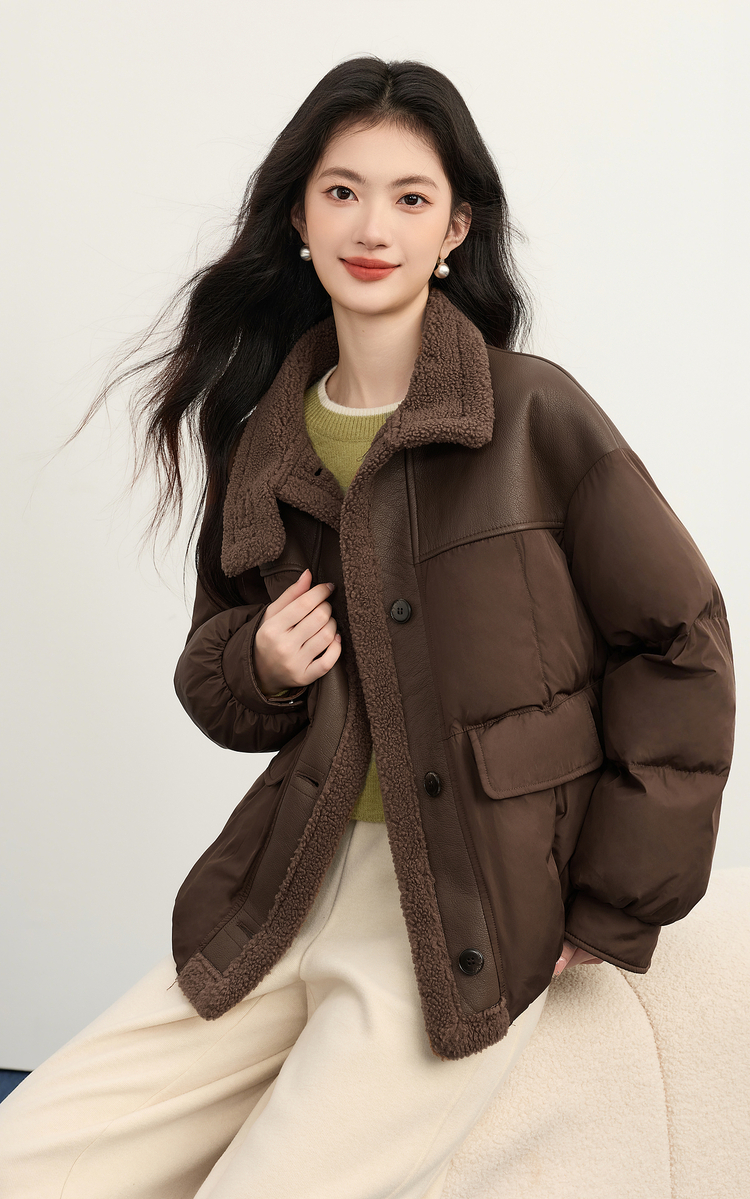 【周末秒杀】熙世界琥珀流光风穿搭颗粒绒立领面包棉服短款外套女2025冬装新款