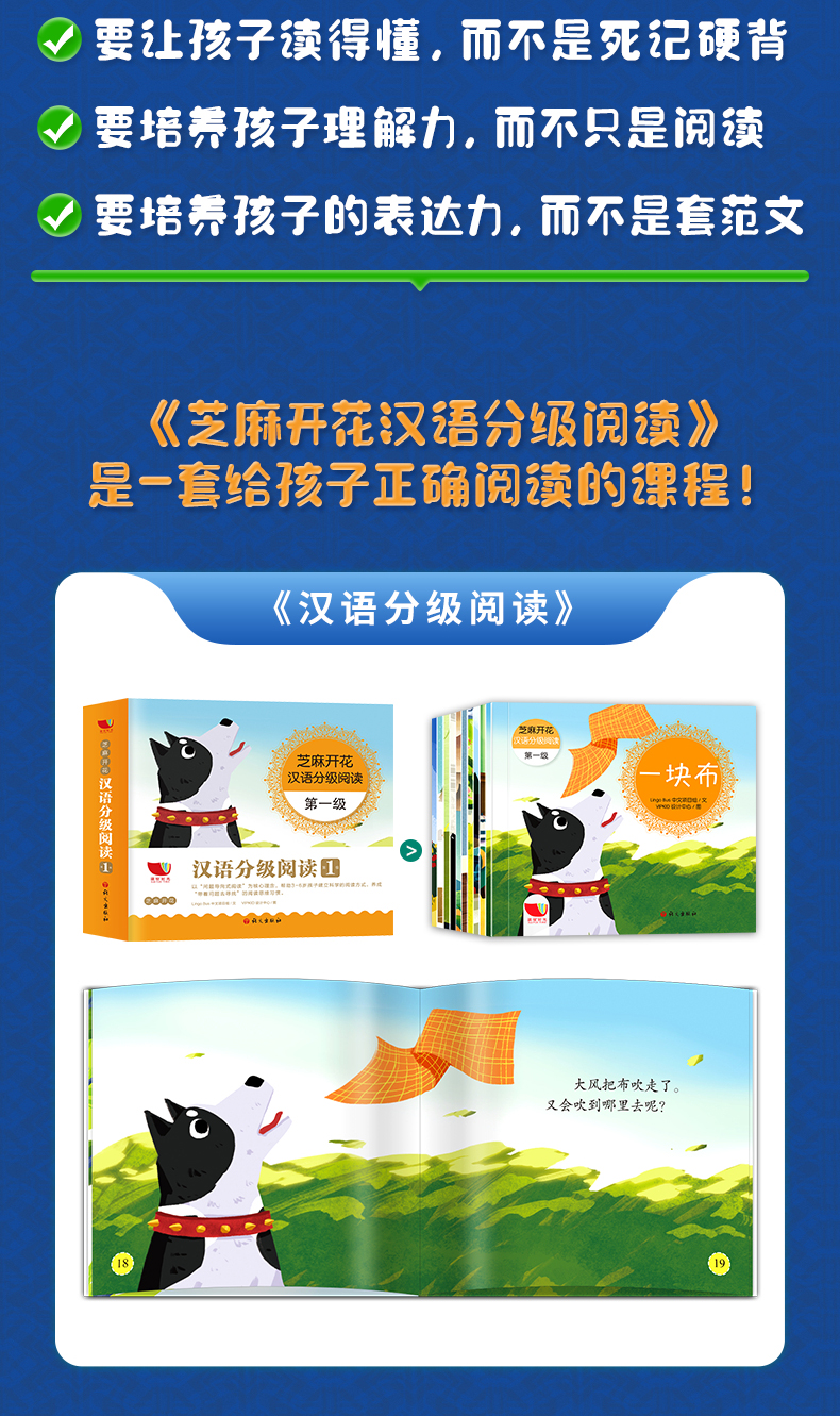 4.真正零起点,孩子认识十几个字就可以“整体阅读”,认识180个字就可以读前3级30册故事,轻轻松松走上阅读之路!
