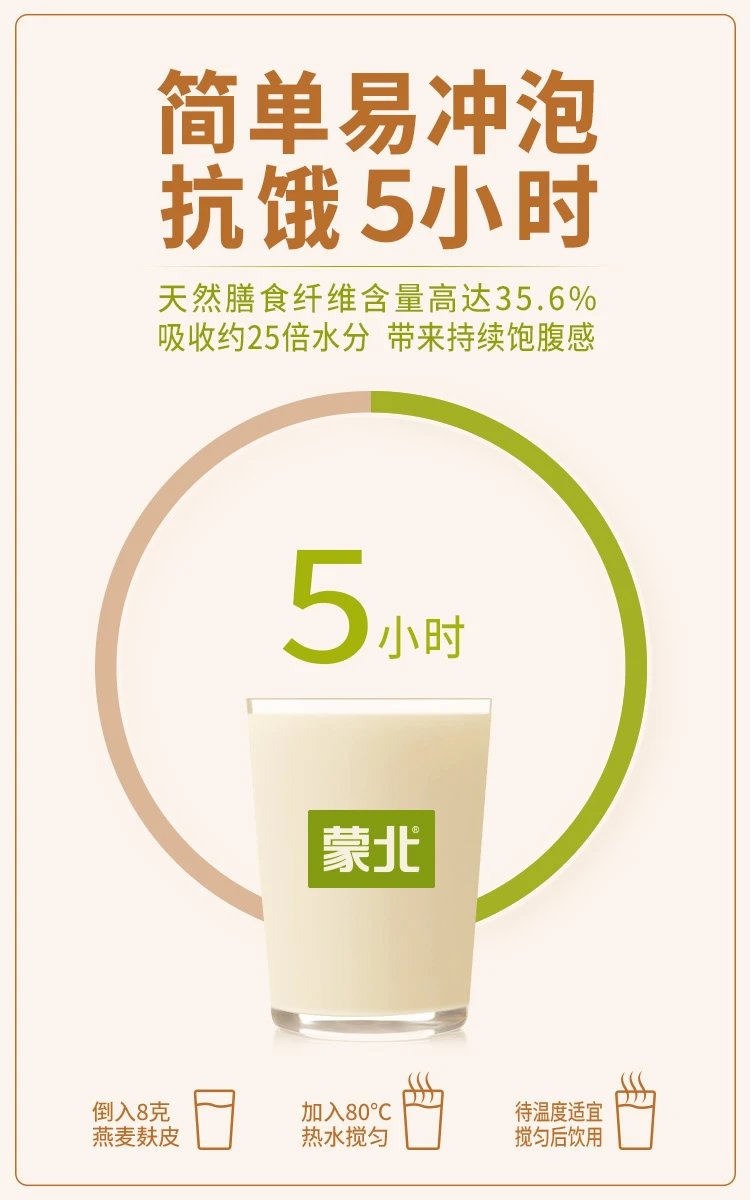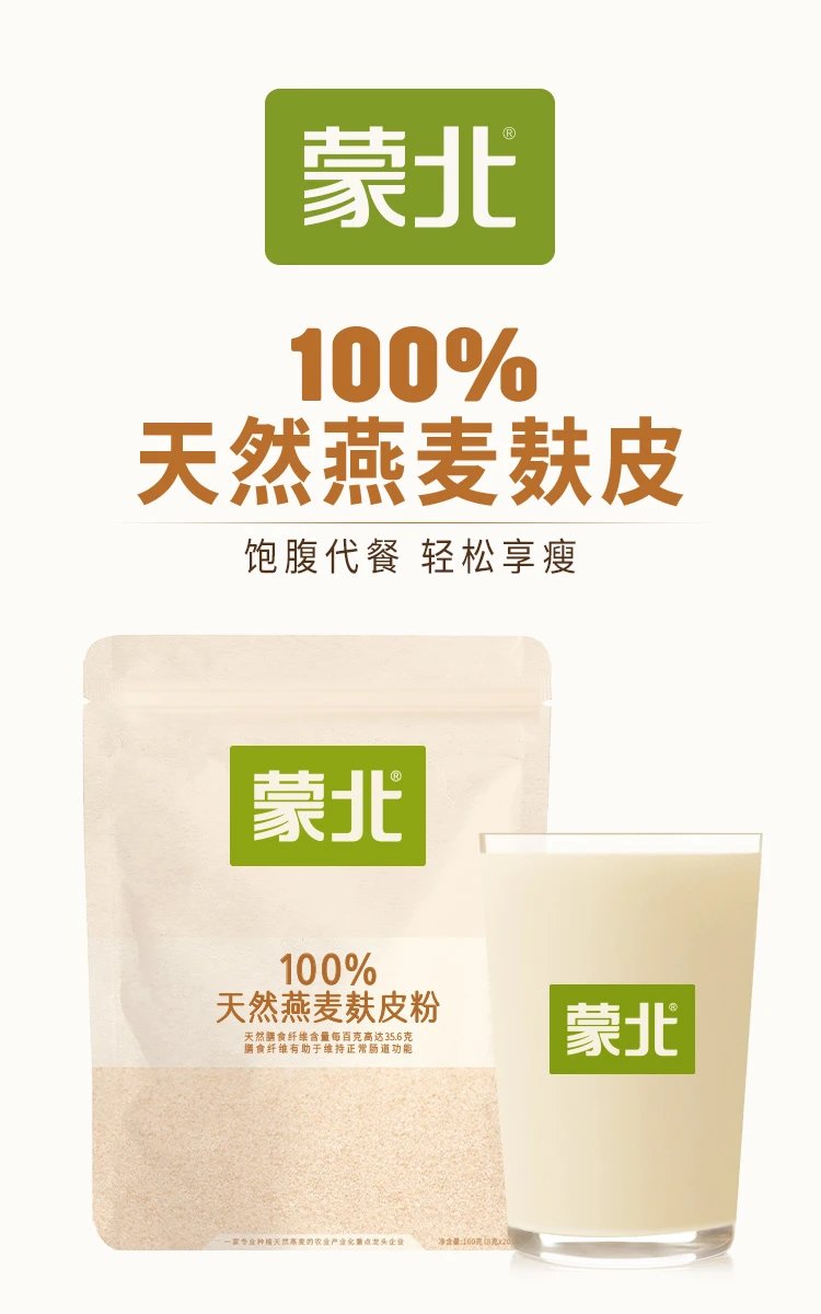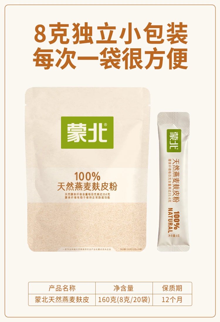 蒙北100%天然燕麦麸皮,高膳食纤维,身材管理期饱腹代餐,冲饮即食,独立小包装[漳州仓]