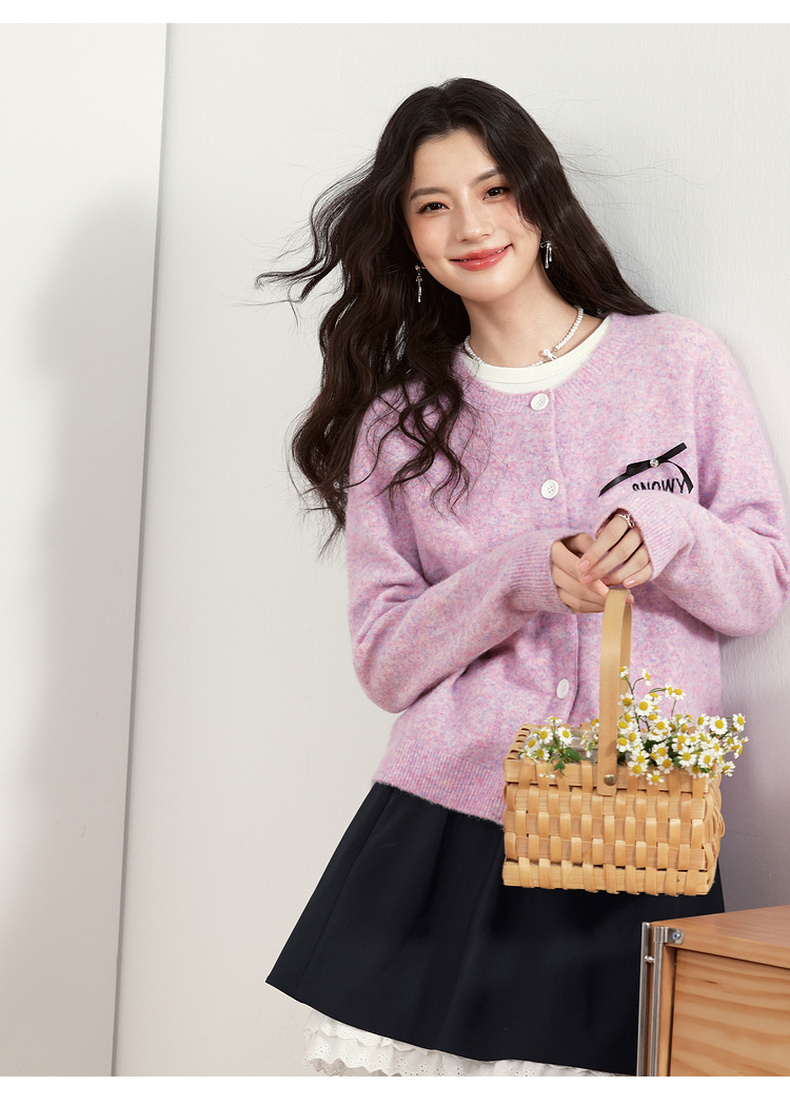 【严选】诗凡黎定织定染彩纱蝴蝶结针织开衫2025春新款羊毛混纺设计感毛衣7G2230361