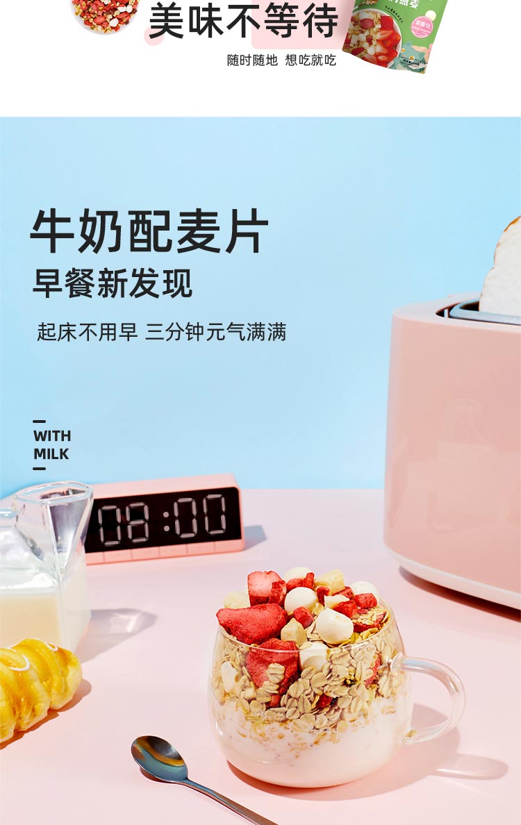 【会员】王饱饱草莓优脆乳烘焙麦片400g谷物早餐代餐即食零食