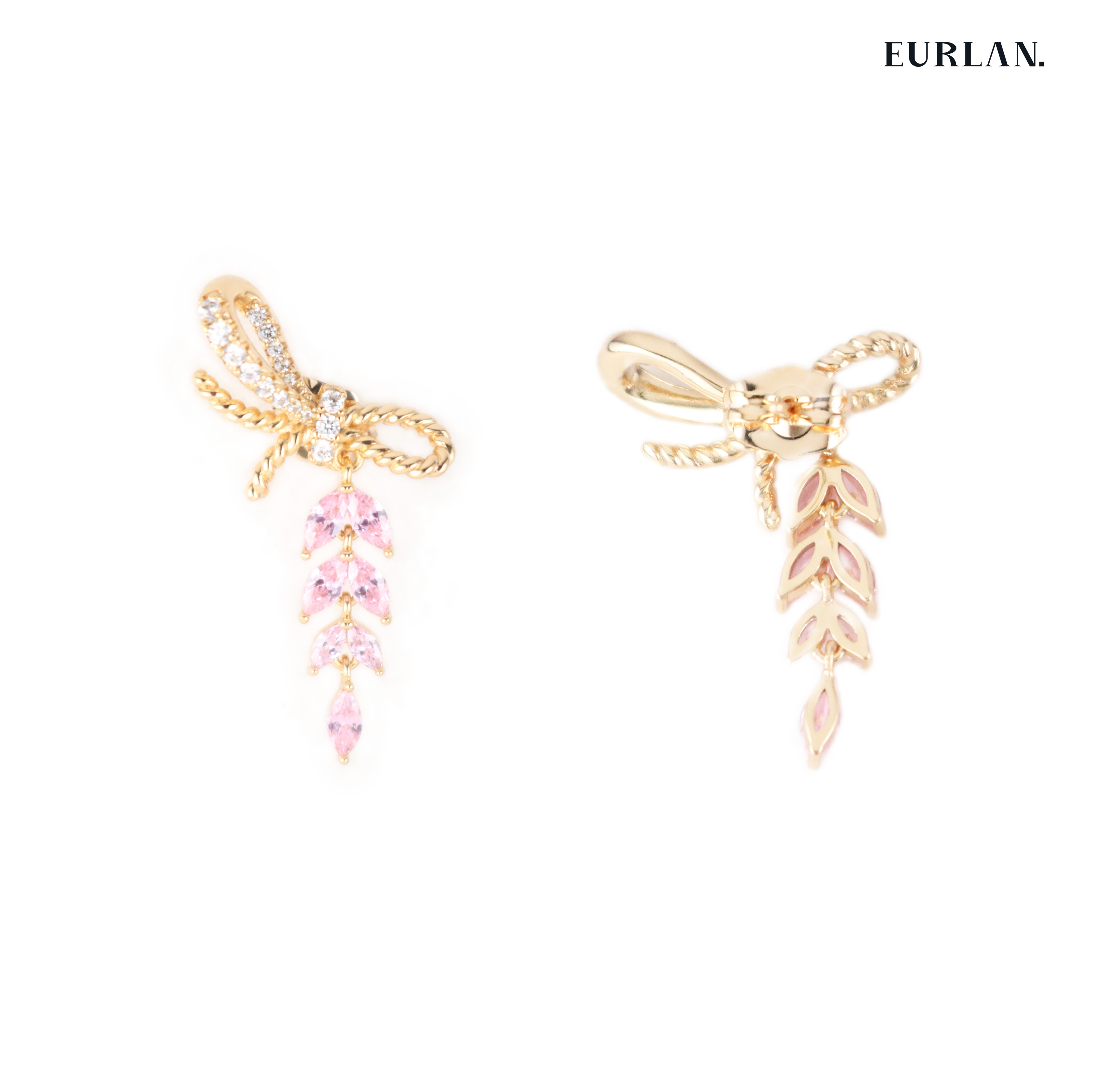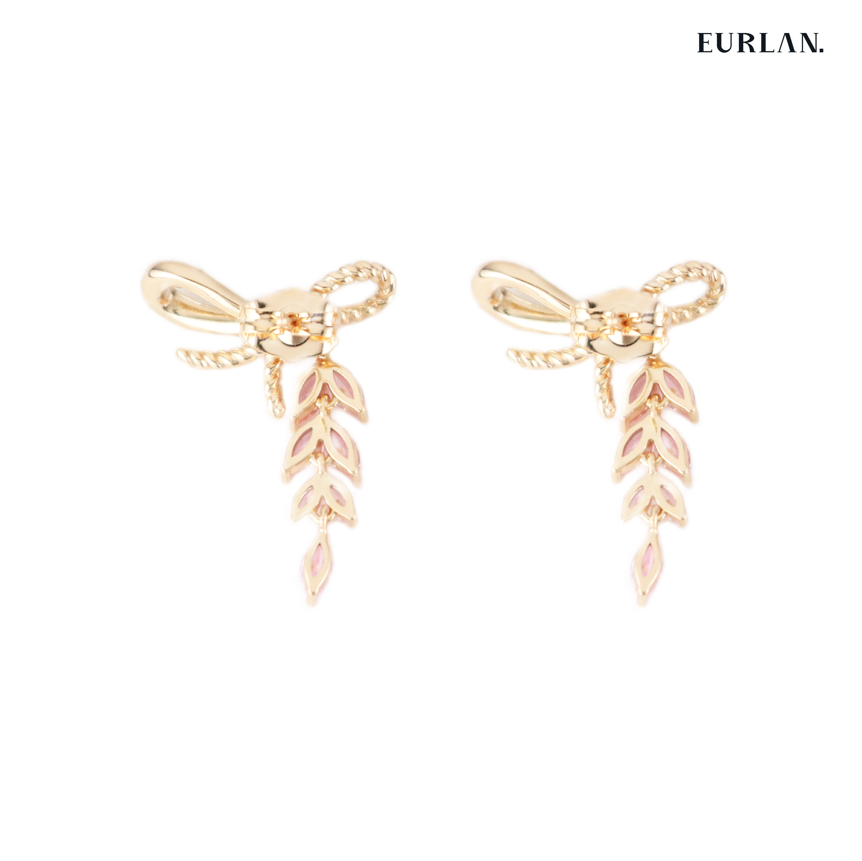 2023春夏流行新款耳环-蝴蝶结粉色宝石桃花运
