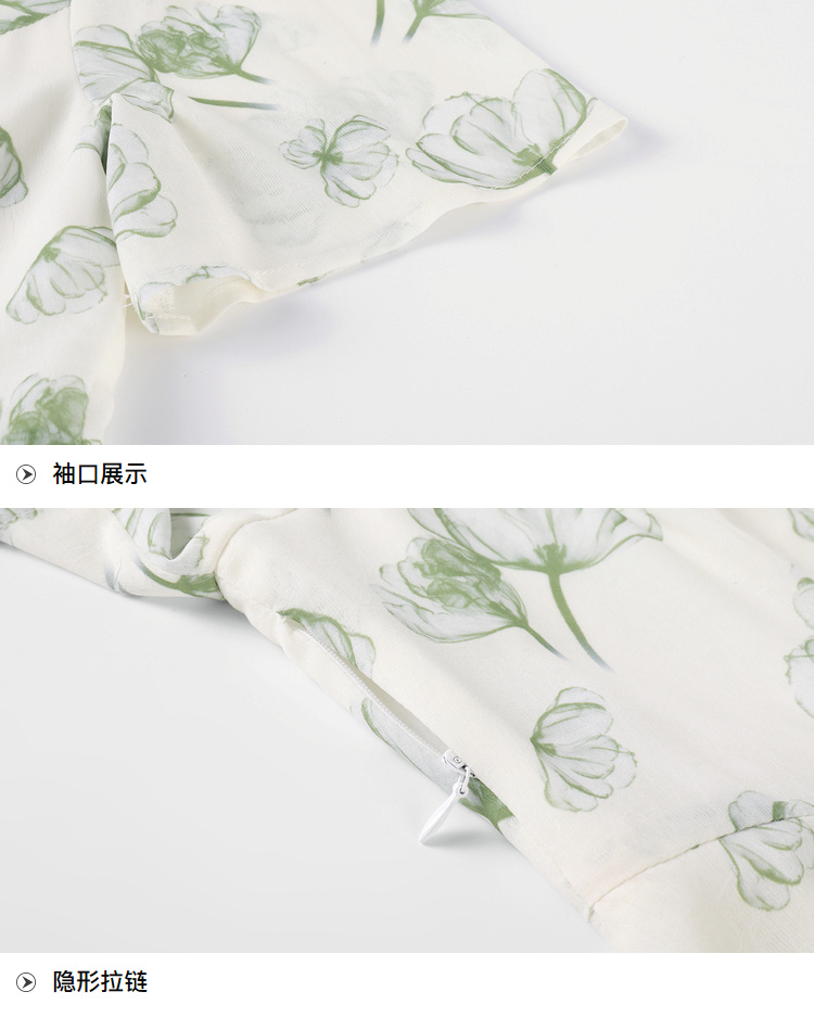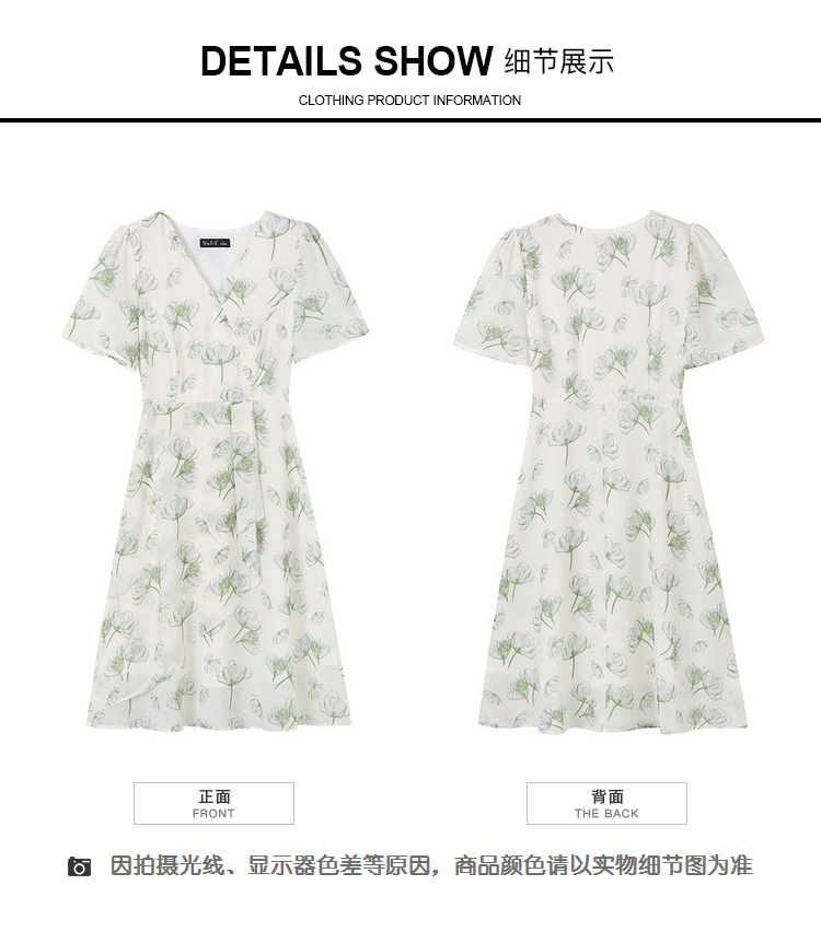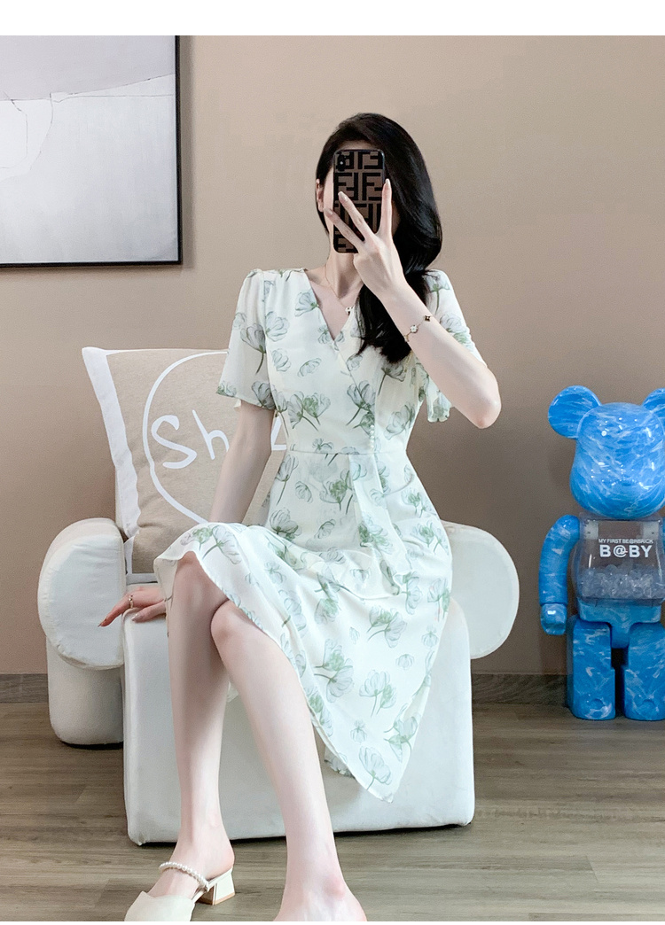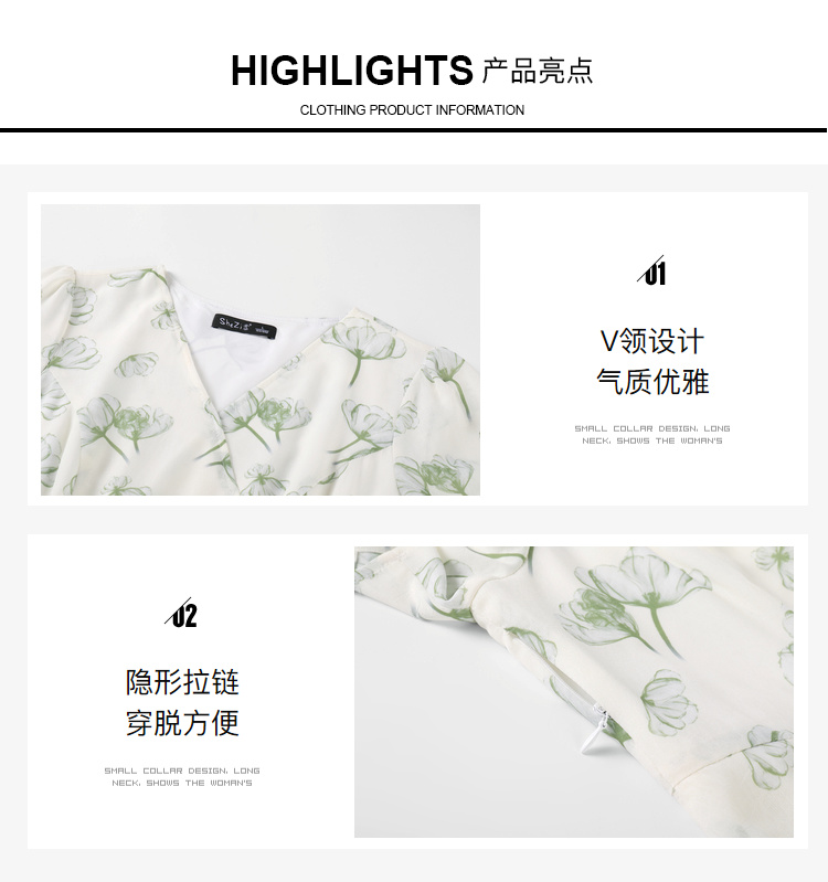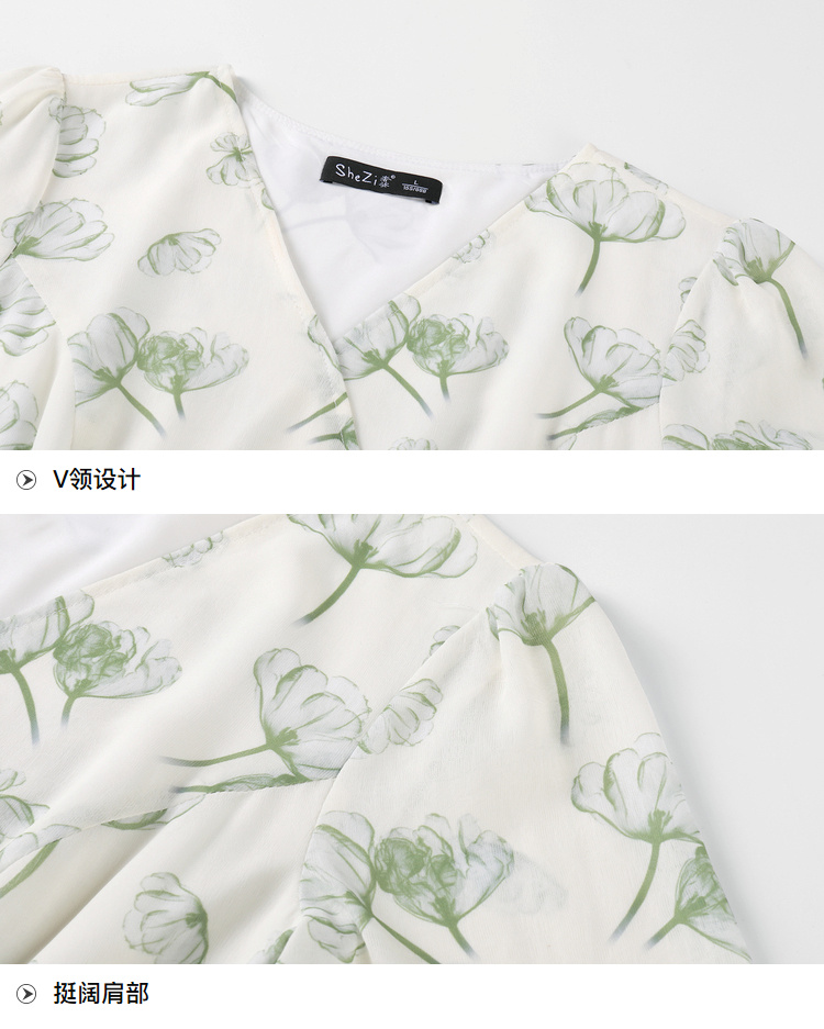 奢姿2023年夏季新款大码女装印花V领雪纺连衣裙胖妹妹减龄裙子9932825455