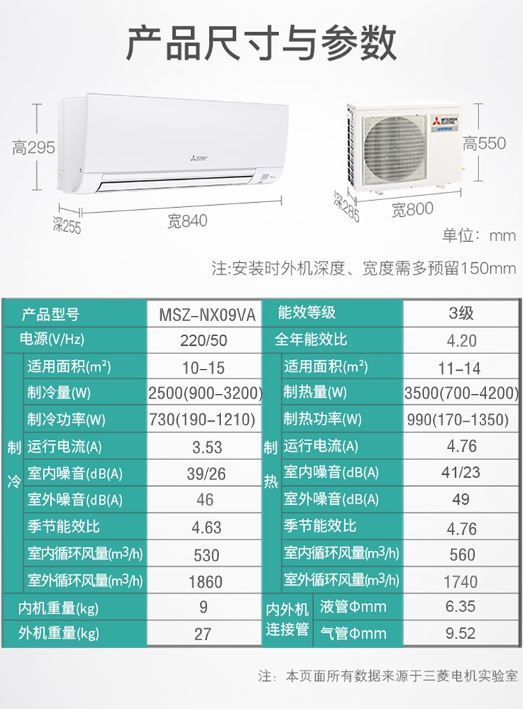 三菱电机(MITSUBISHI ELECTRIC)MSZ-NX12VA 1.5匹新三级壁挂式