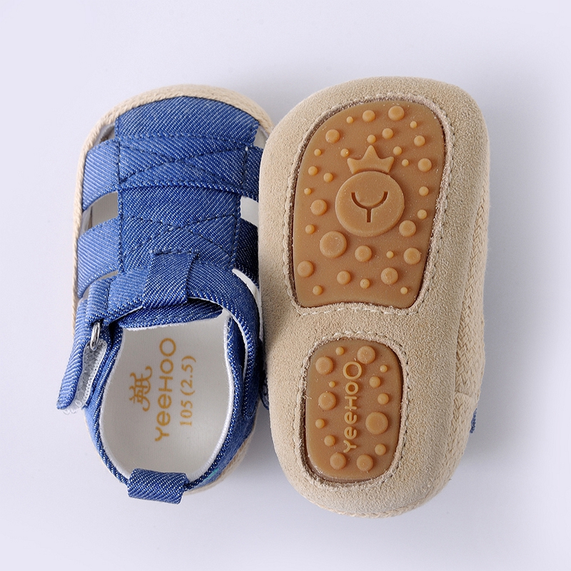 英氏婴儿凉鞋春夏男童透气软底鞋男宝宝防踢包头鞋子YFXFJ22030A