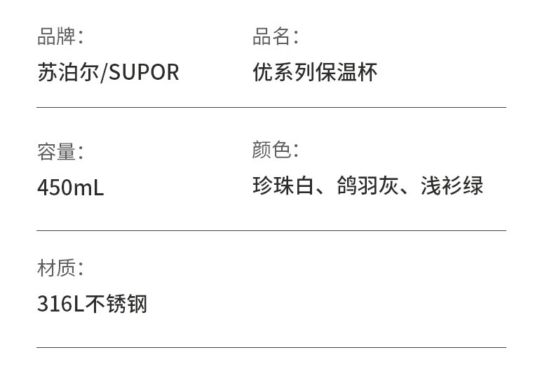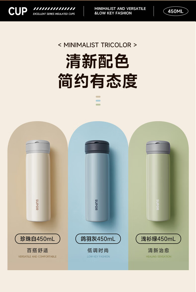 苏泊尔优系列保温杯450mL.KCV45BC10
