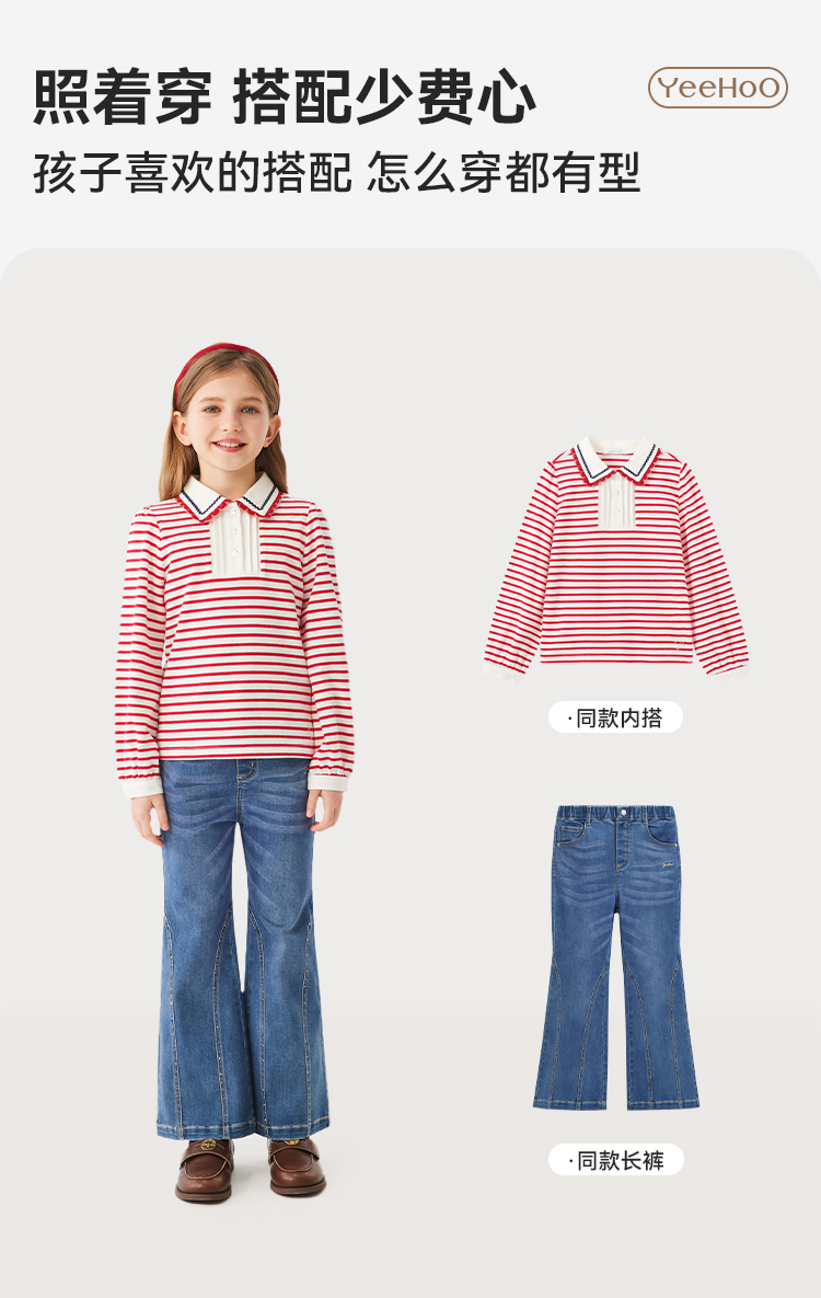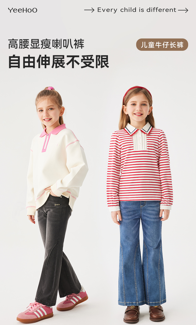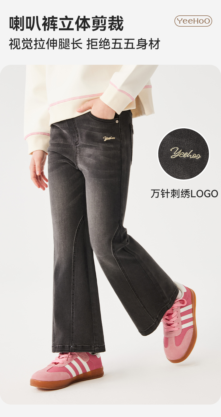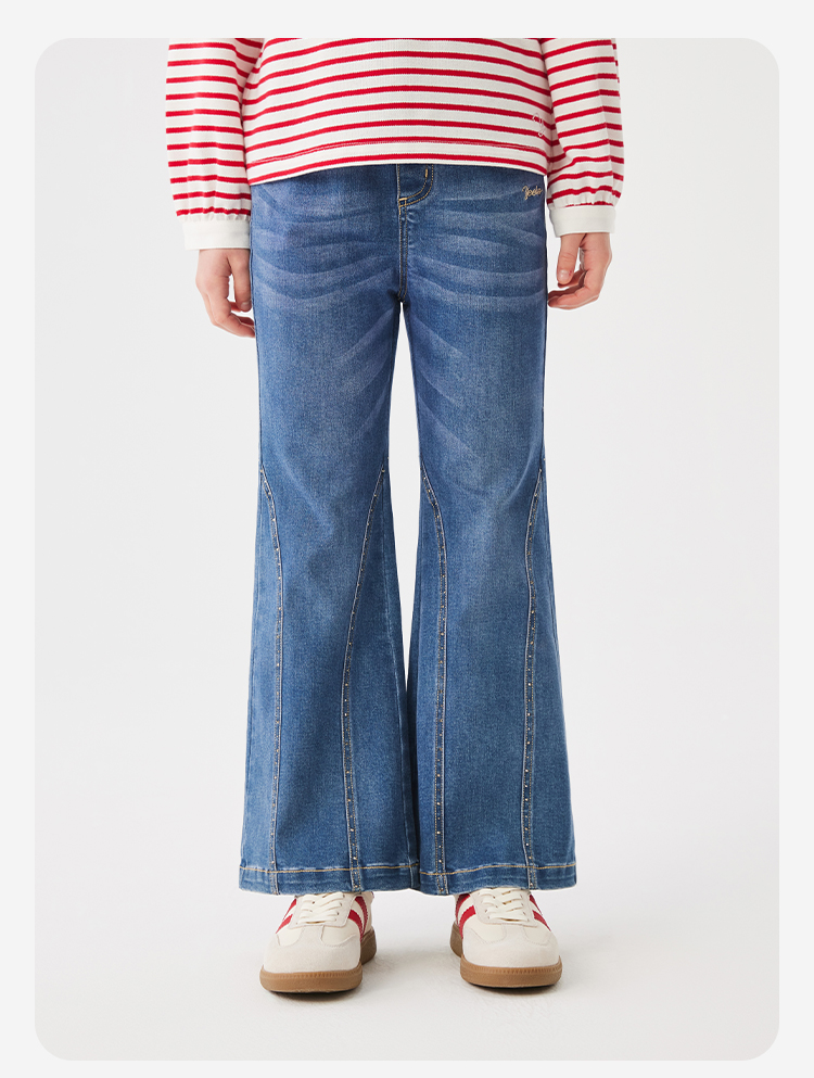 【英氏】【140-170】女童春秋喇叭牛仔裤
