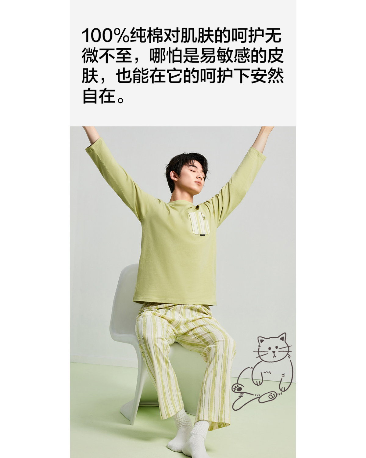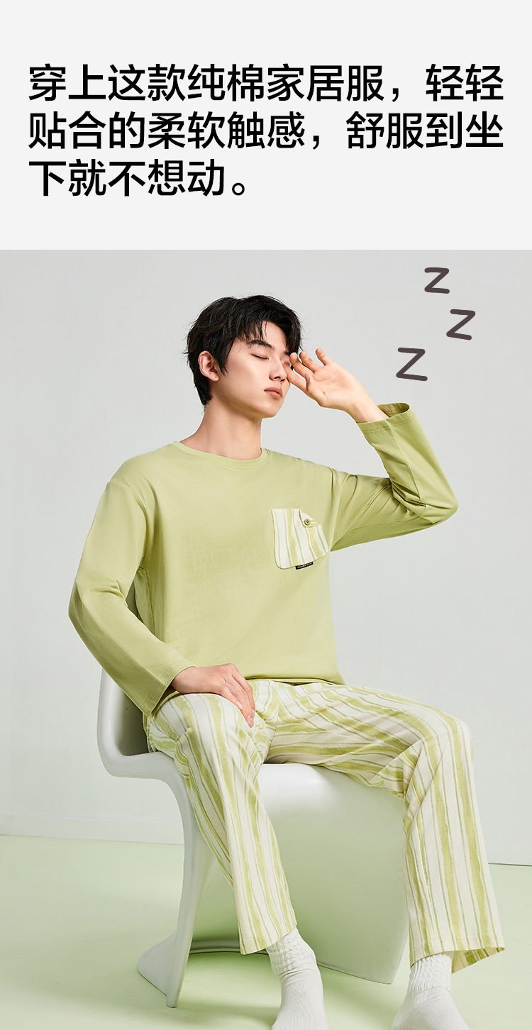 【清仓捡漏】【L-3XL】【有棵树】男士纯棉家居服套装长袖睡衣睡裤