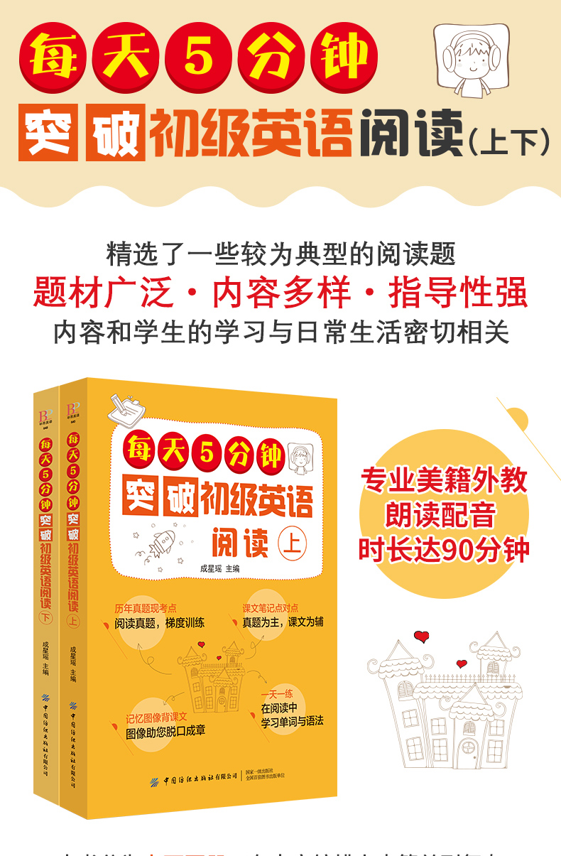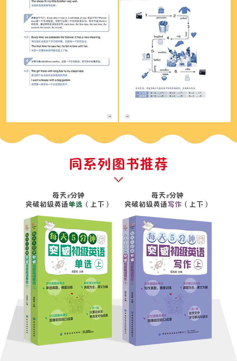 每天5分钟突破初级英语阅读 上下 英语单词大书 入门零基础情景认知 口语日常对话发声初级教材 阅读自然拼读 小学生阅读英文学习