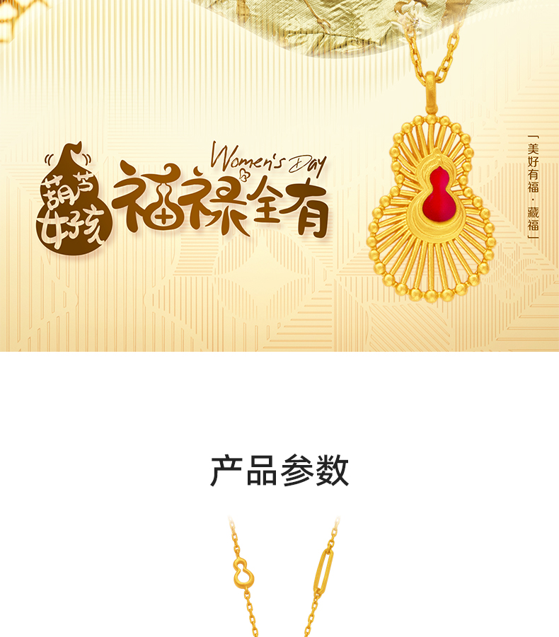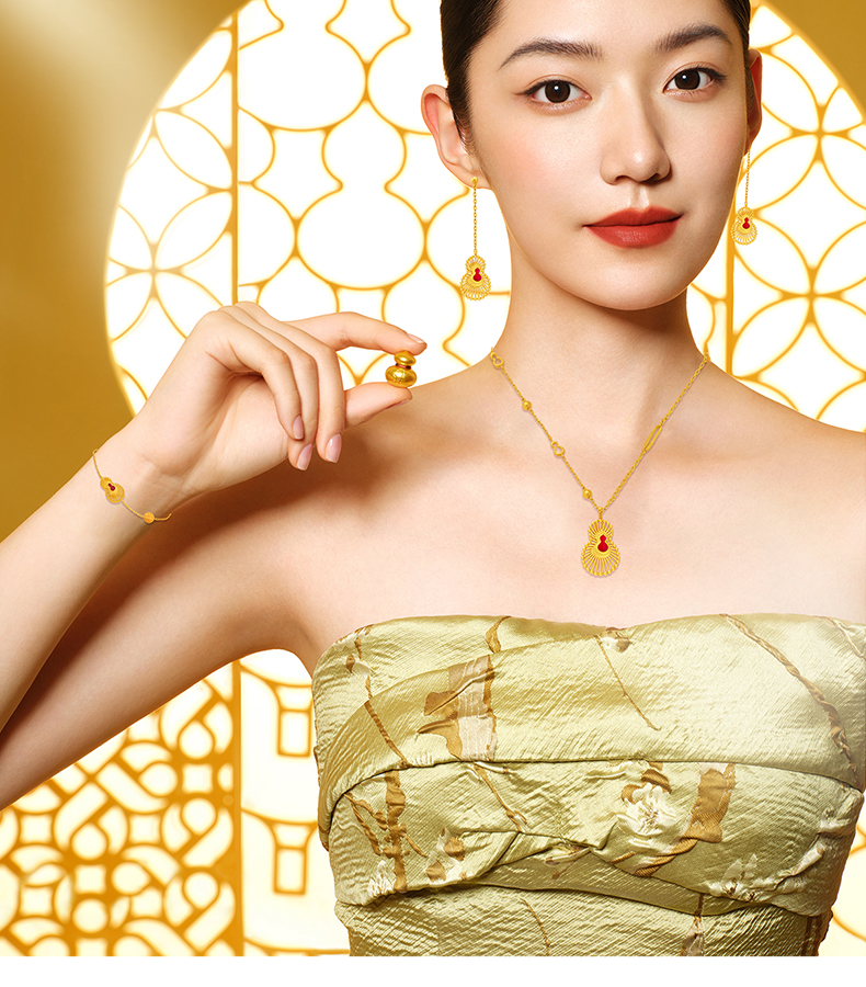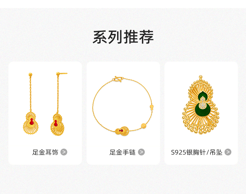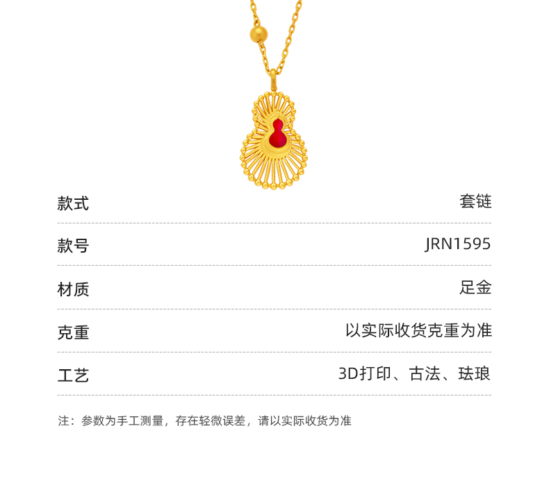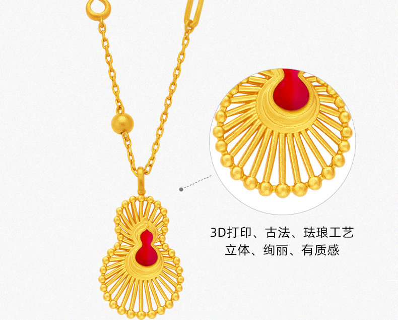 「美好金藏福」足金珐琅葫芦套链 古法黄金工艺项链