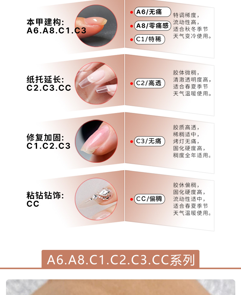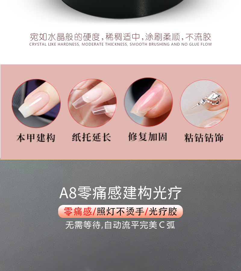 索芙娜50克:C3无痛光疗 ,A8(稀)零痛感建构光疗 ,A6(适中)塑形无痛建构胶,三款可选.10瓶赠笔一支