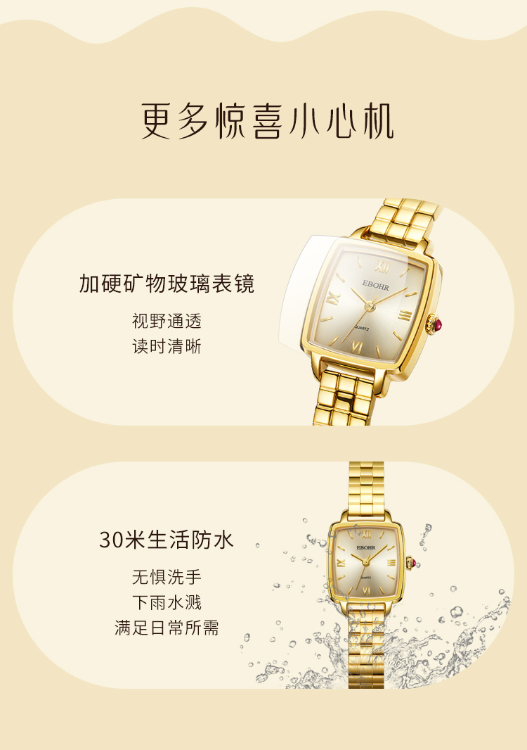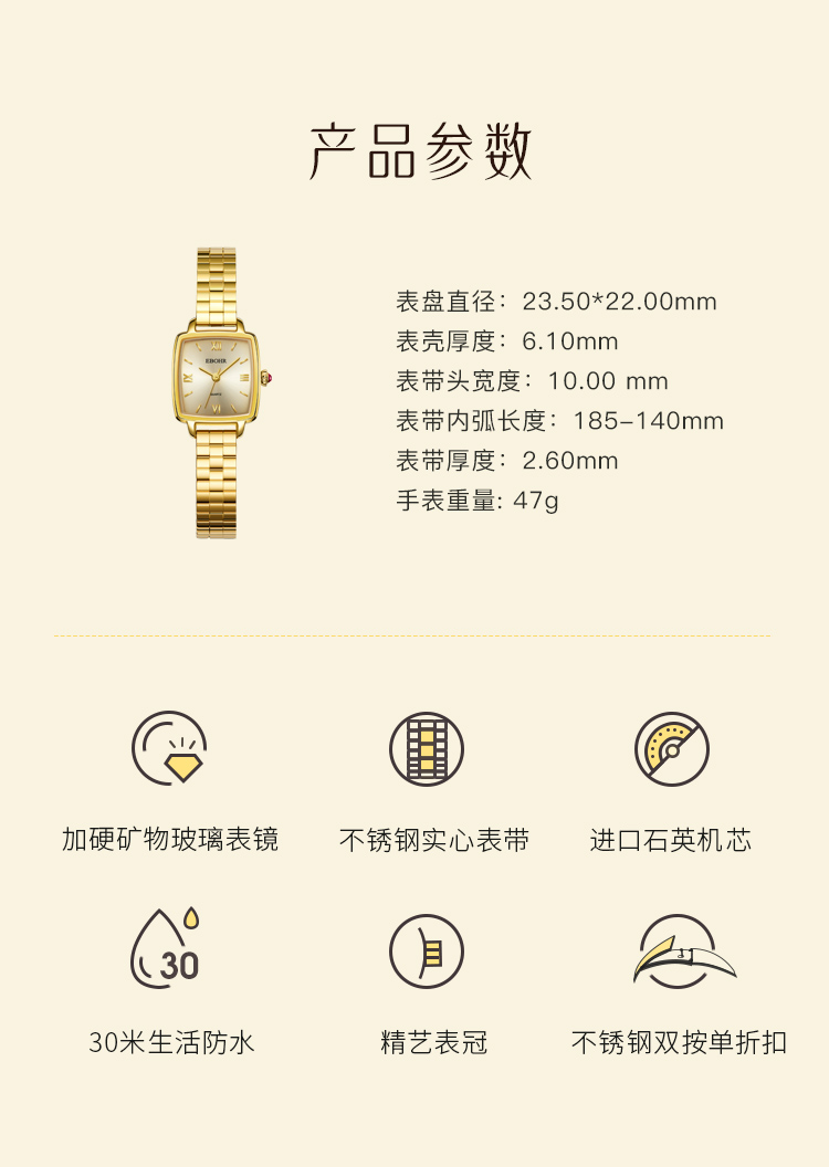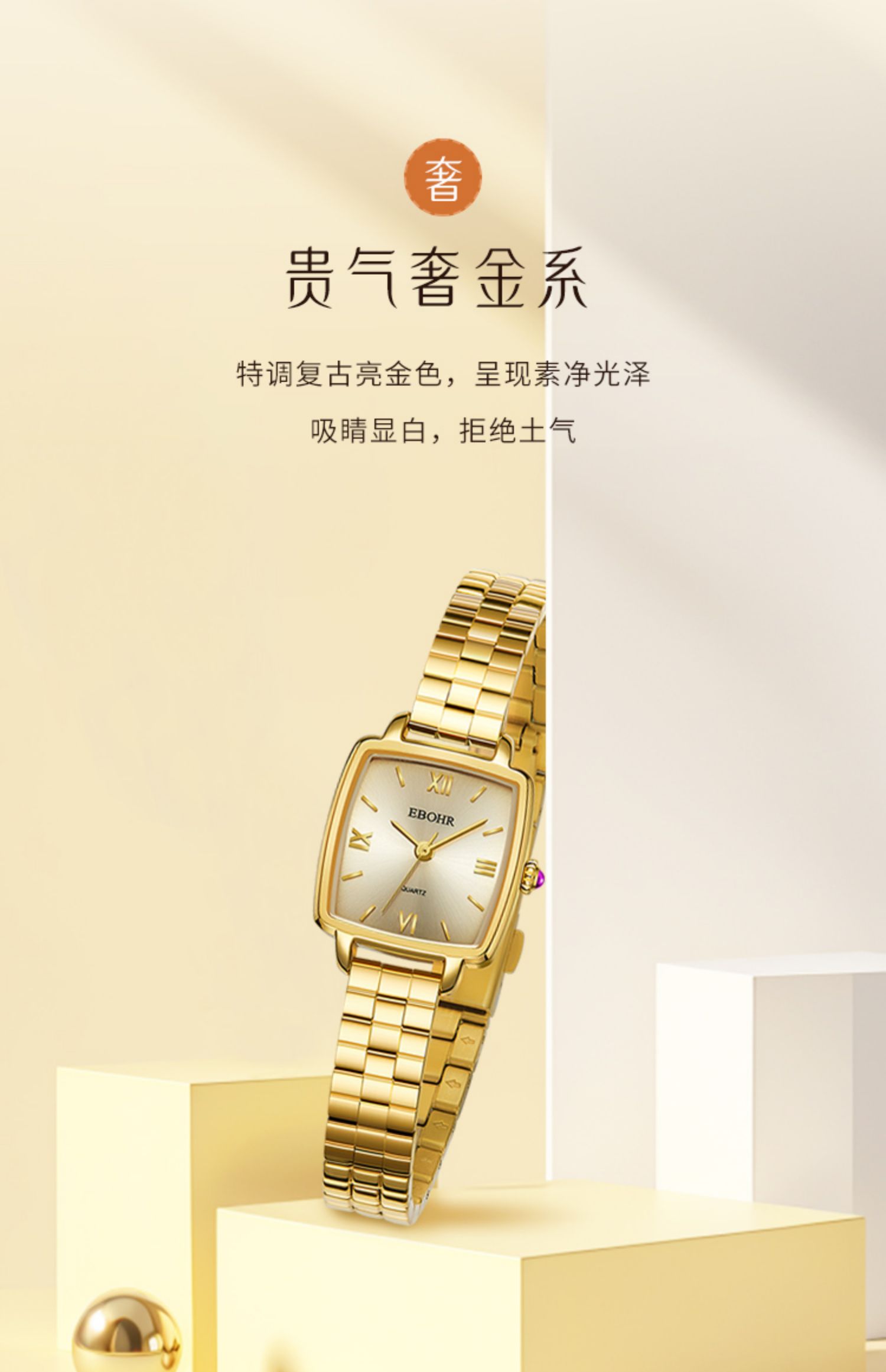 依波表EBOHR小金表手表女款轻奢高级石英表小众气质毕业礼物5677
