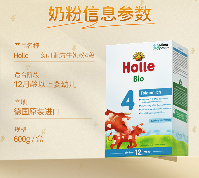 【跨境进口】4段奶粉 | Holle(泓乐)幼儿配方奶粉4段600g(12个月龄以上)德国原装进口 保税仓发货,(跨境商品报关后不支持退货,介意慎拍)