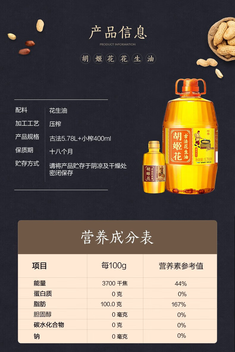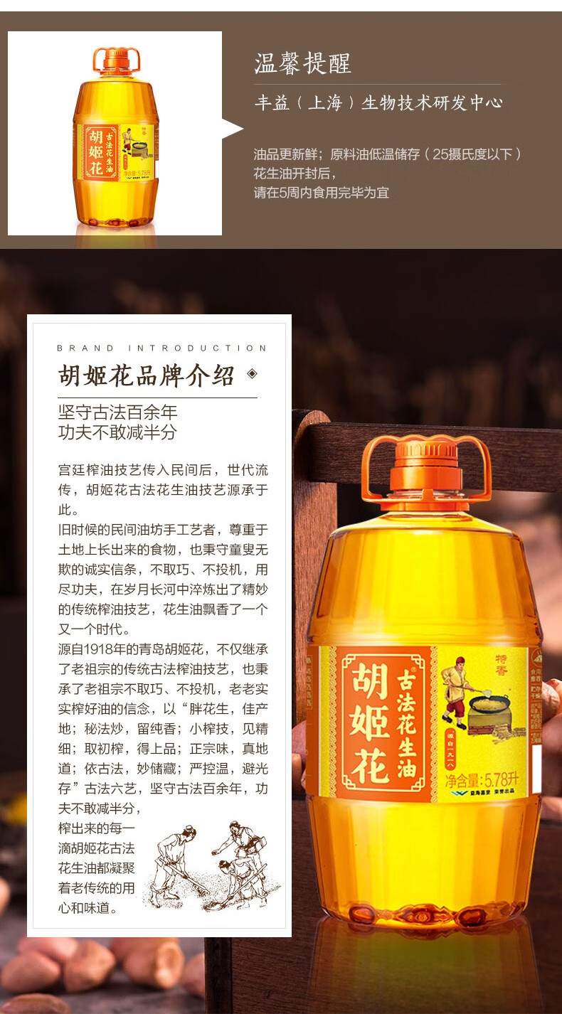胡姬花古法花生油6.18L(5.78L+小榨400ml)组合装 物理压榨一级食用油 6.18L组合
