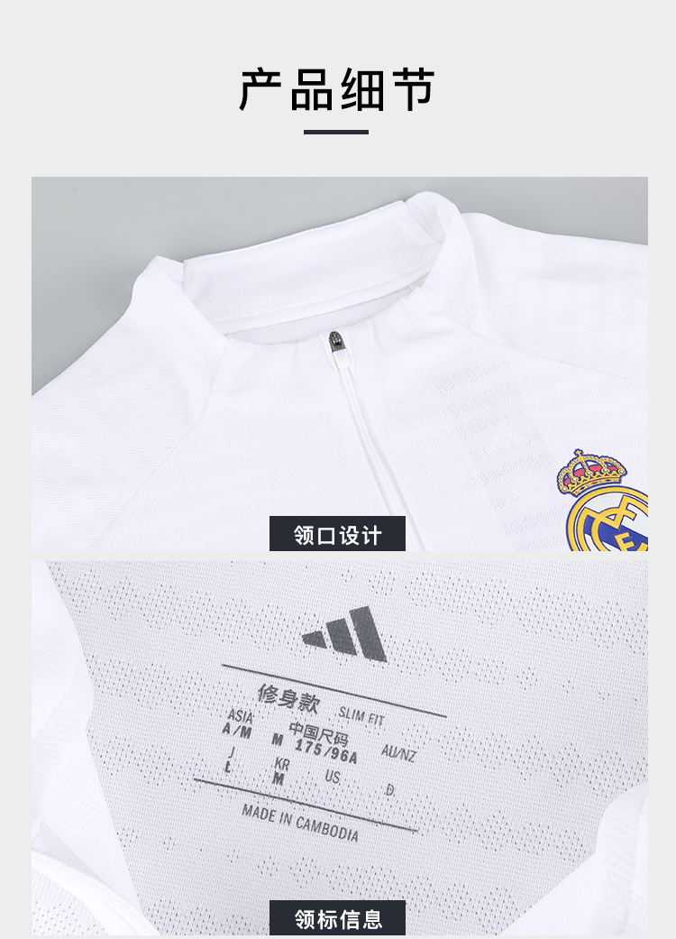 小李子ADIDAS阿迪达斯皇马球员版半拉链长袖训练服成人男JP4020
