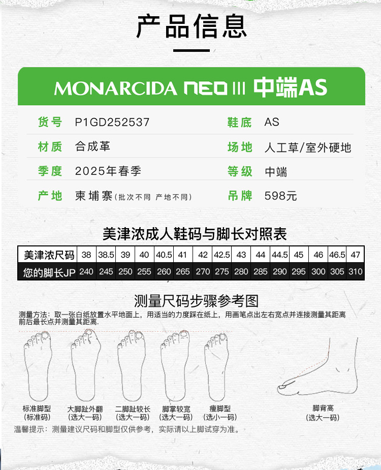 小李子Mizuno美津浓MONARCIDA NEO 3中端AS碎钉成人足球鞋男P1GD252537