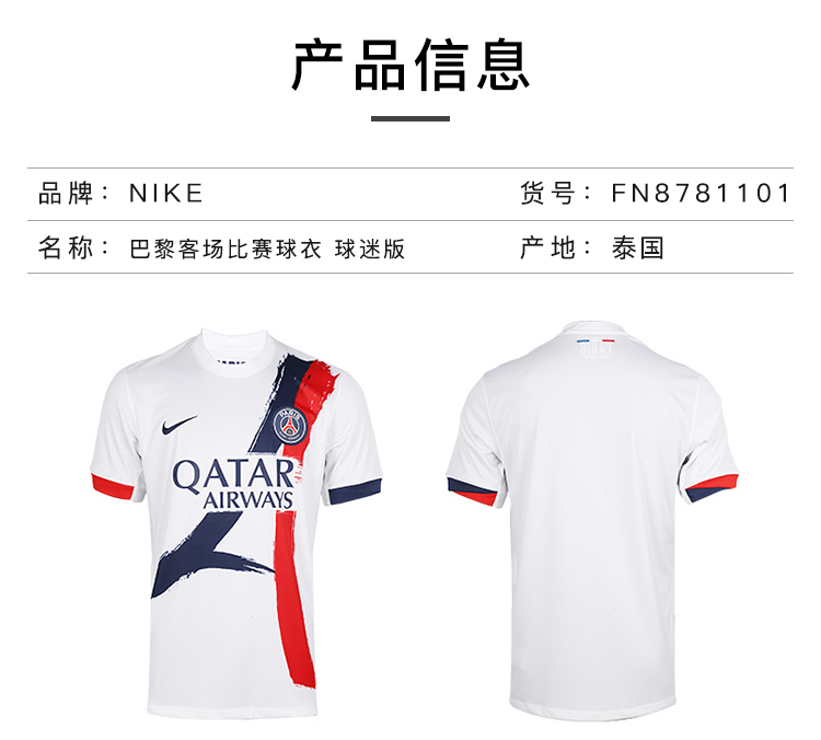 小李子NIKE耐克24-25赛季巴黎客场球迷版比赛球衣短袖成人男FN8781-101
