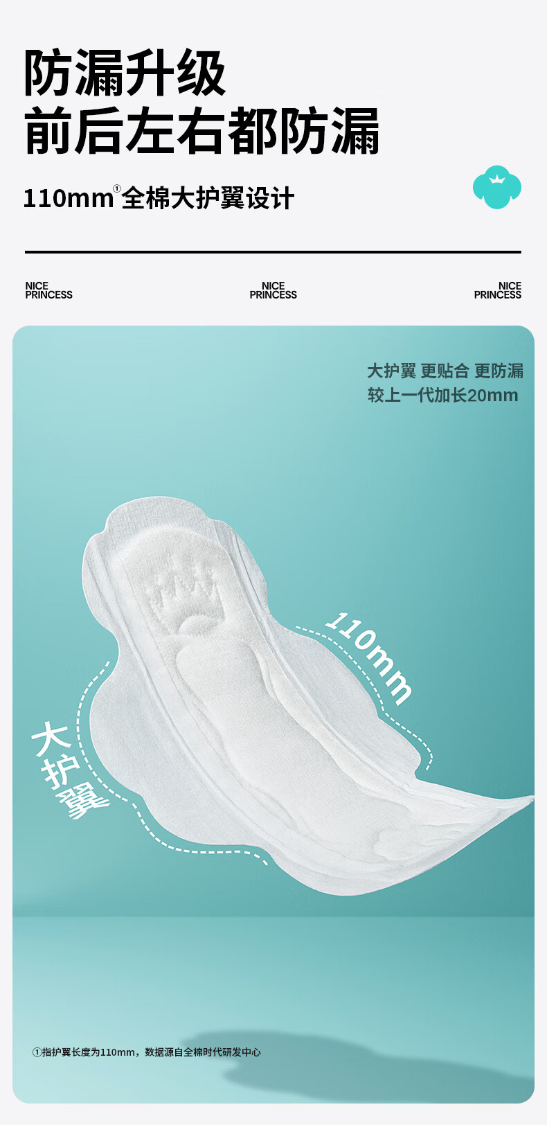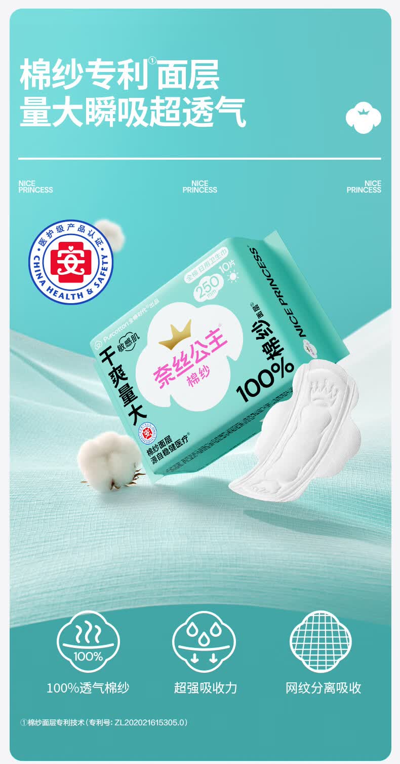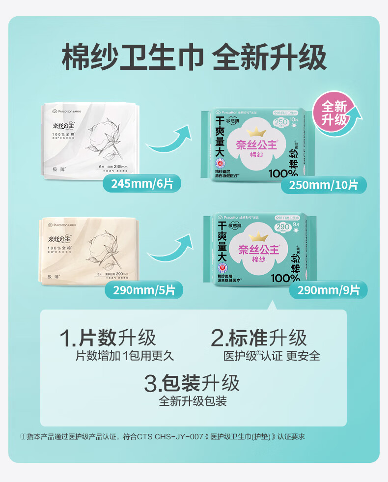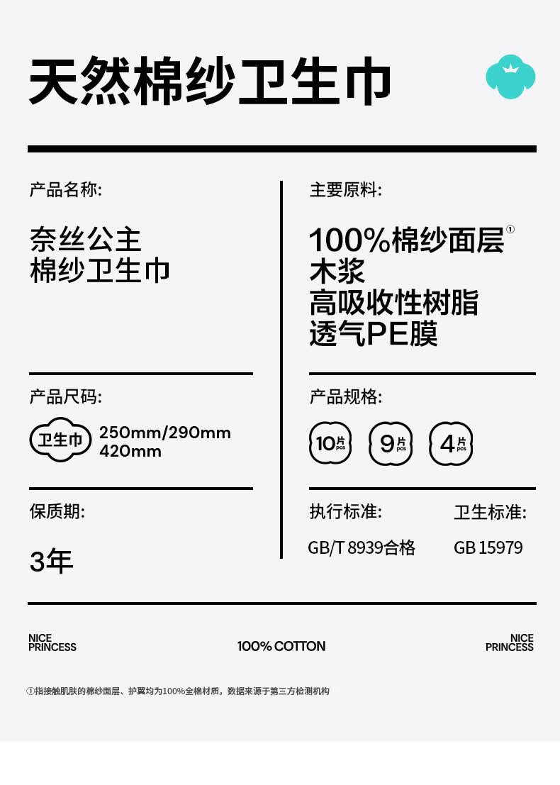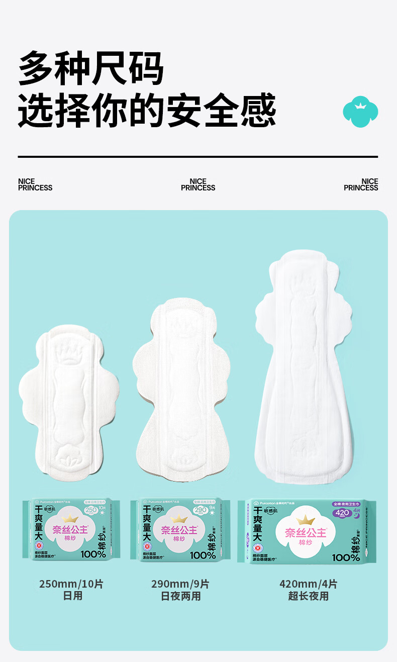 全棉时代奈丝公主100%棉纱抑菌卫生巾 290mm 9片*5包
