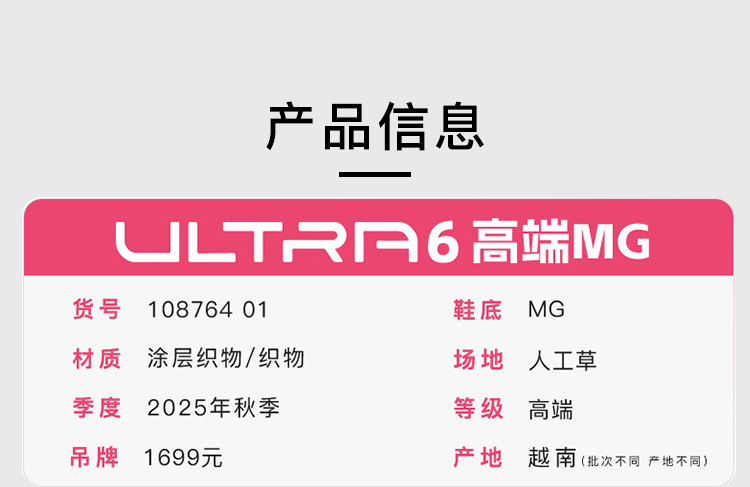 小李子PUMA彪马ULTRA 6高端MG短钉运动训练足球鞋成人男108764 01