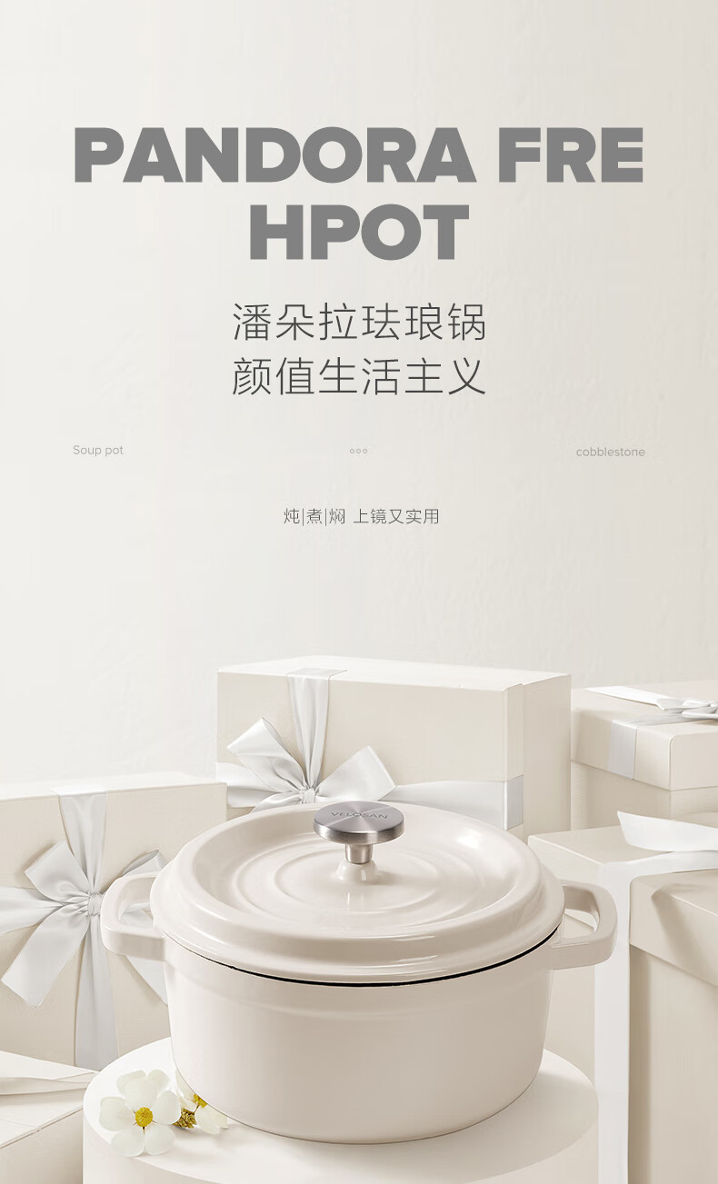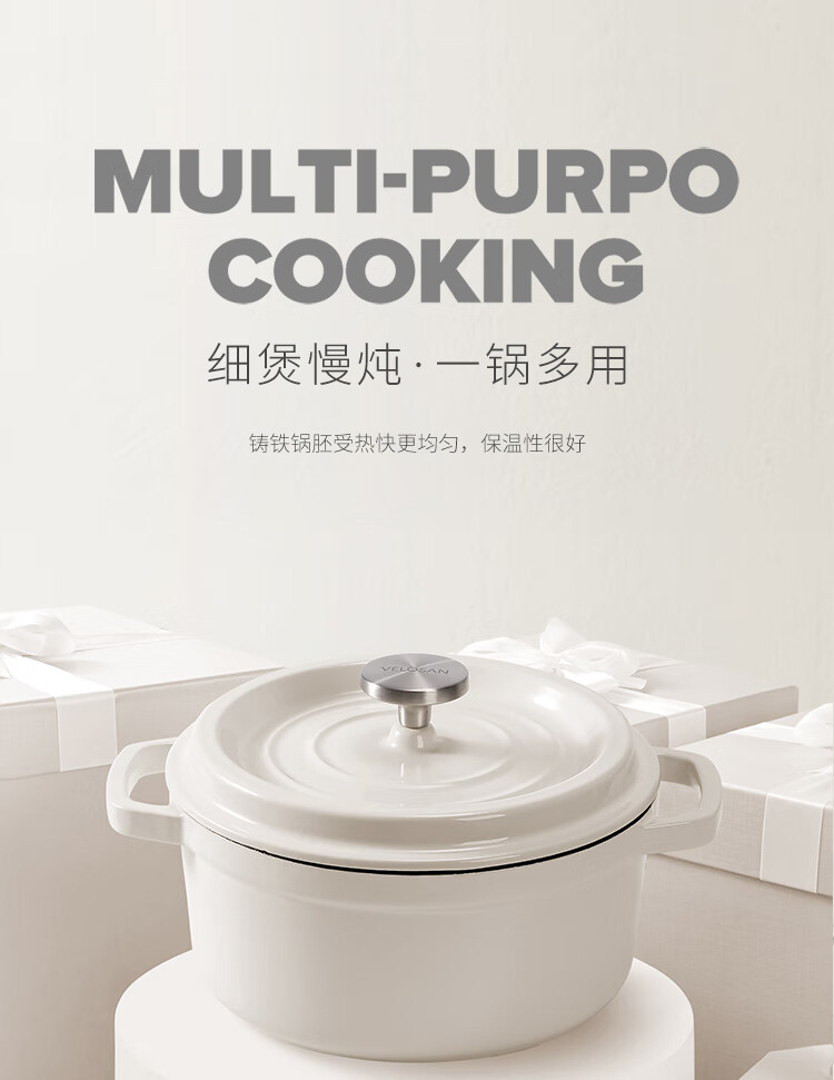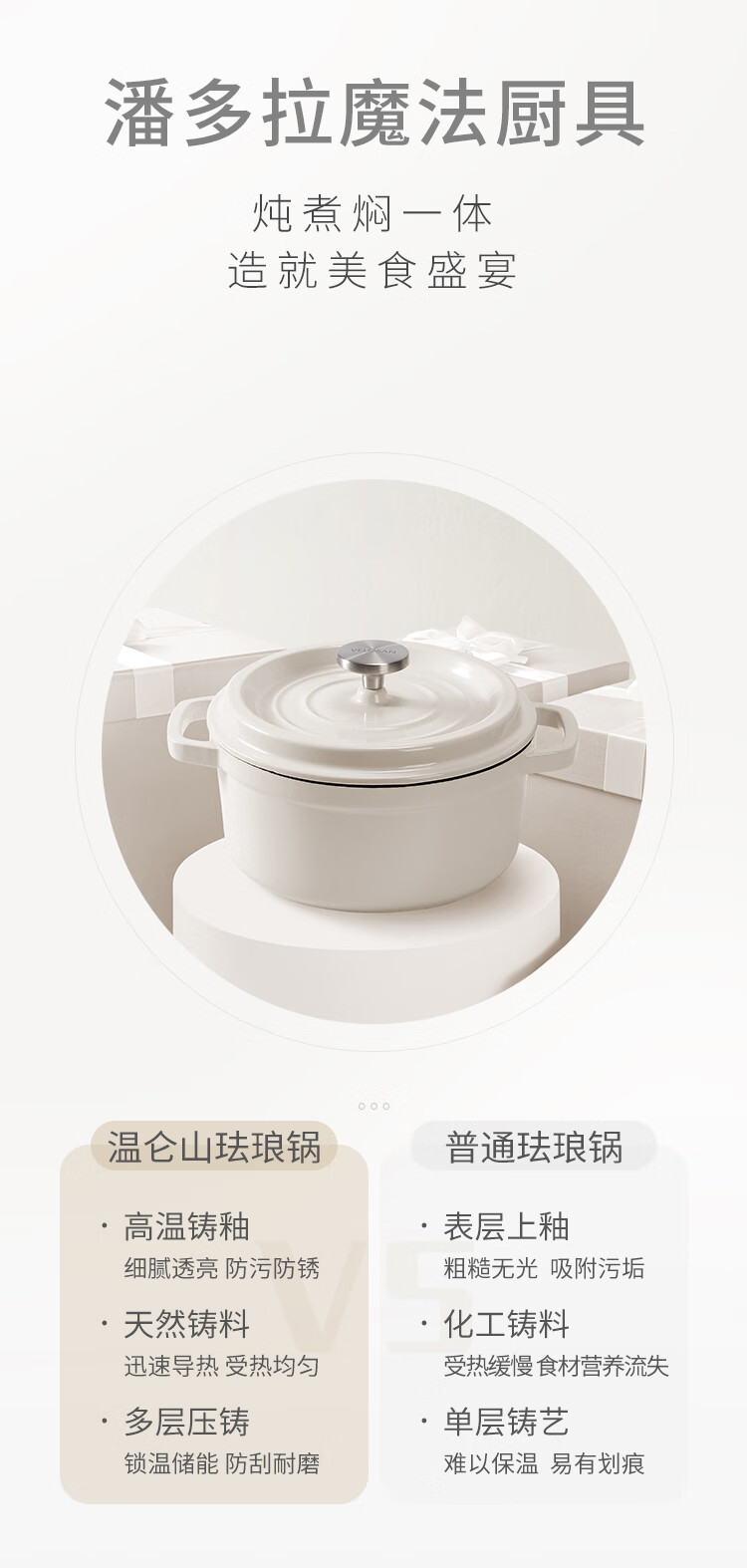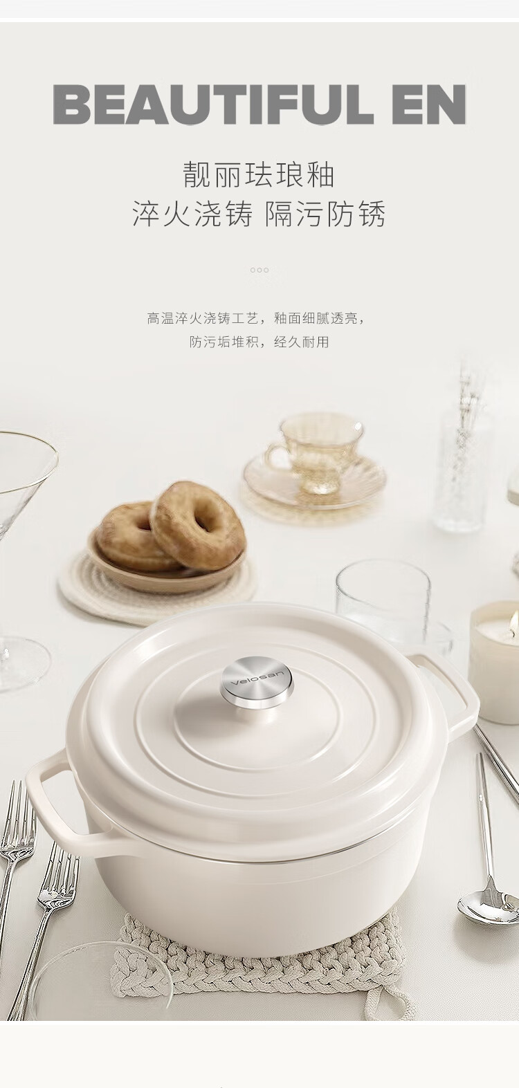 VELOSAN/温仑山 VELOSAN 潘朵拉珐琅锅 24cm 铸铁 锅焖 焗锅 辅食锅 煲汤锅 炖锅 海鲜锅大