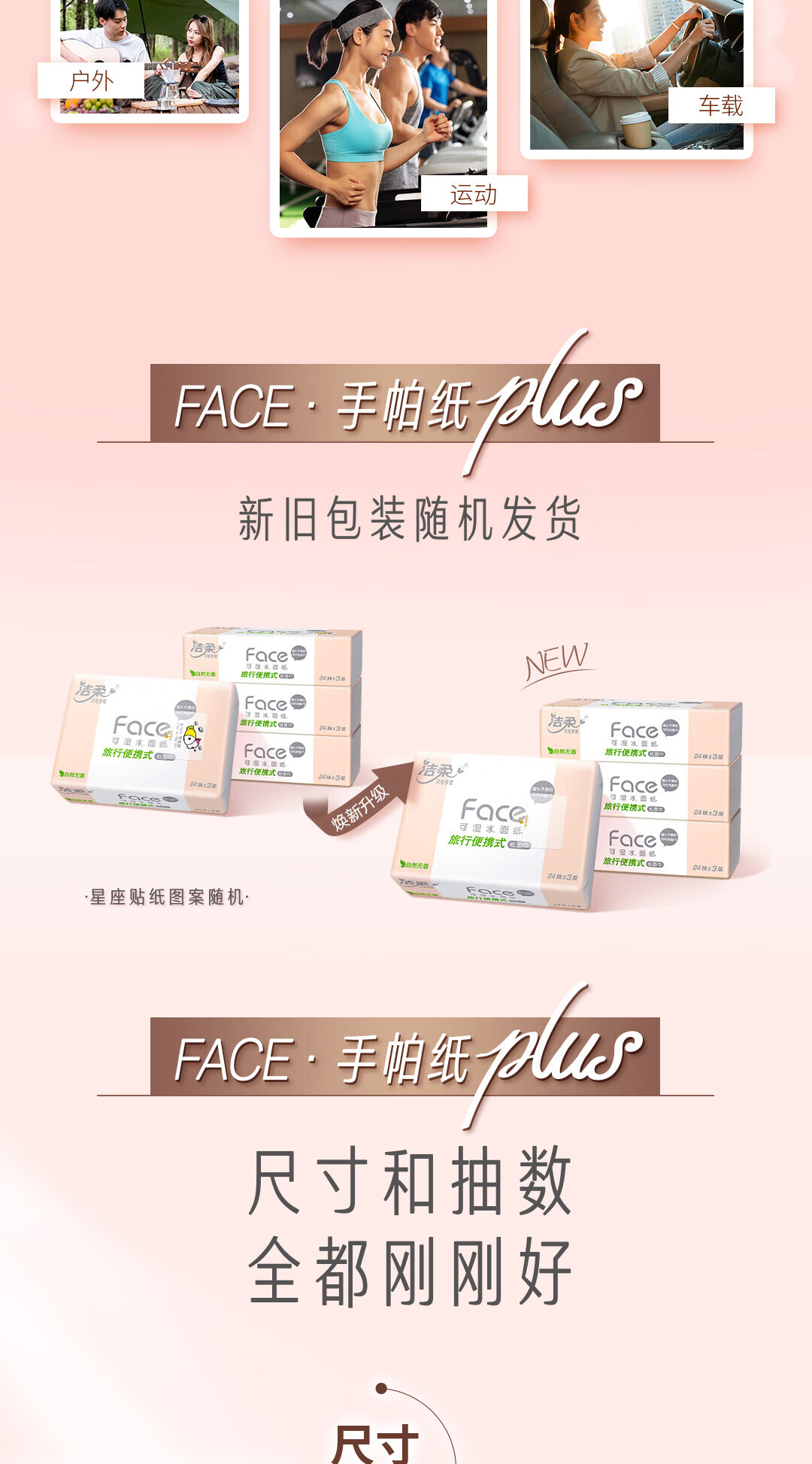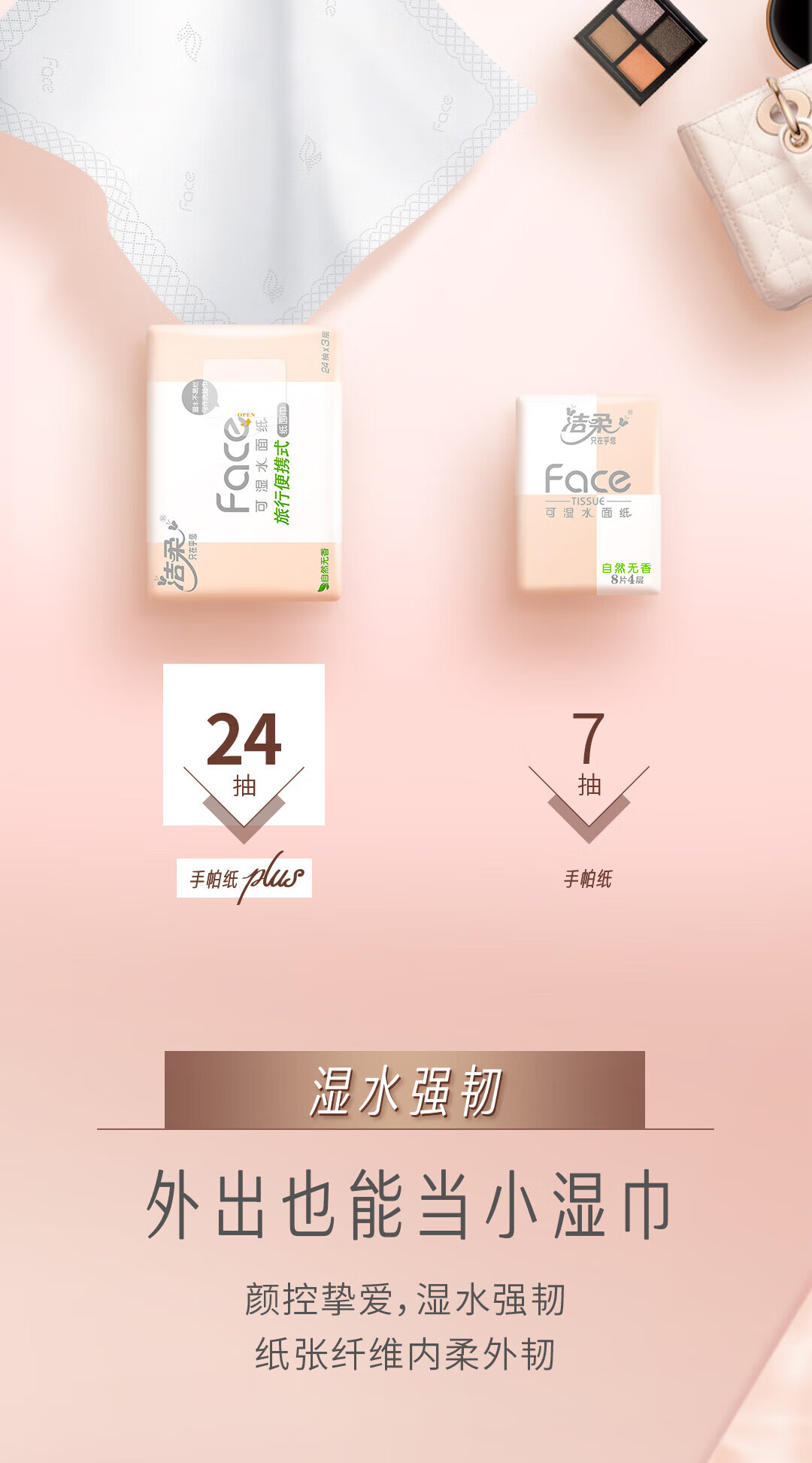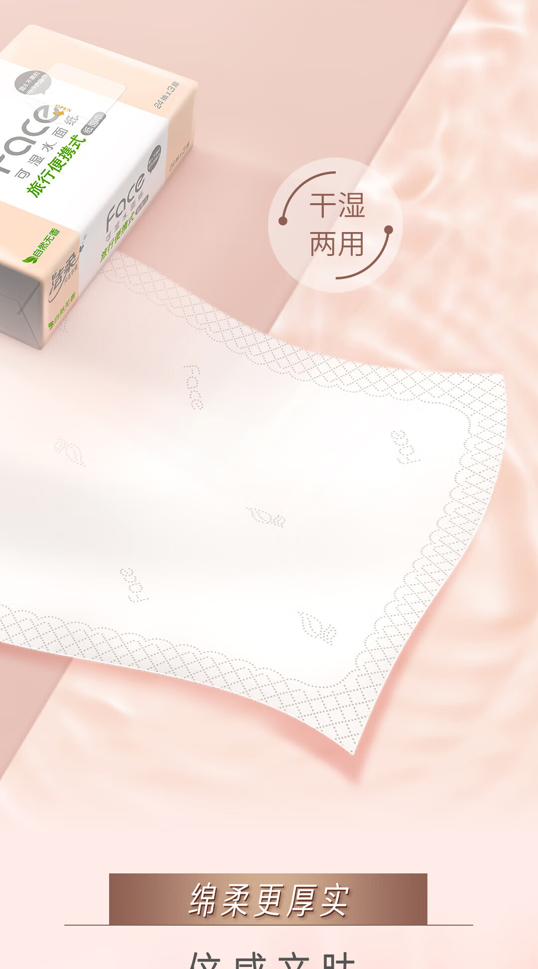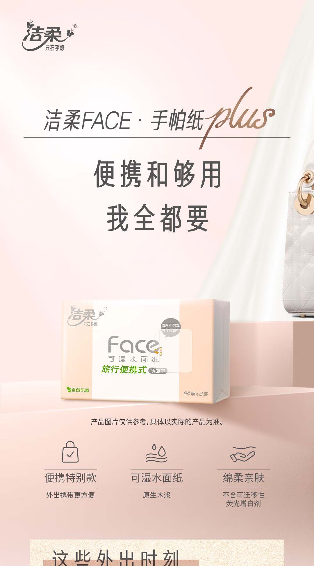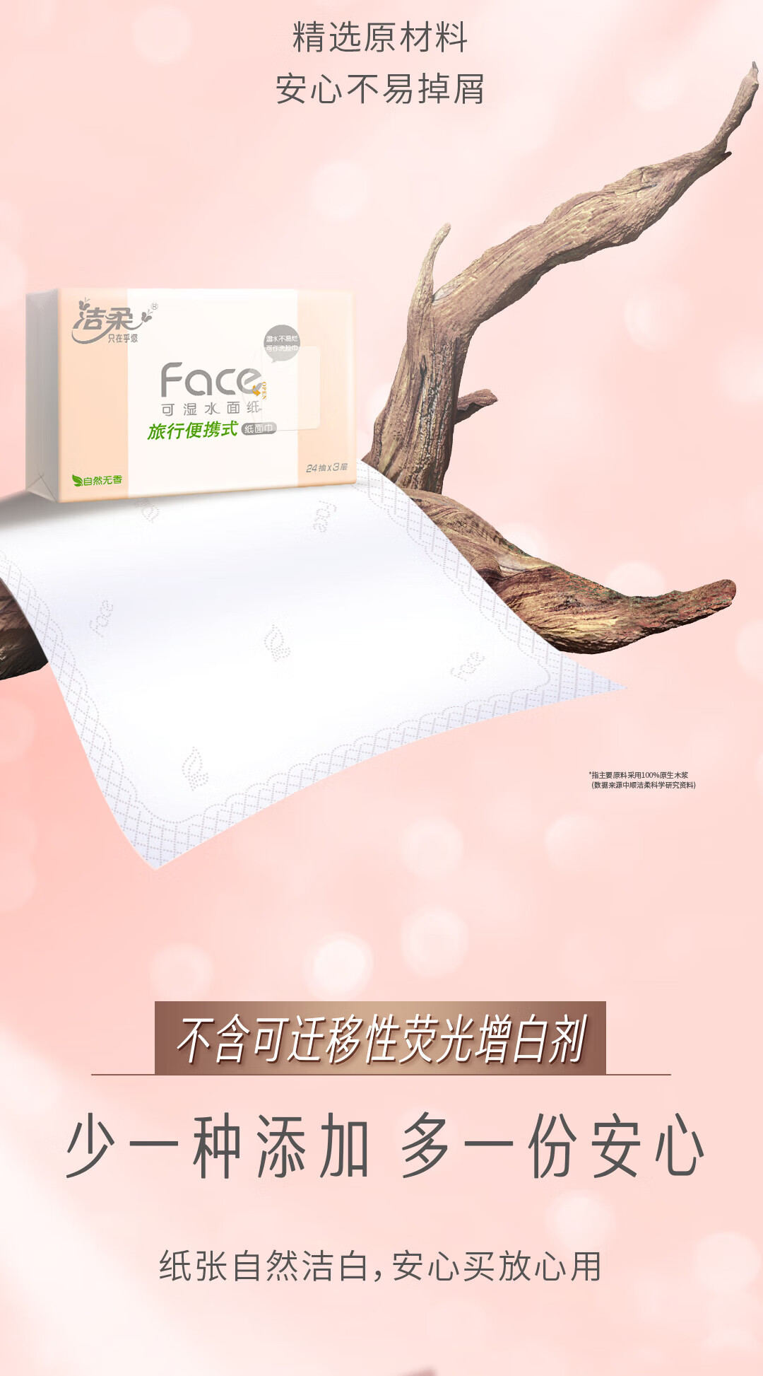 洁柔可湿水面纸迷你软抽3层24抽*8包装