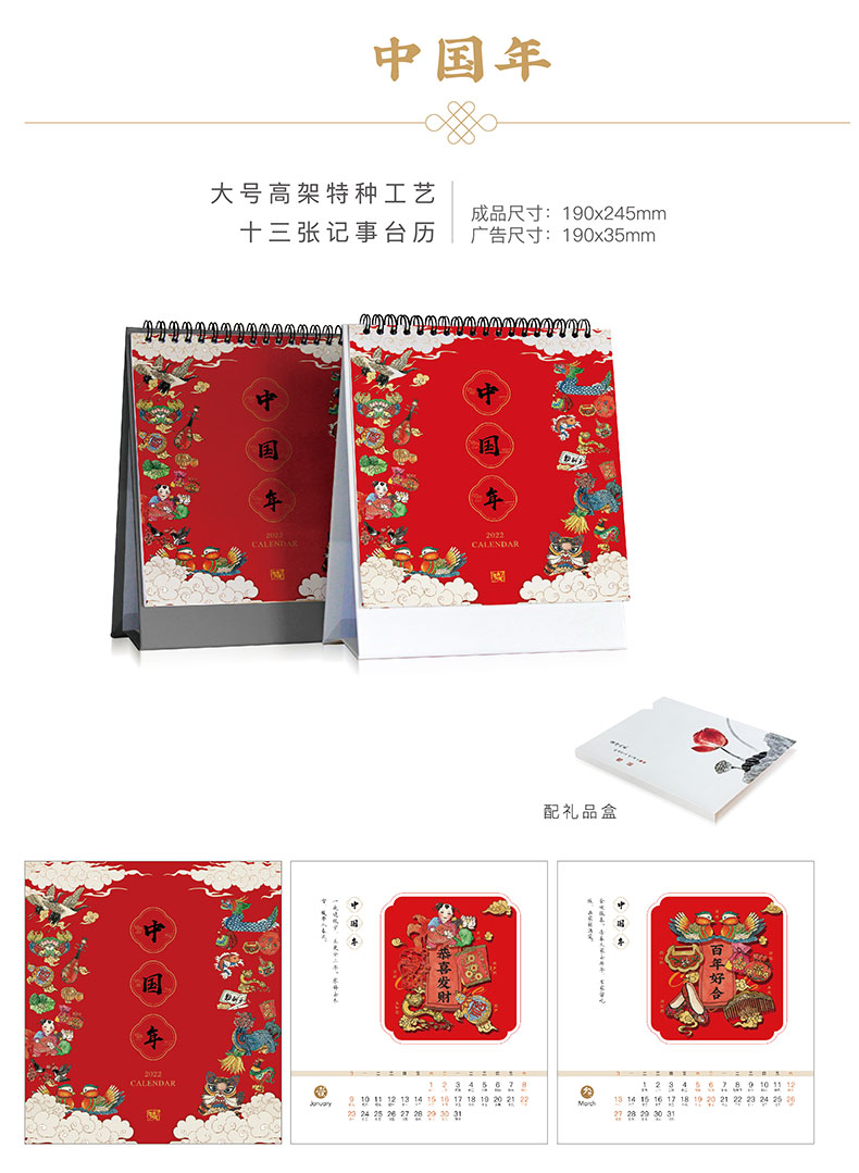 集雅月历-中国年JY-22017B国潮文创中式复古桌面虎年2022年台历