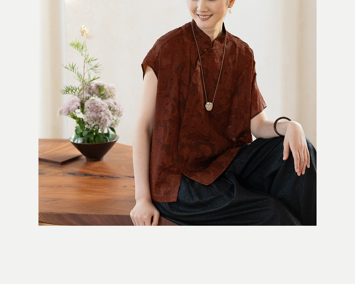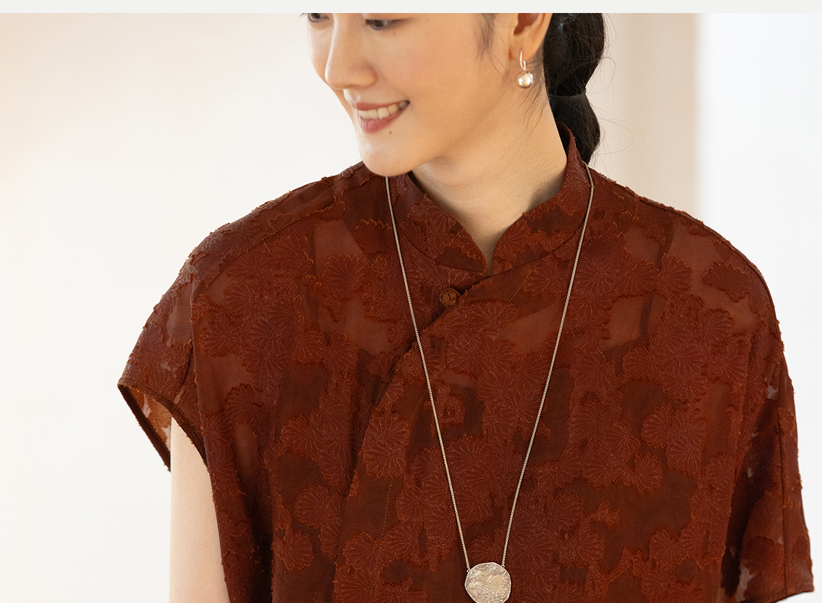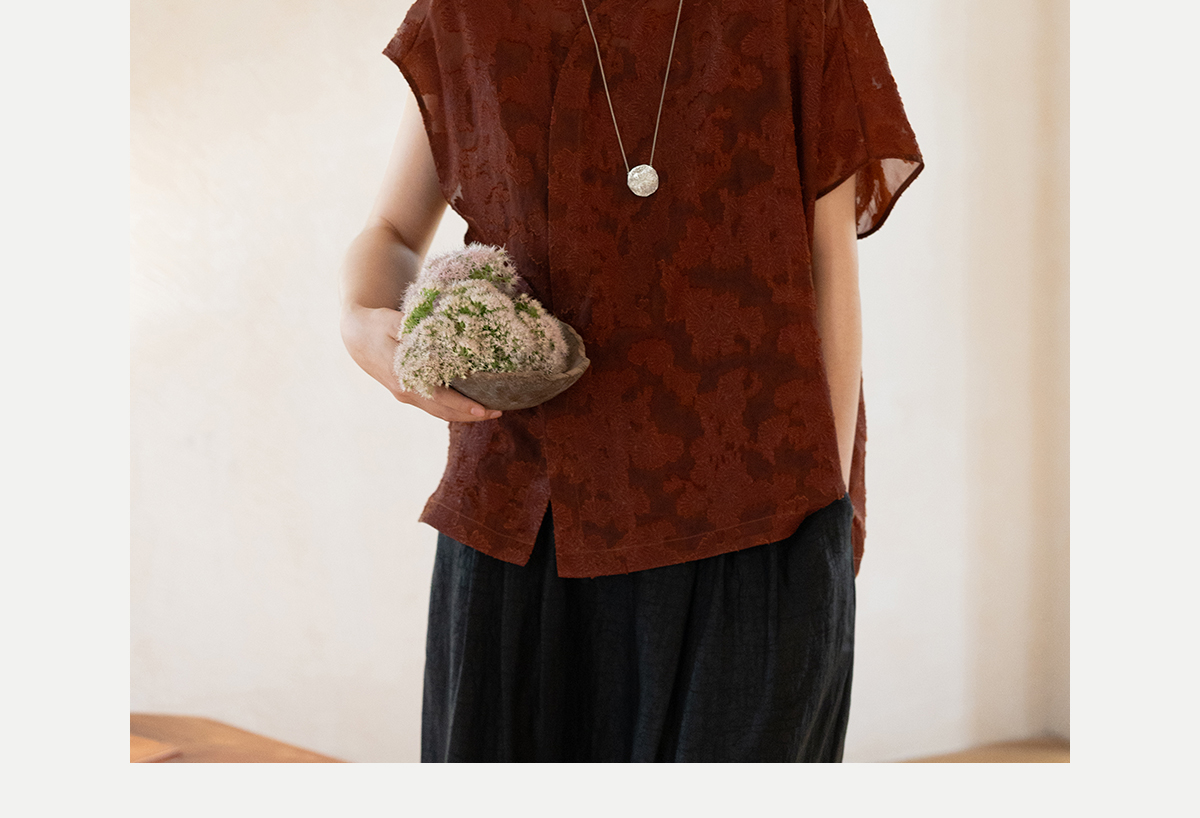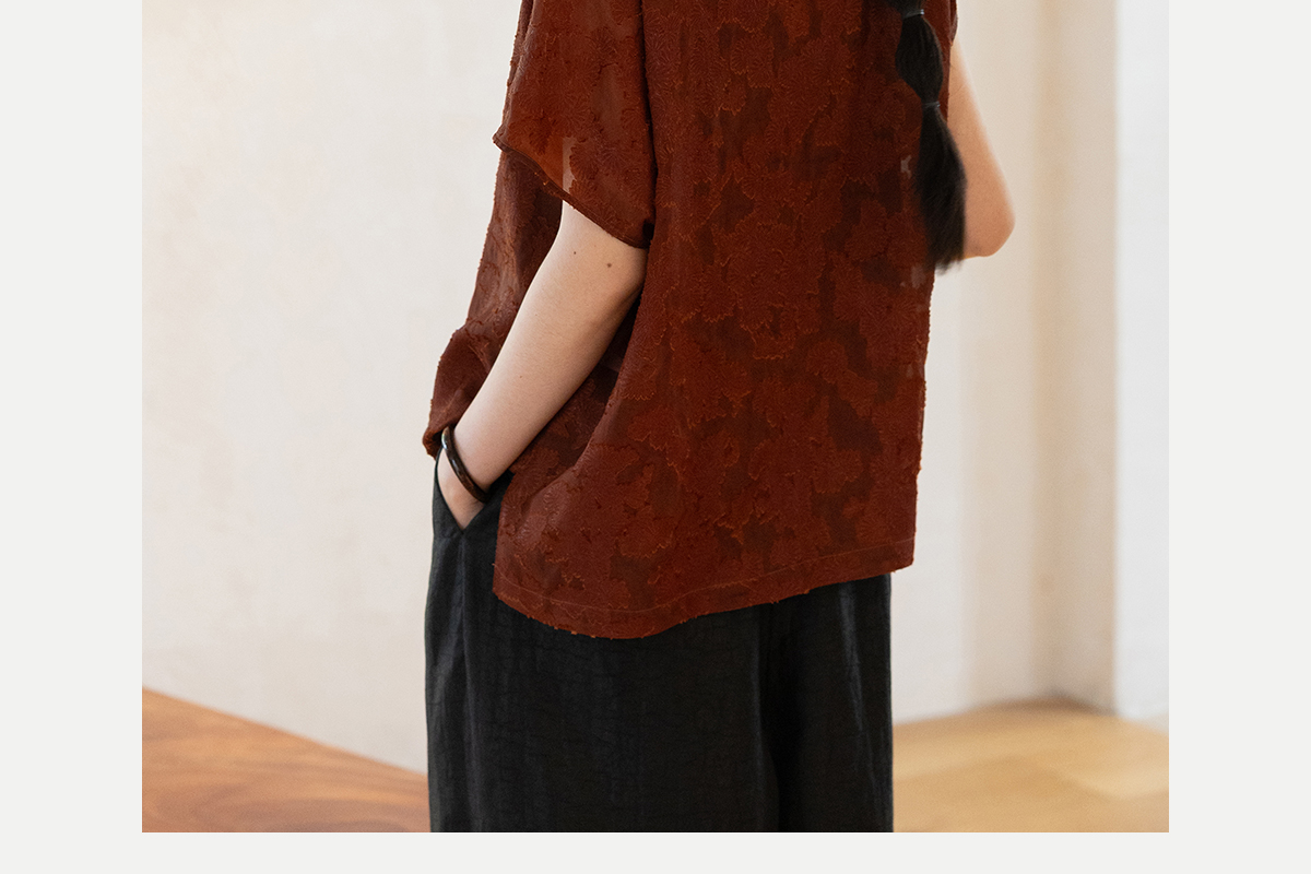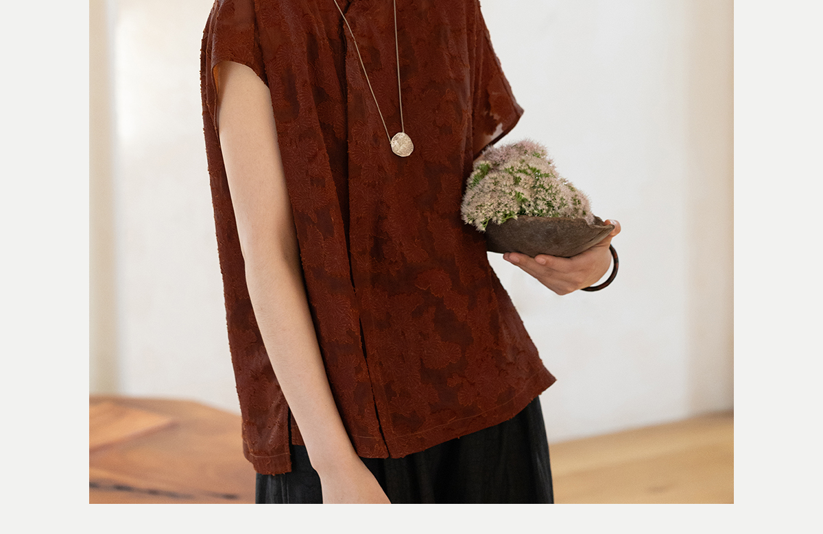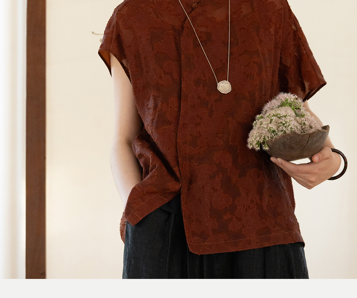 牧衣游原创 剪花香云纱套头衫轻薄设计感立领复古新中式开衫 松海