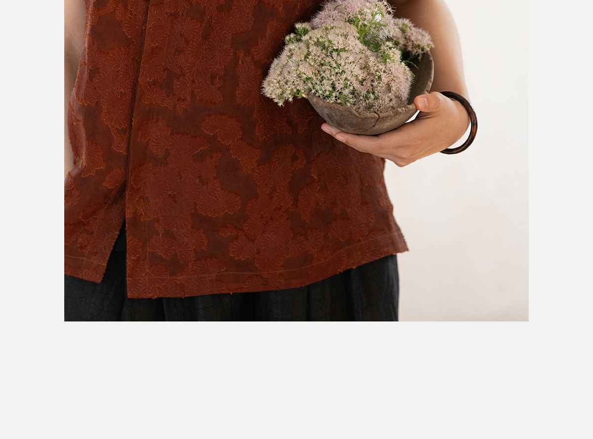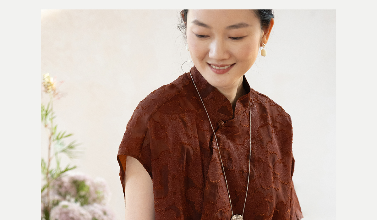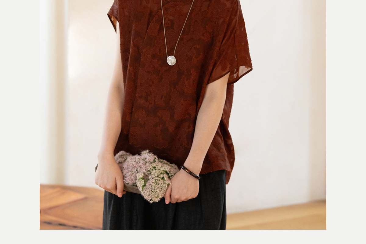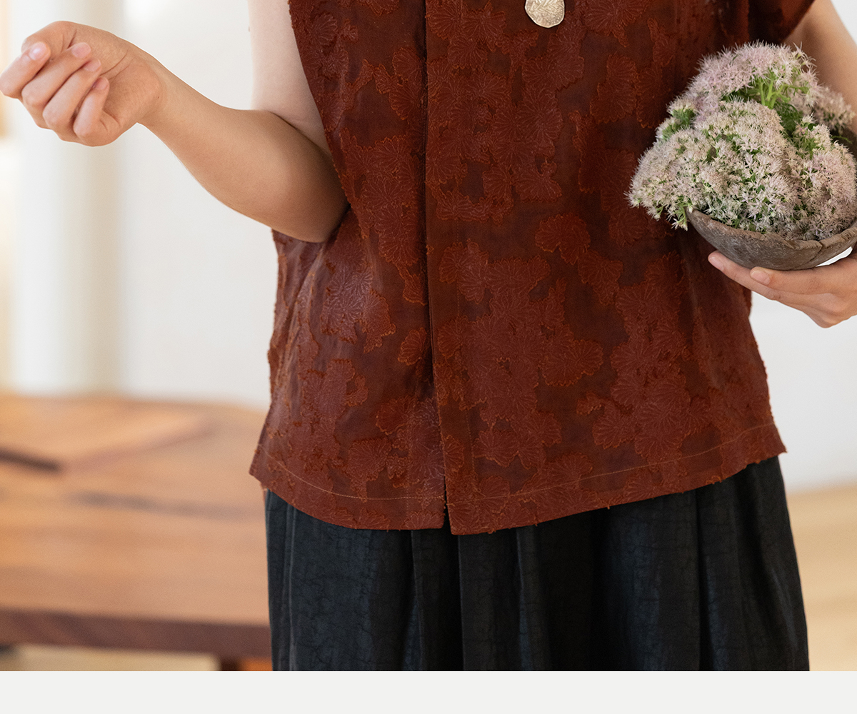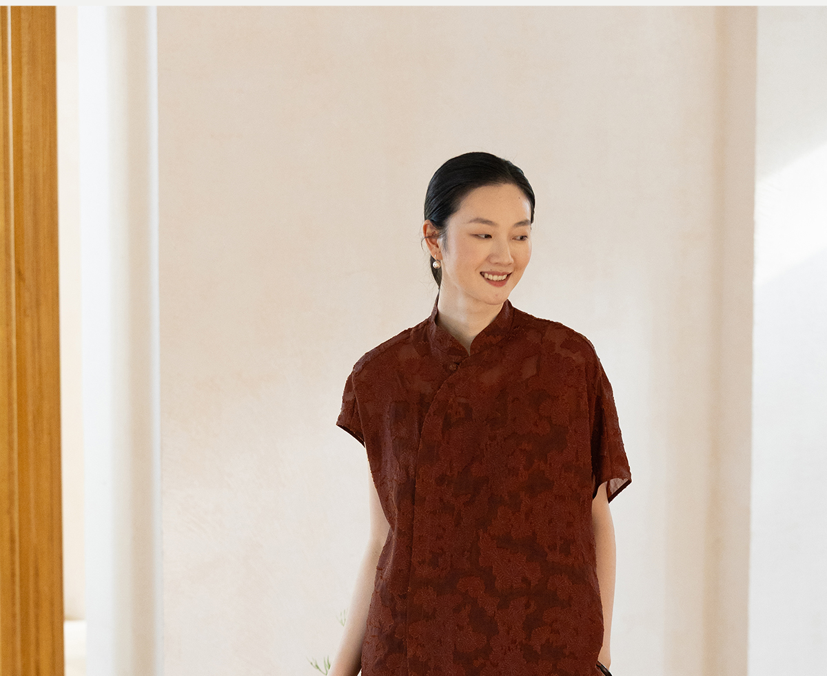 牧衣游原创 剪花香云纱套头衫轻薄设计感立领复古新中式开衫 松海