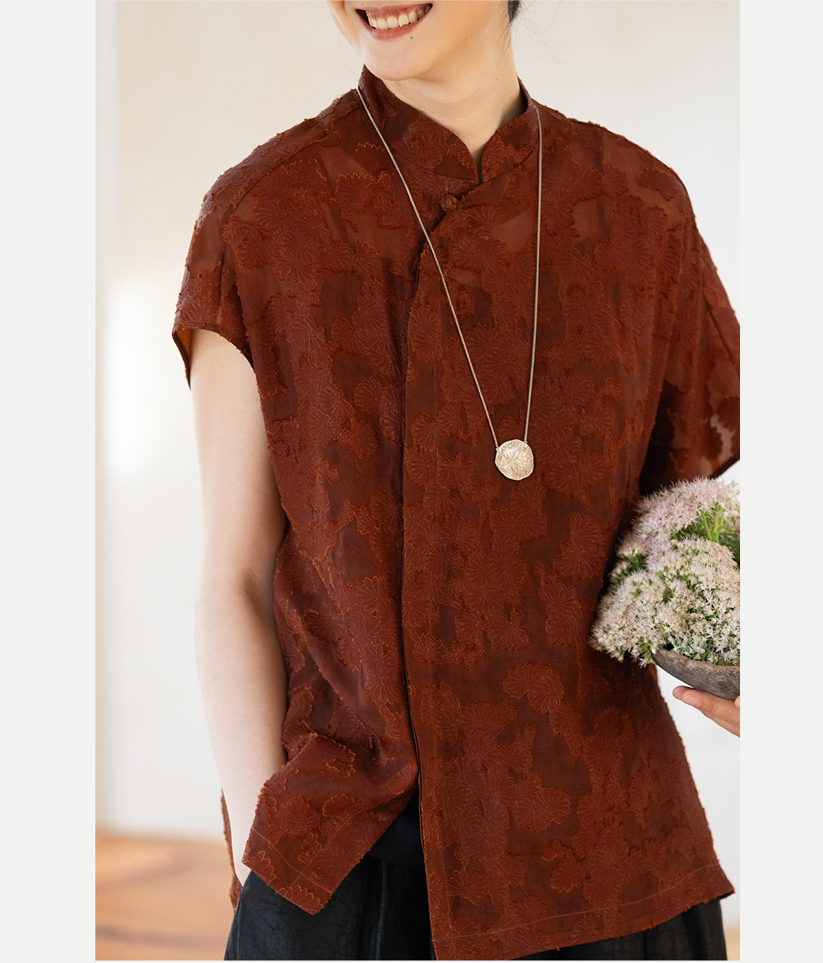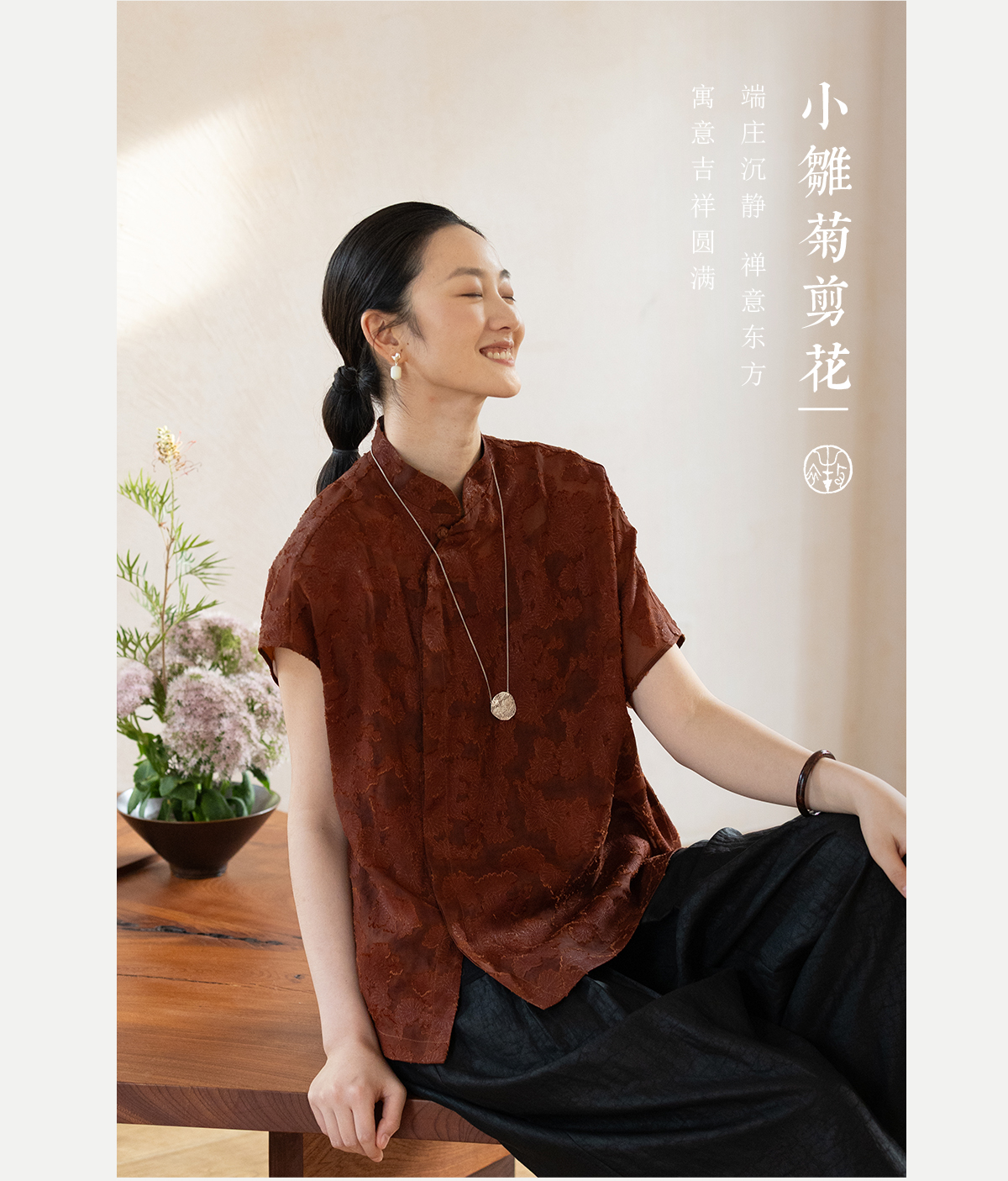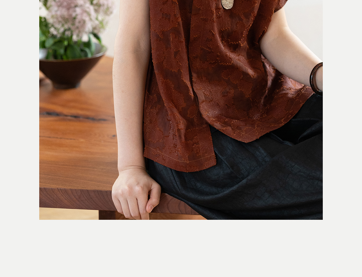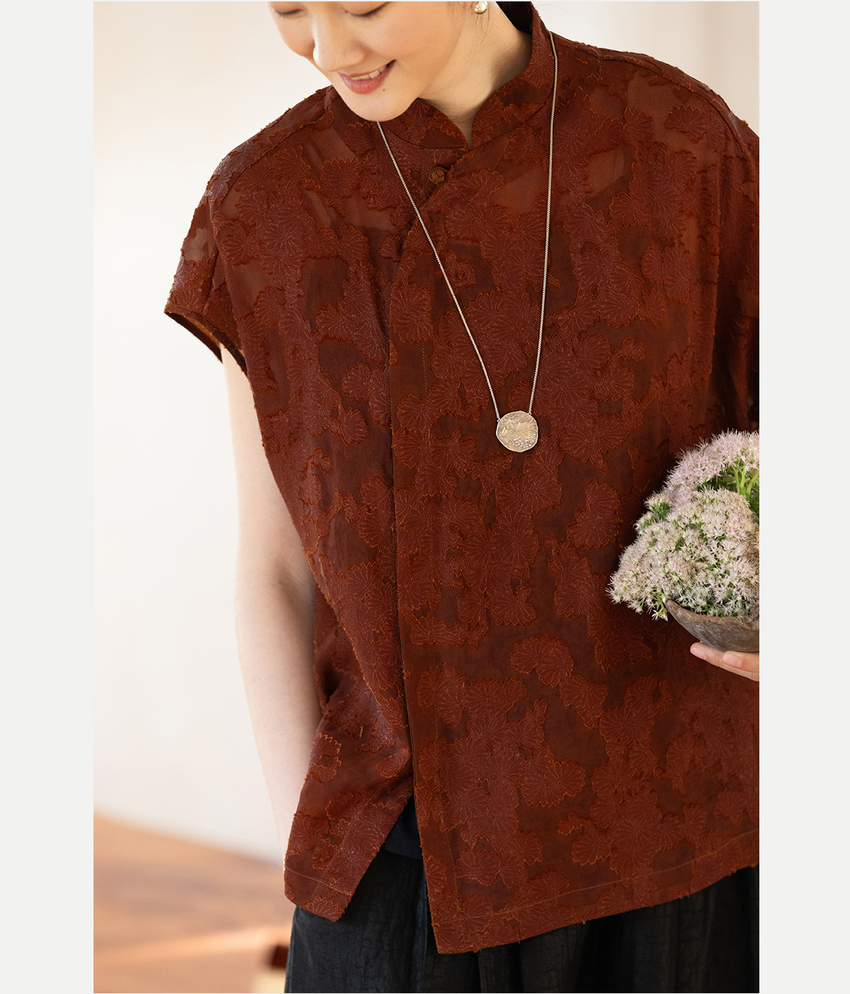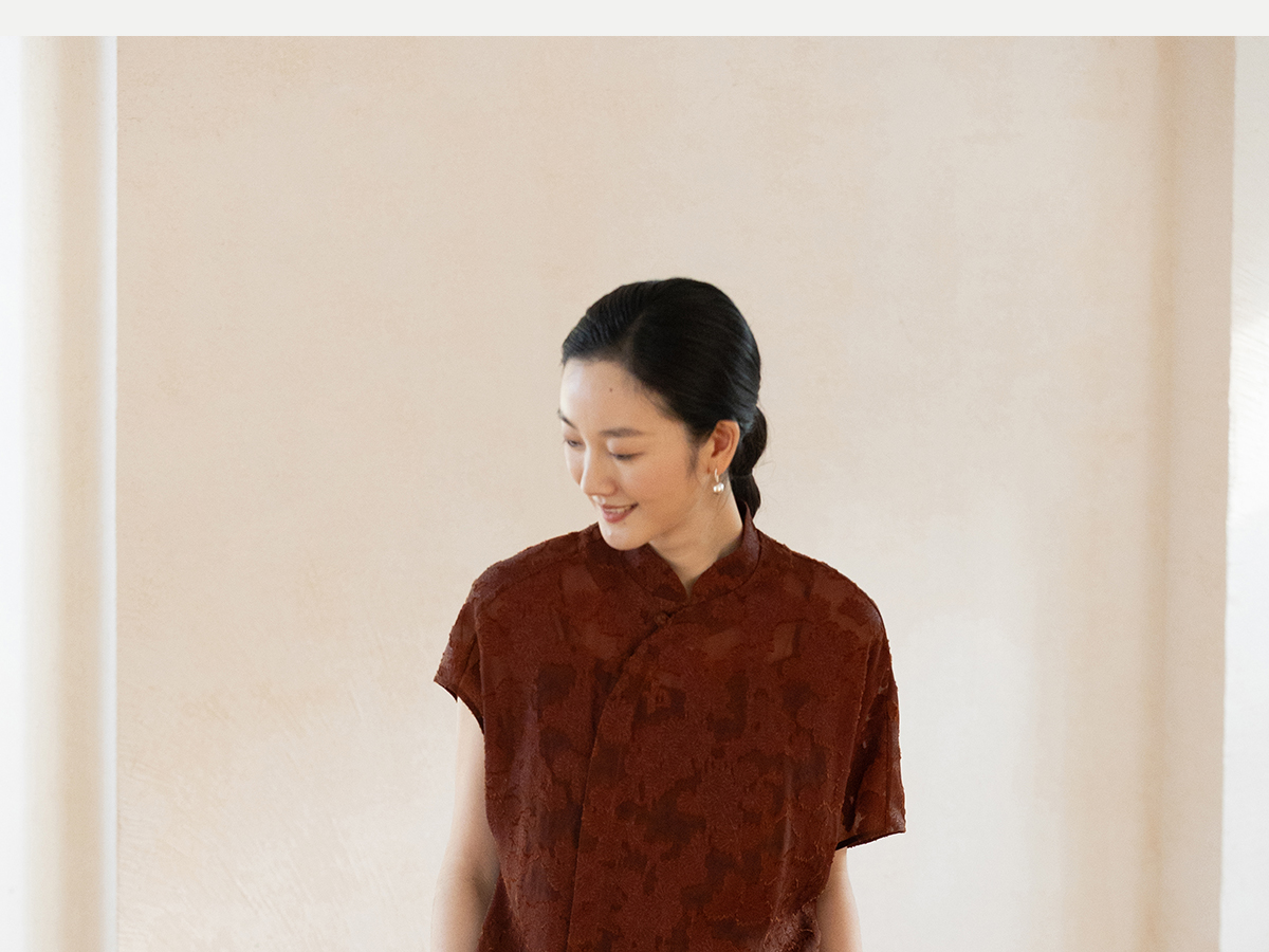 牧衣游原创 剪花香云纱套头衫轻薄设计感立领复古新中式开衫 松海