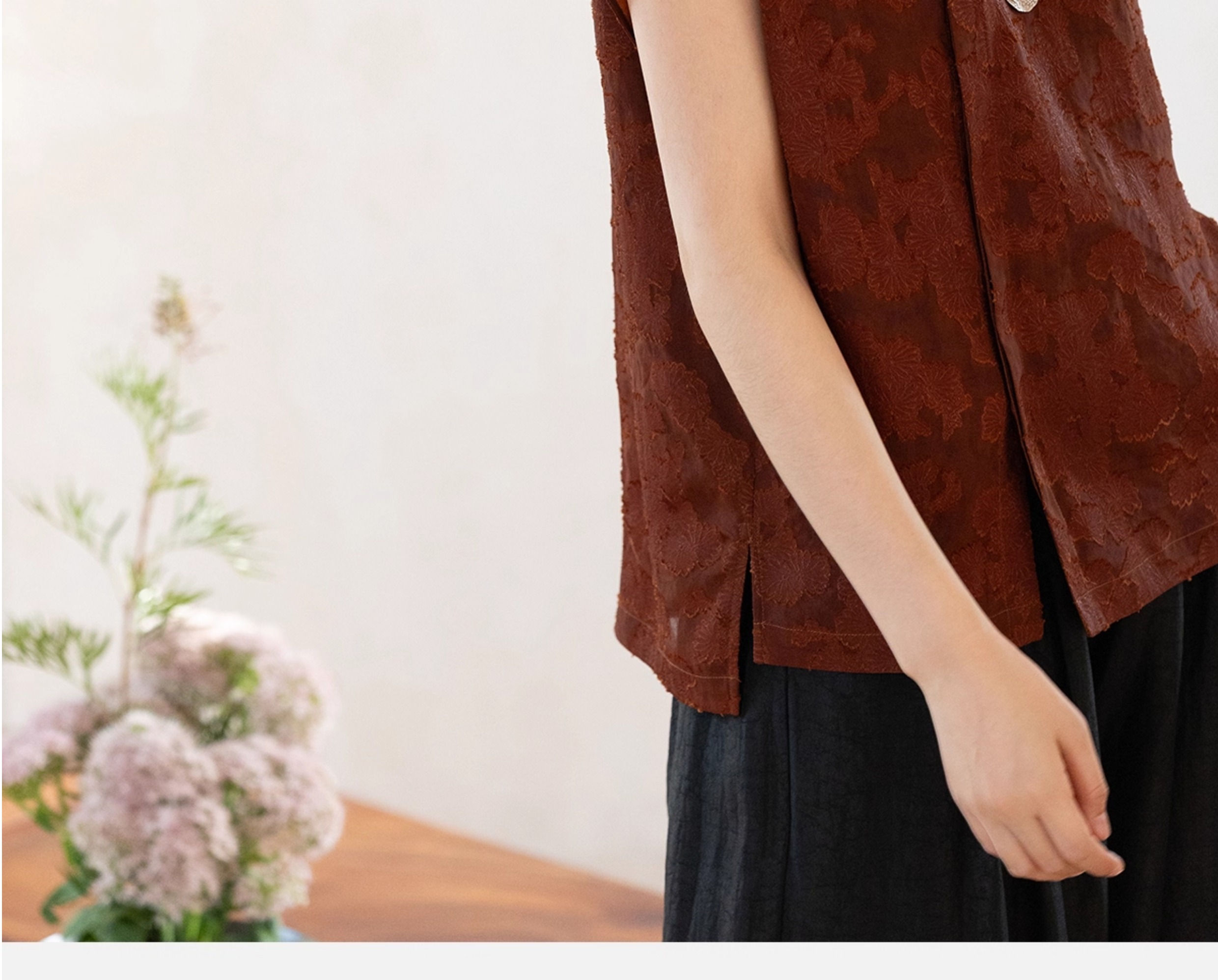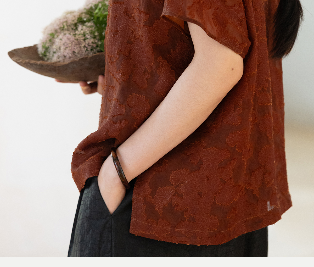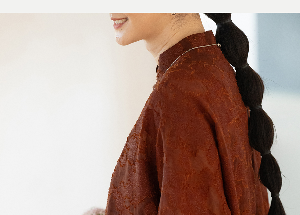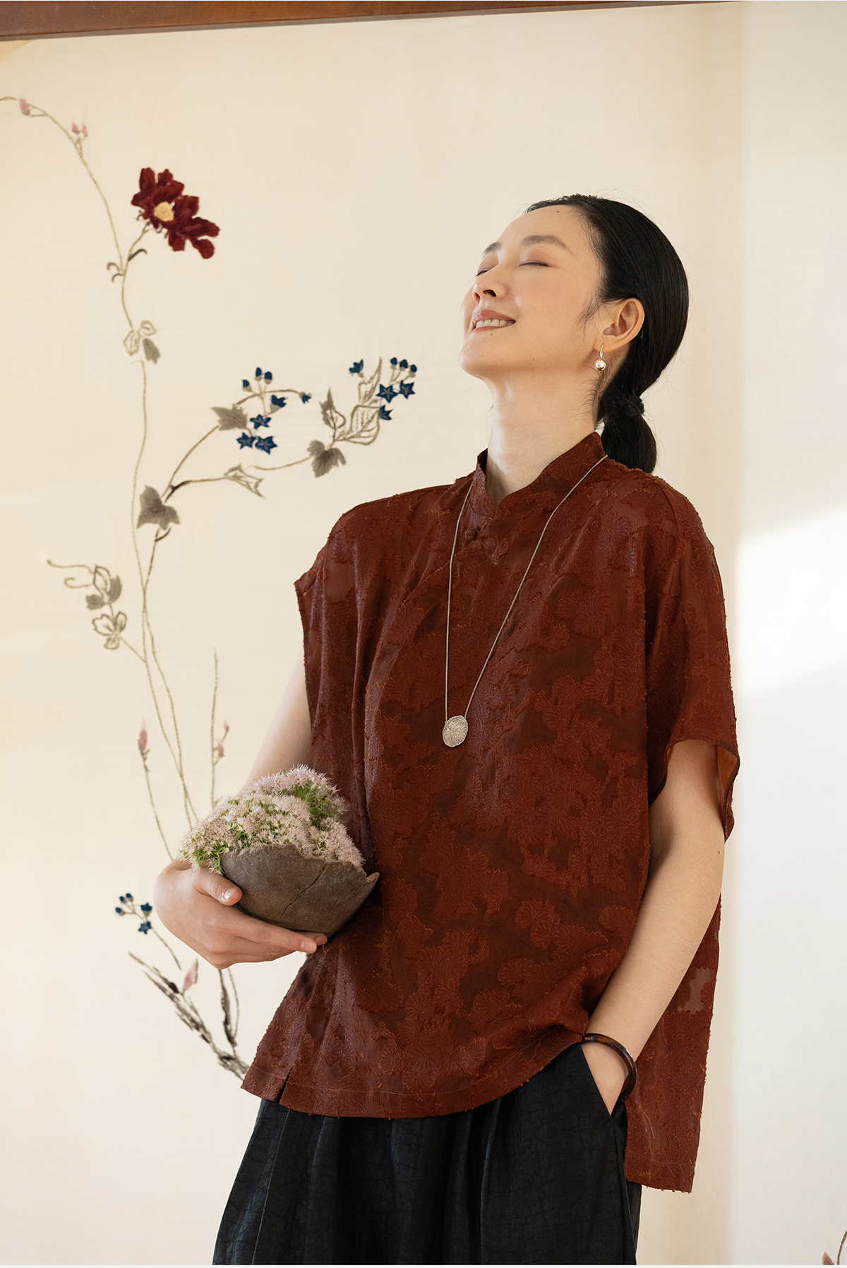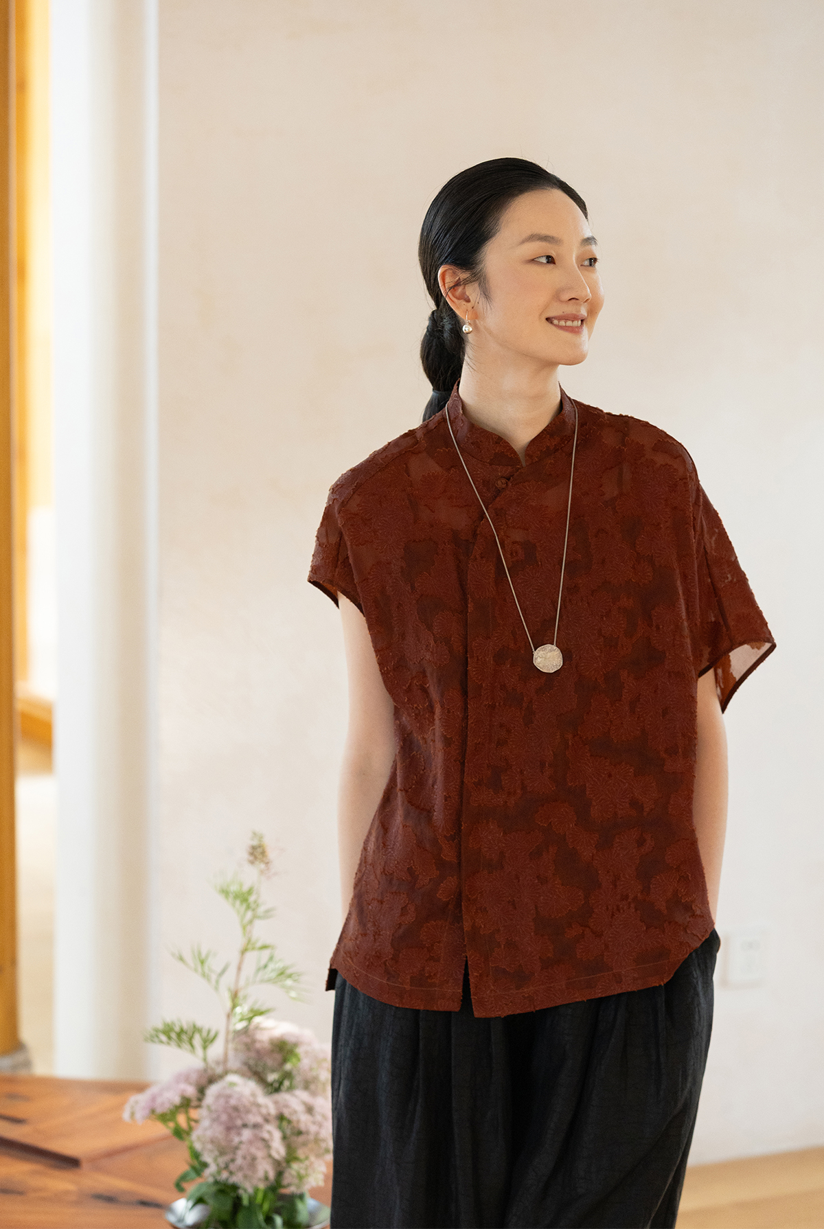 牧衣游原创 剪花香云纱套头衫轻薄设计感立领复古新中式开衫 松海