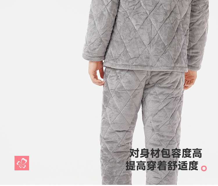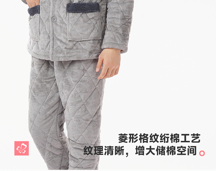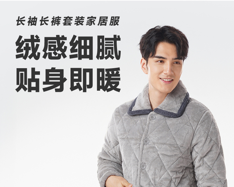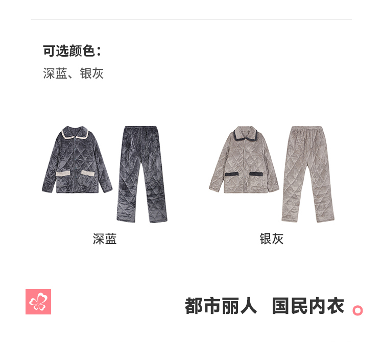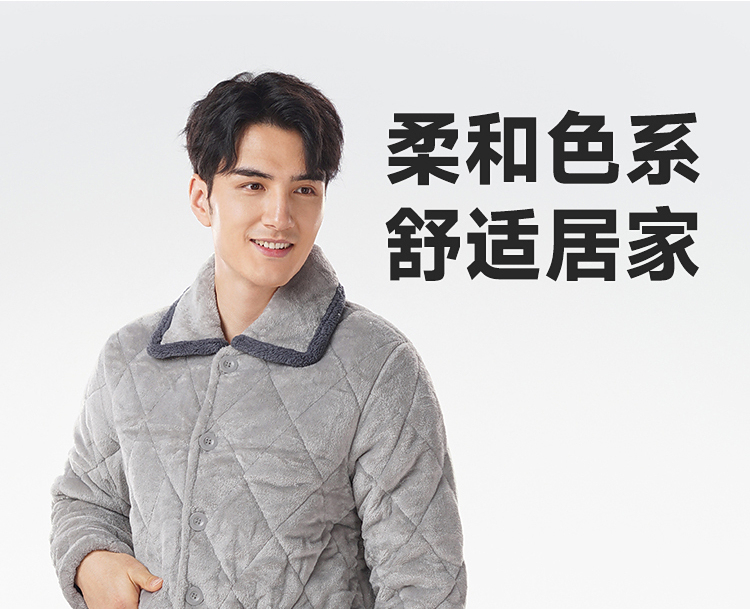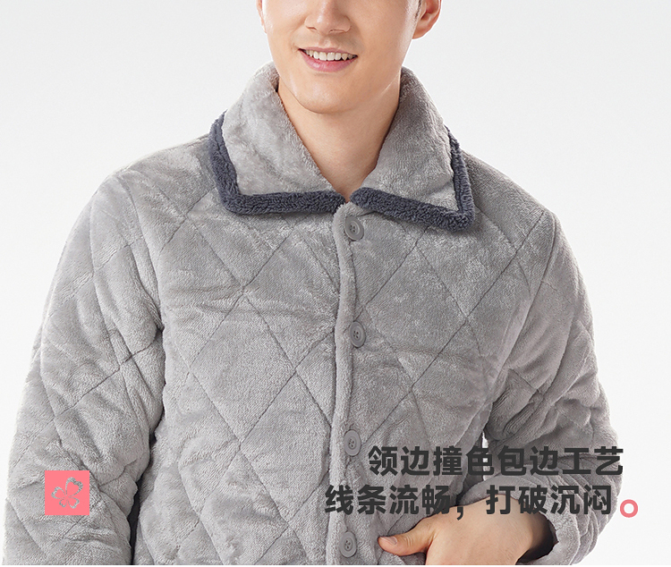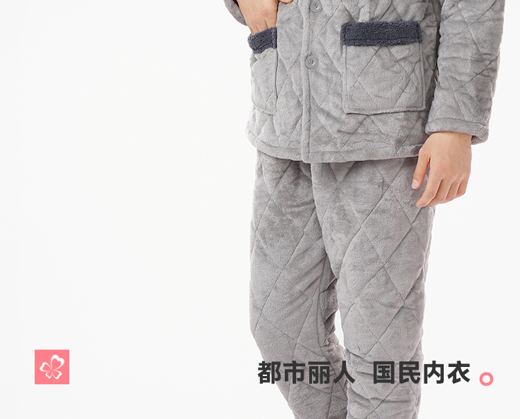 都市丽人睡衣法兰绒夹棉男士家居服长袖长裤加厚夹棉套装FHH0C1