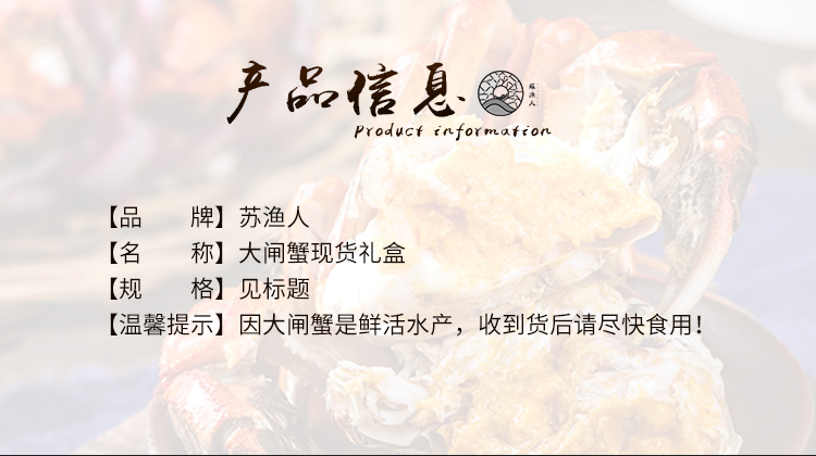 【礼券】苏渔人大闸蟹礼券1999型 母蟹3.0两/只 全母8只装