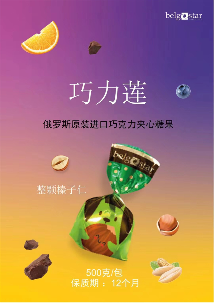 【中欧班列精选】俄罗斯糖果 原装进口巧力莲 整颗榛子仁夹心巧克力糖果 500g