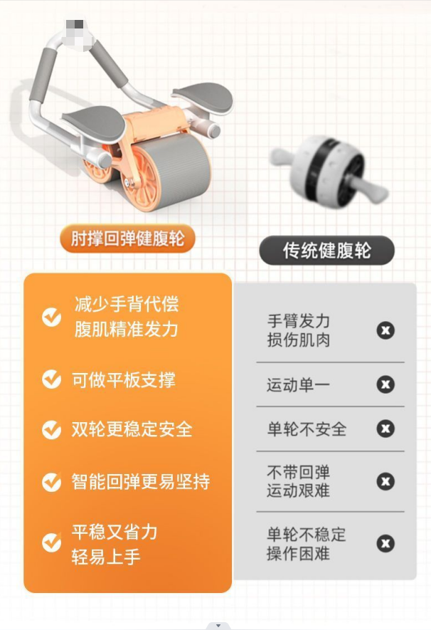 【大鹏】健腹轮自动回弹肘撑男女家用卷腹健身器材