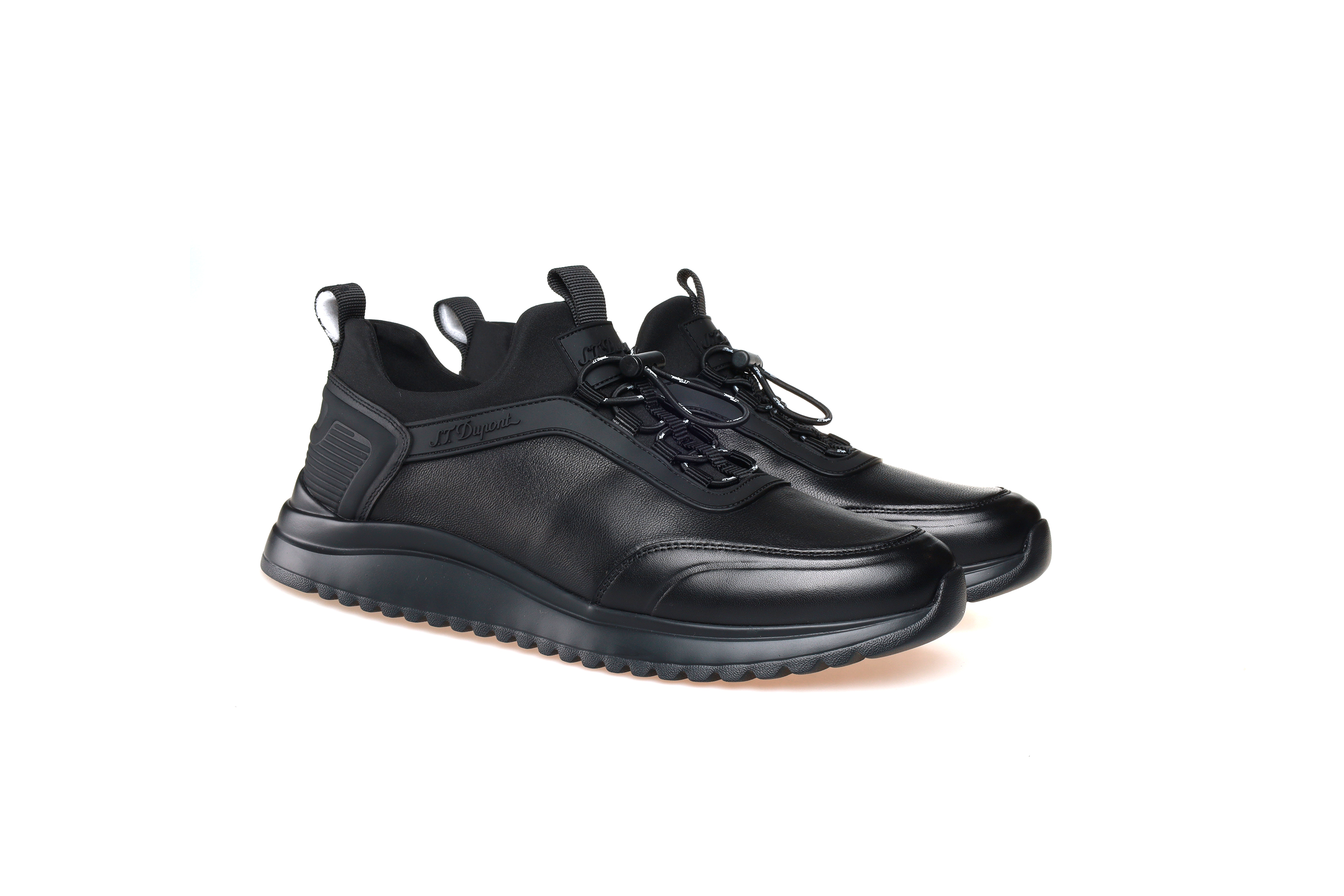 豪麟名鞋都彭男鞋羊皮革+牛皮革+织物休闲鞋E32211765黑色