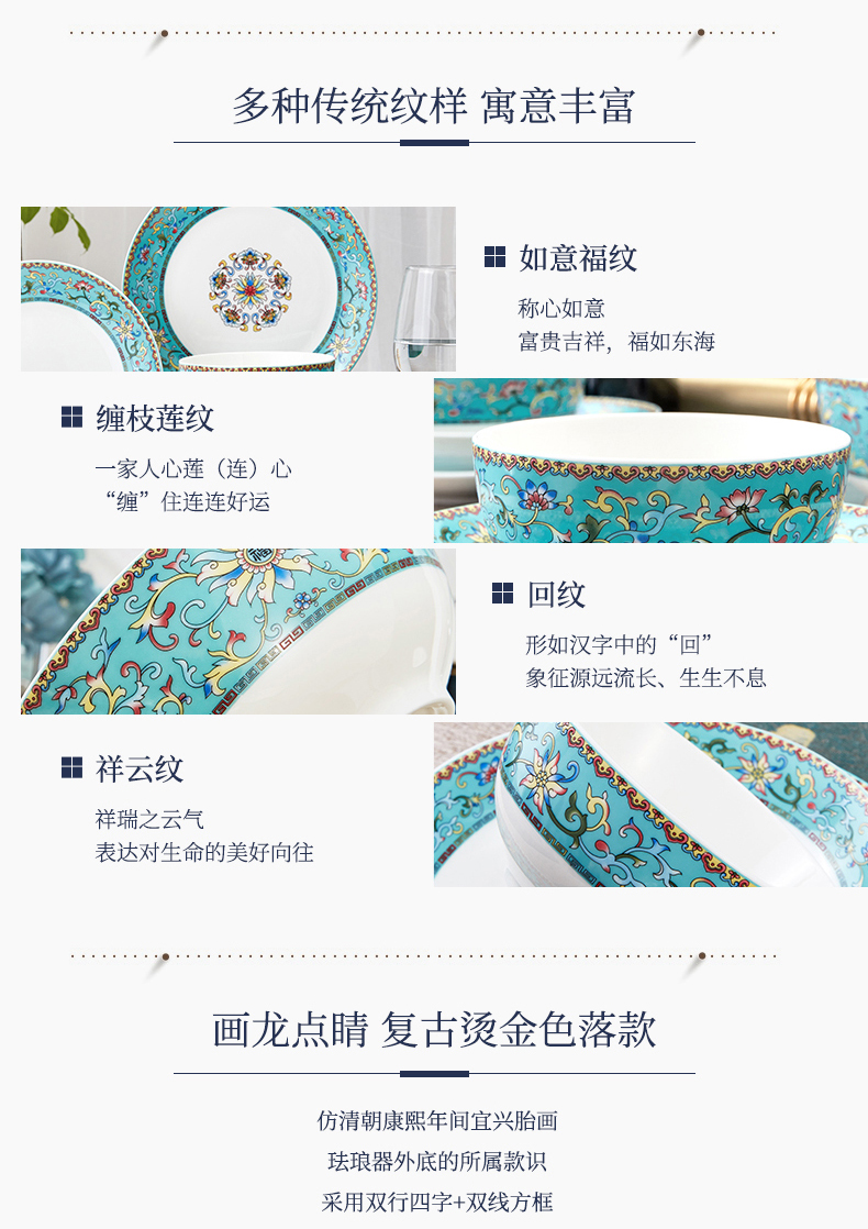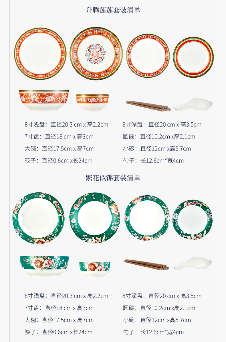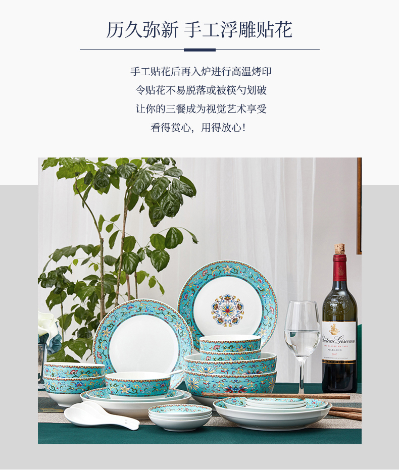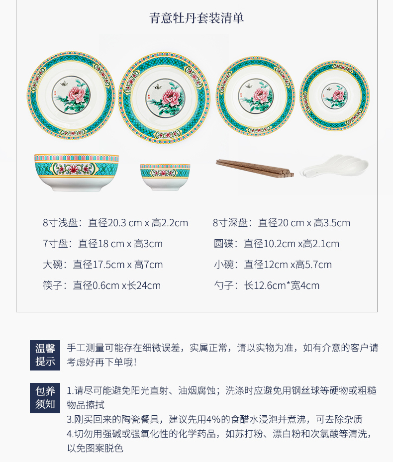 青意牡丹幸福莲藤 新骨瓷28头餐具套组(含竹筷)