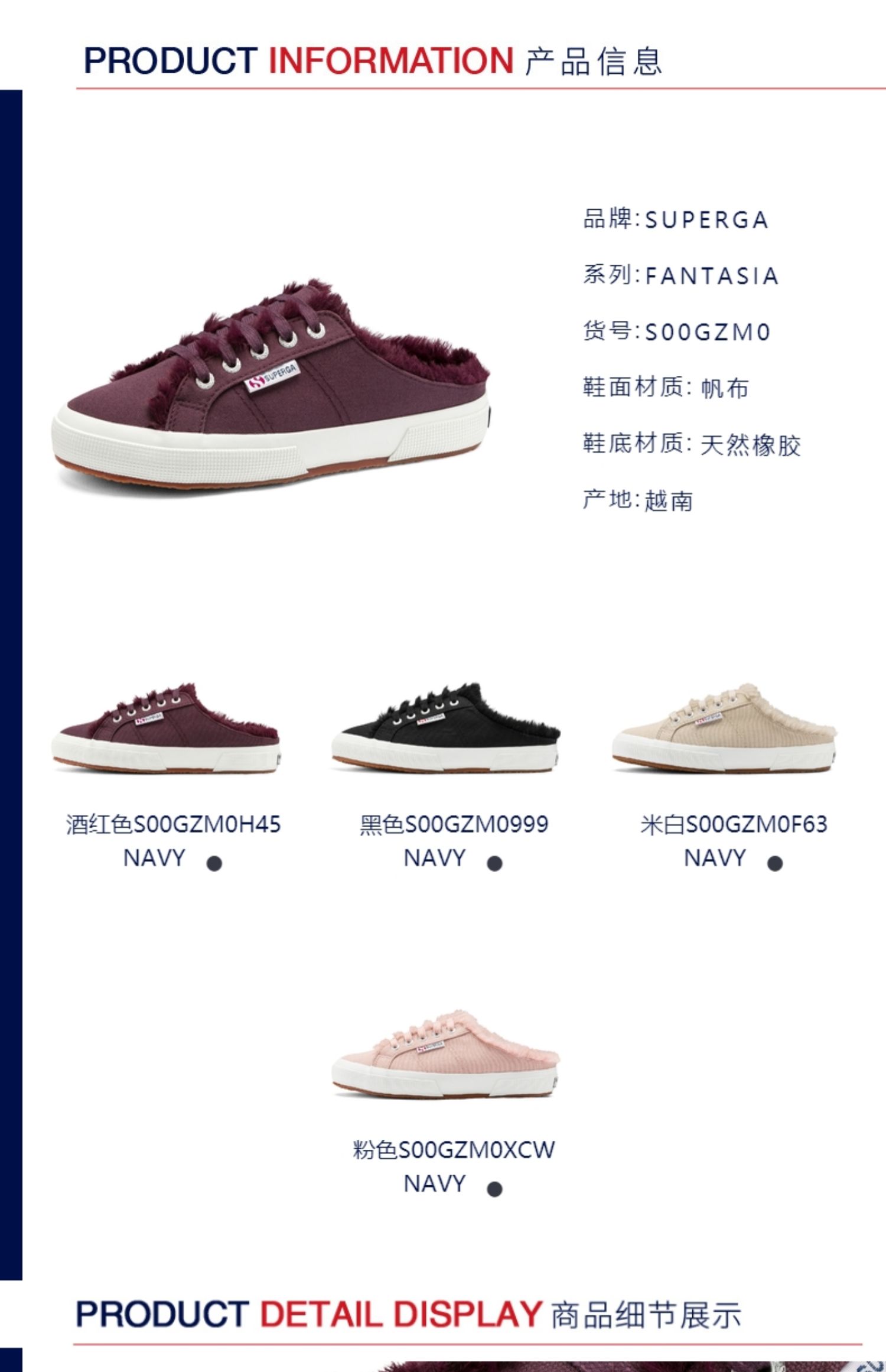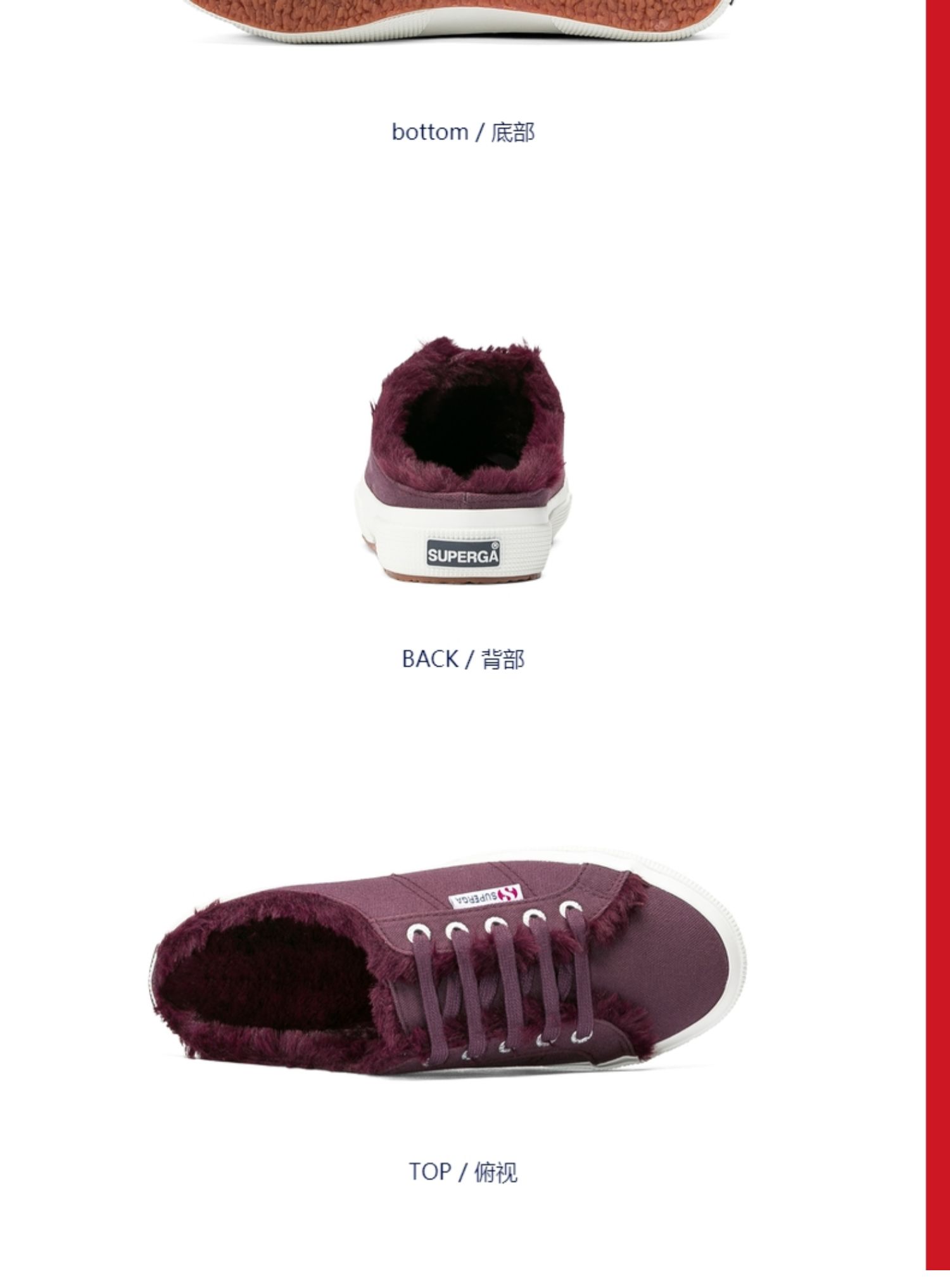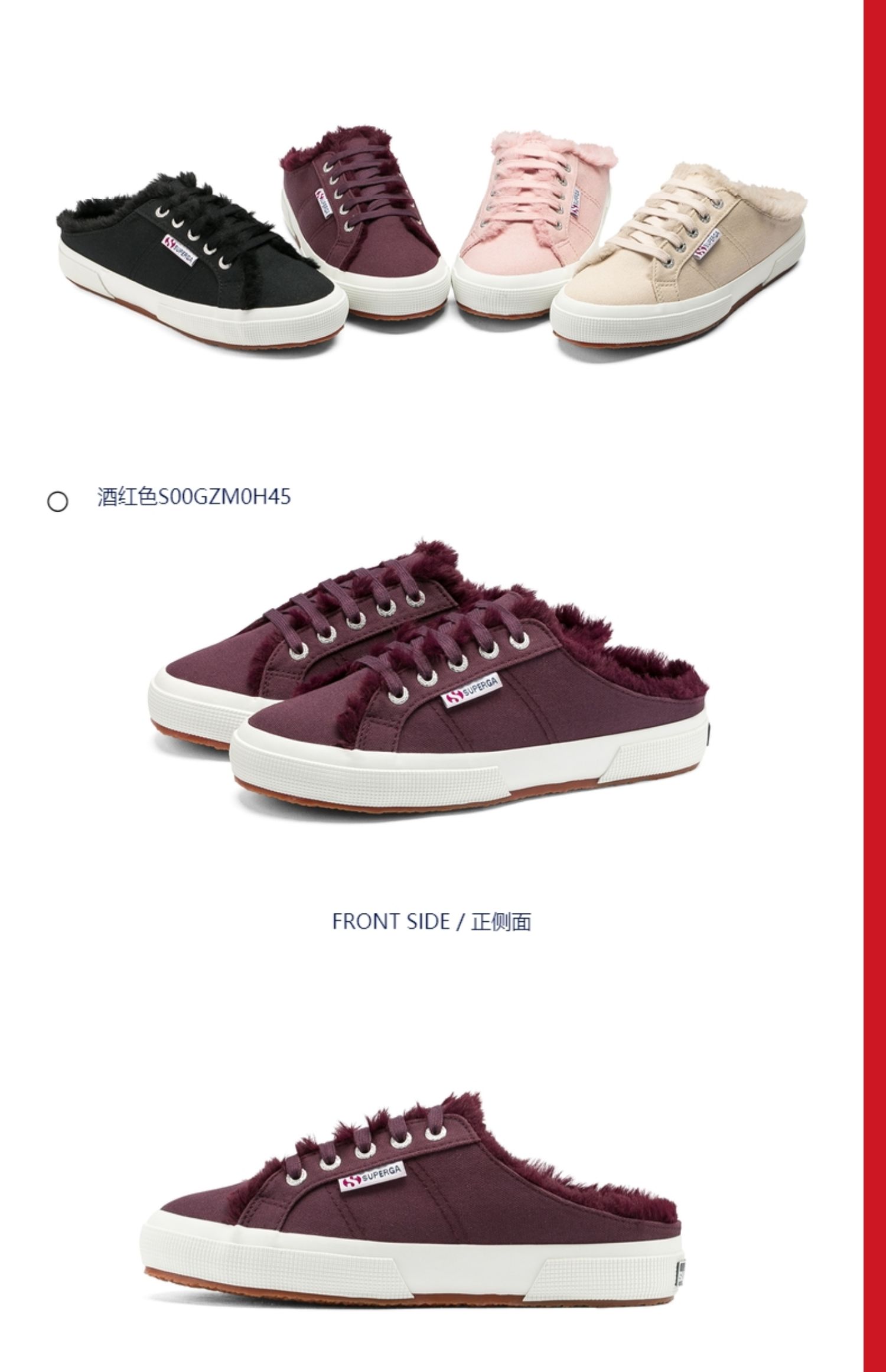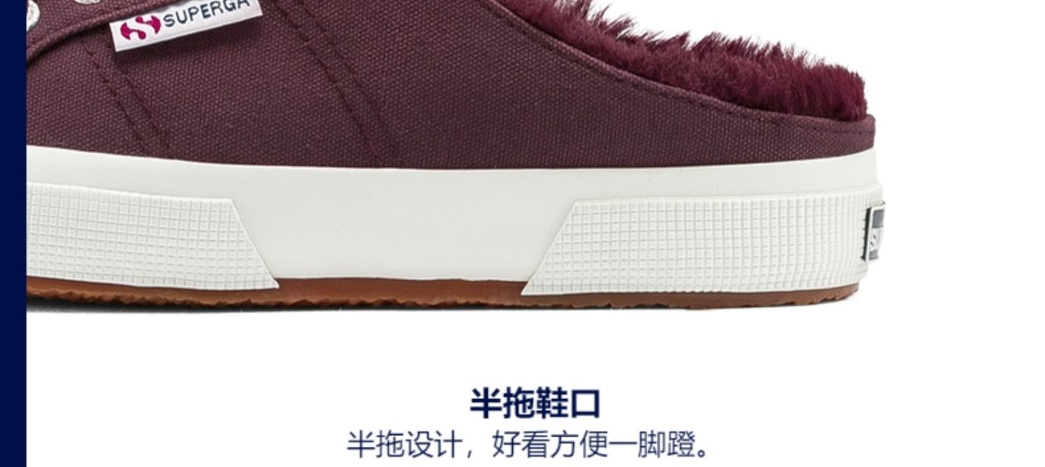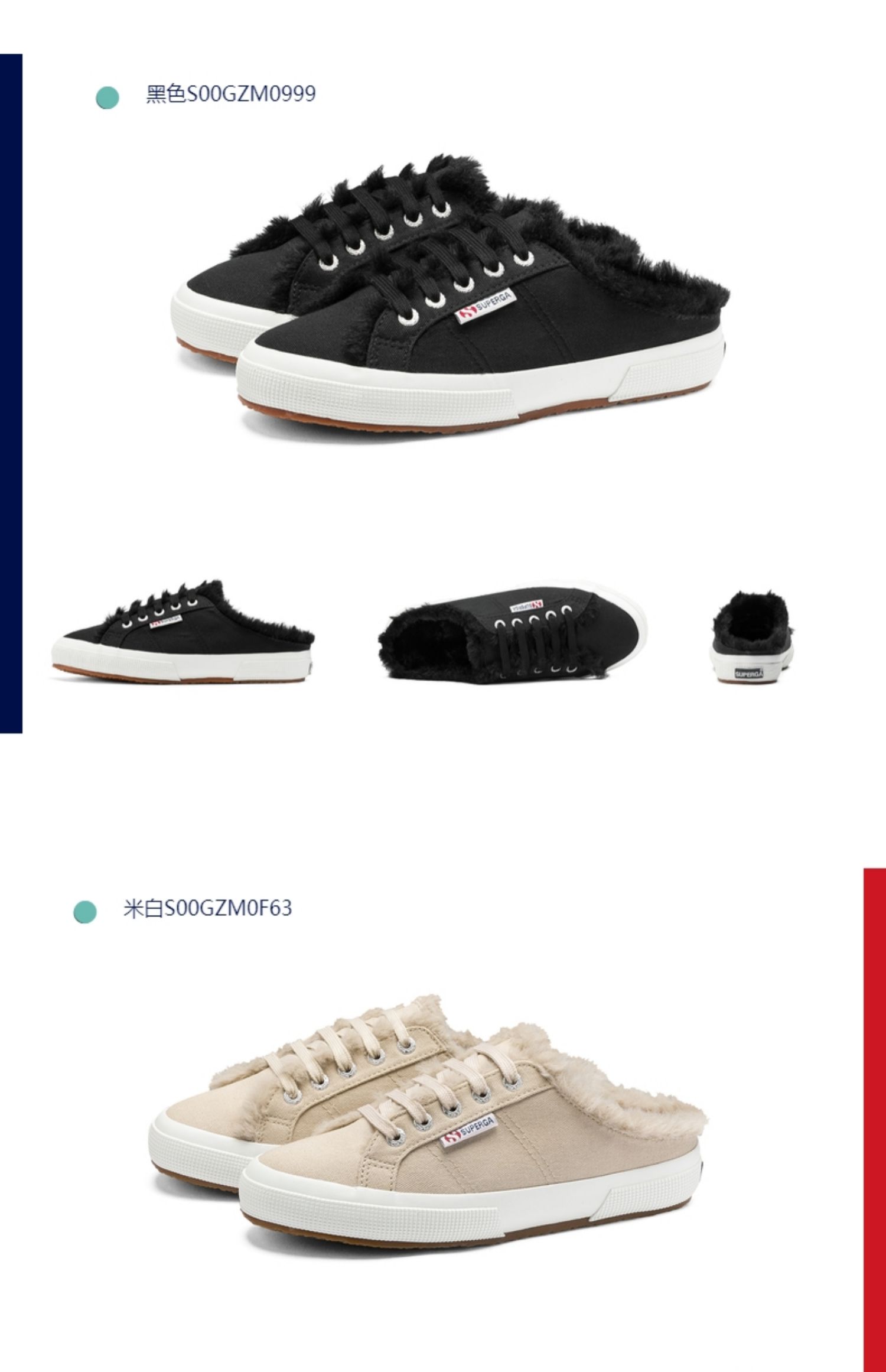 SUPERGA女鞋秋冬加绒毛毛保暖半拖平底帆布鞋 S00GZM0