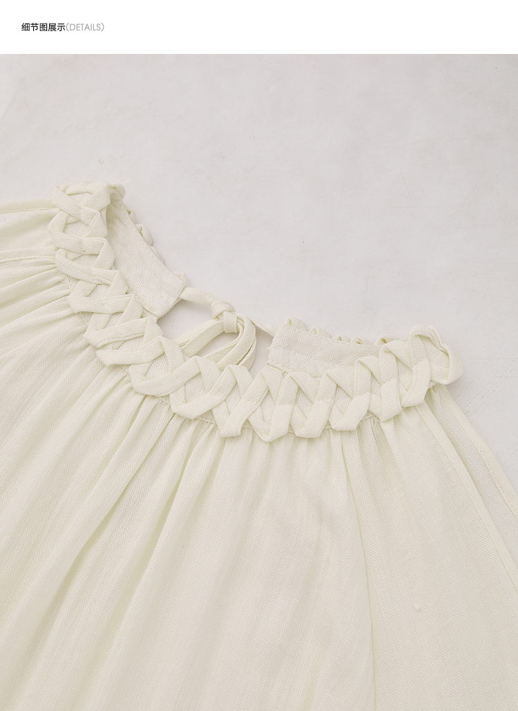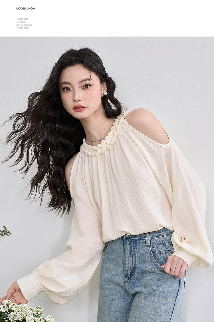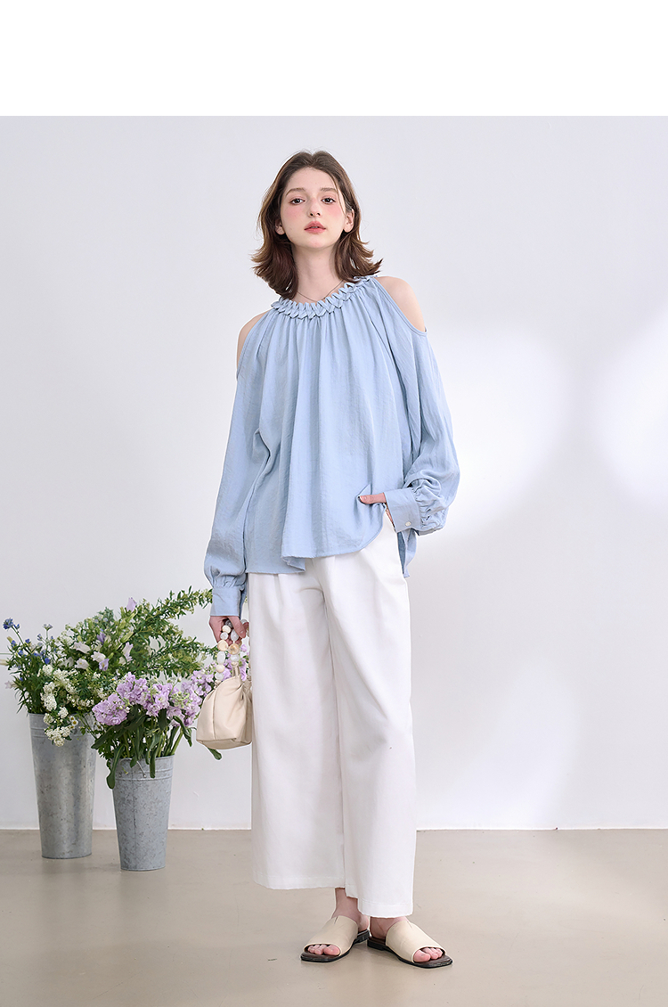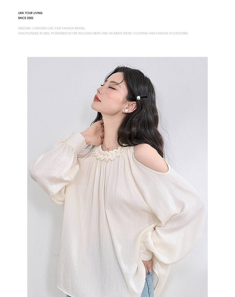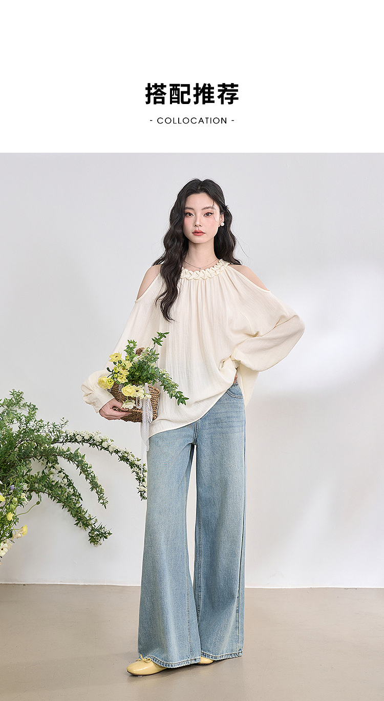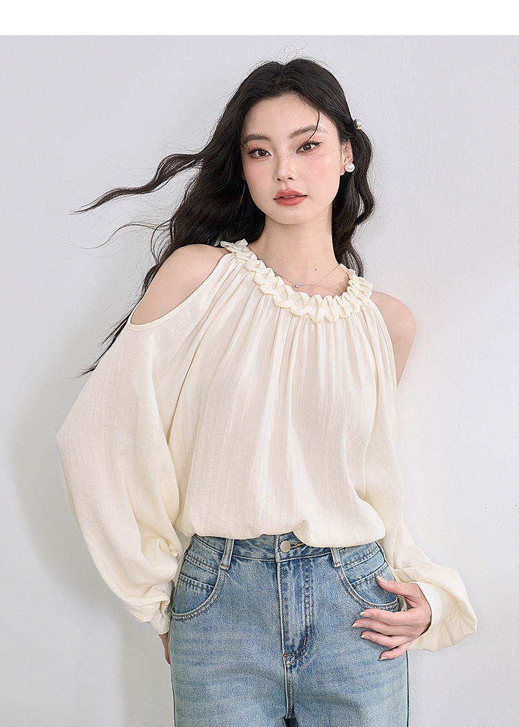 西遇黄色挂脖衬衫女新款宽松慵懒风法式露肩长袖上衣D0050460