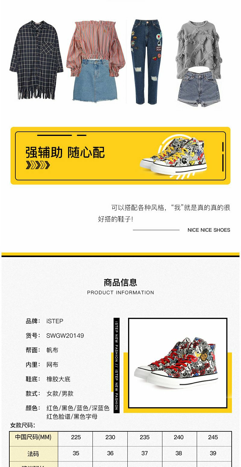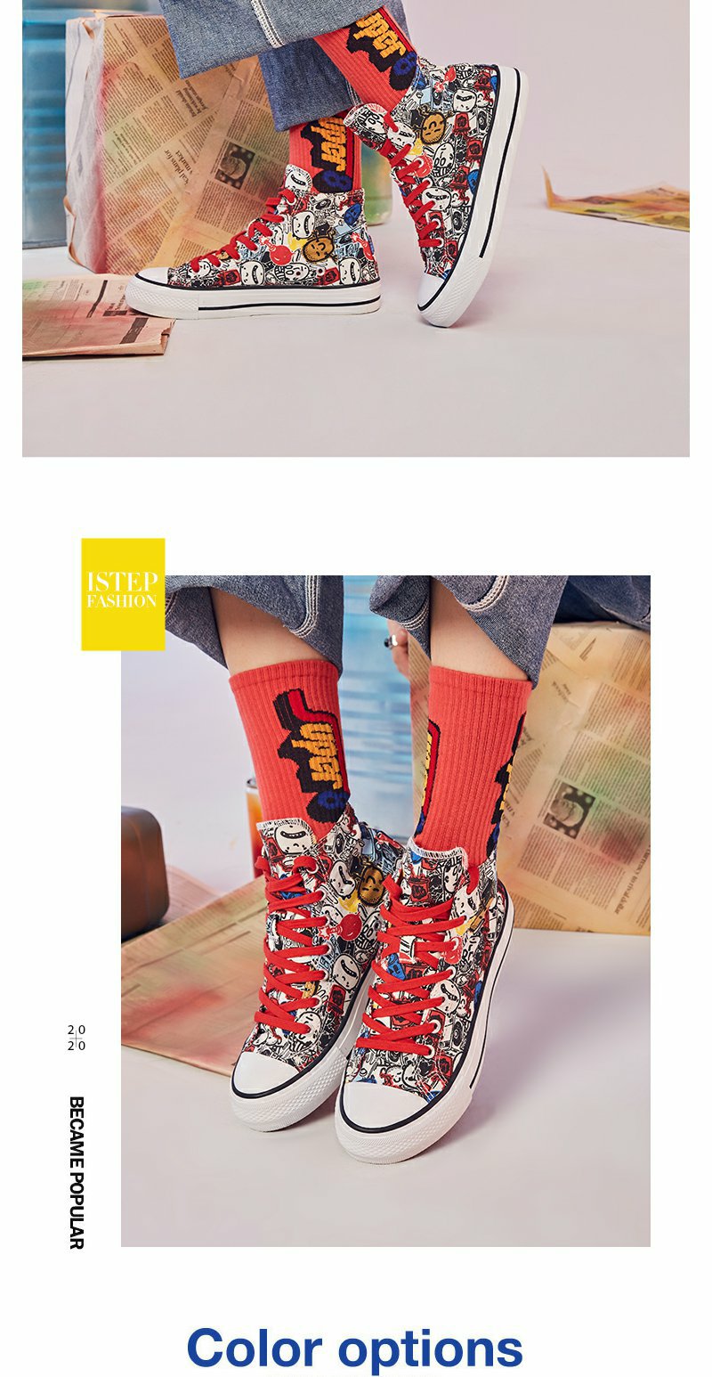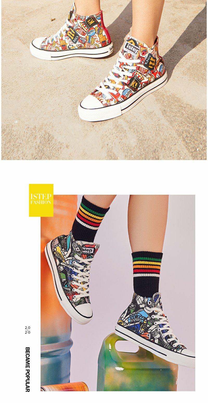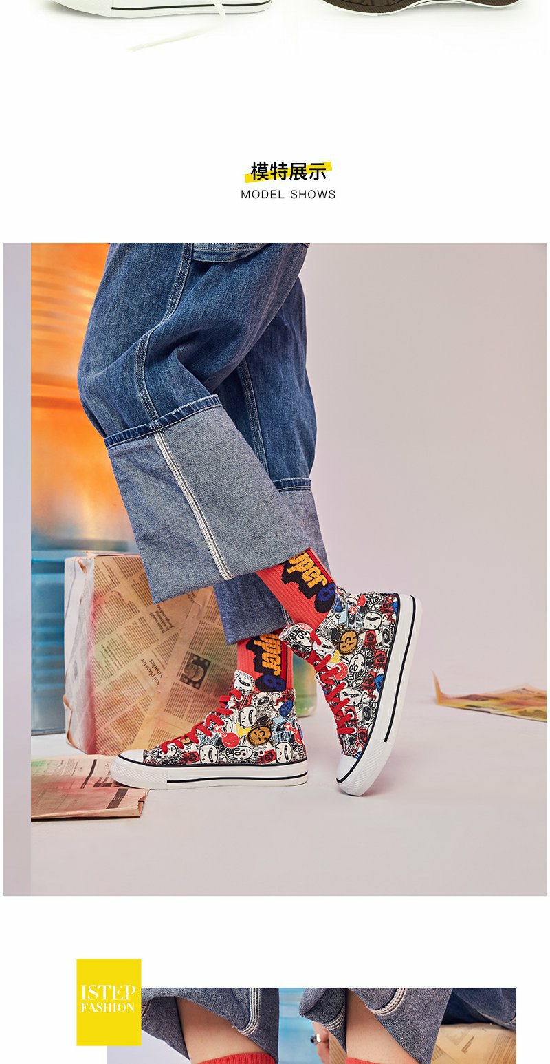 istep涂鸦个性原创高帮帆布鞋新款板鞋男女运动鞋