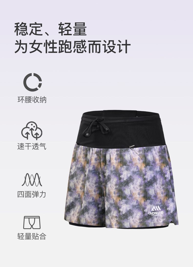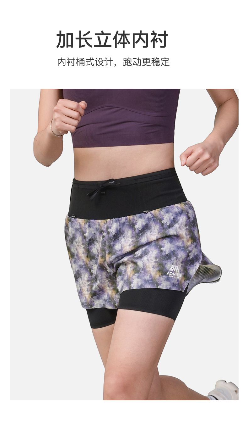 【2026新款】奥尼捷女士运动跑步越野赛双层短裤