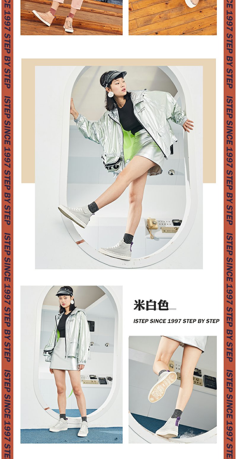 istep新款低帮溶解底三角图案棋盘格女款百搭休闲板鞋