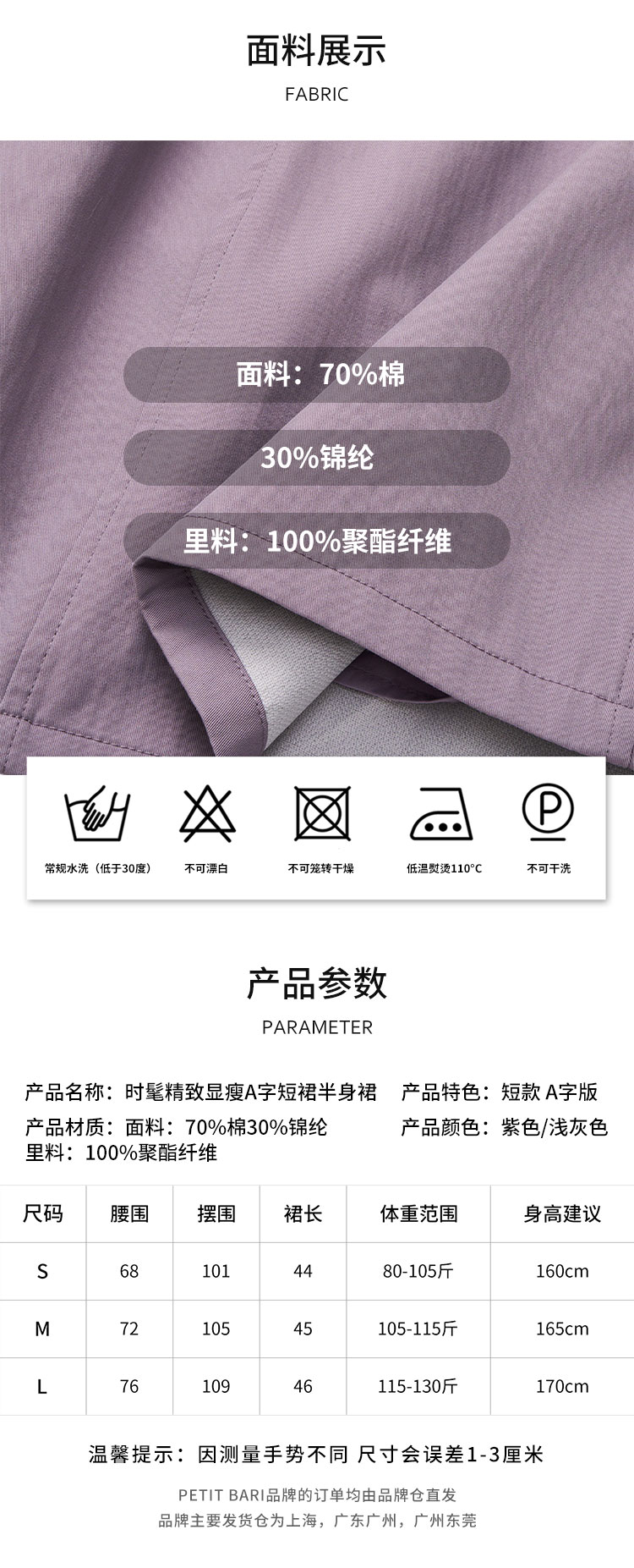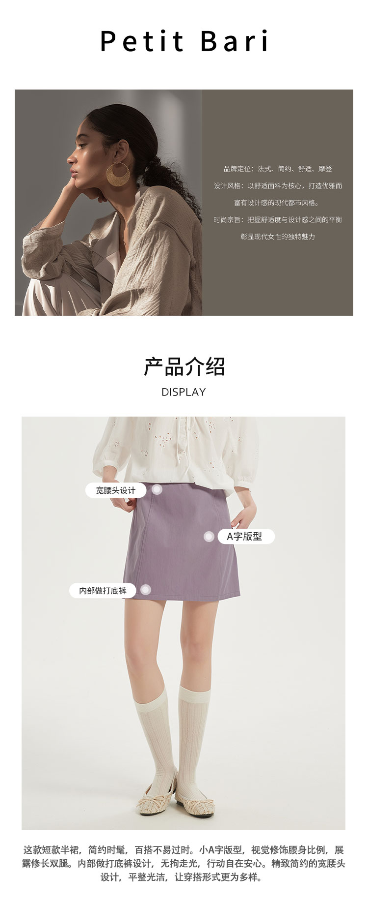 【2件9折】【Petit Bari】(多色)时髦精致显瘦A字短裙半身裙