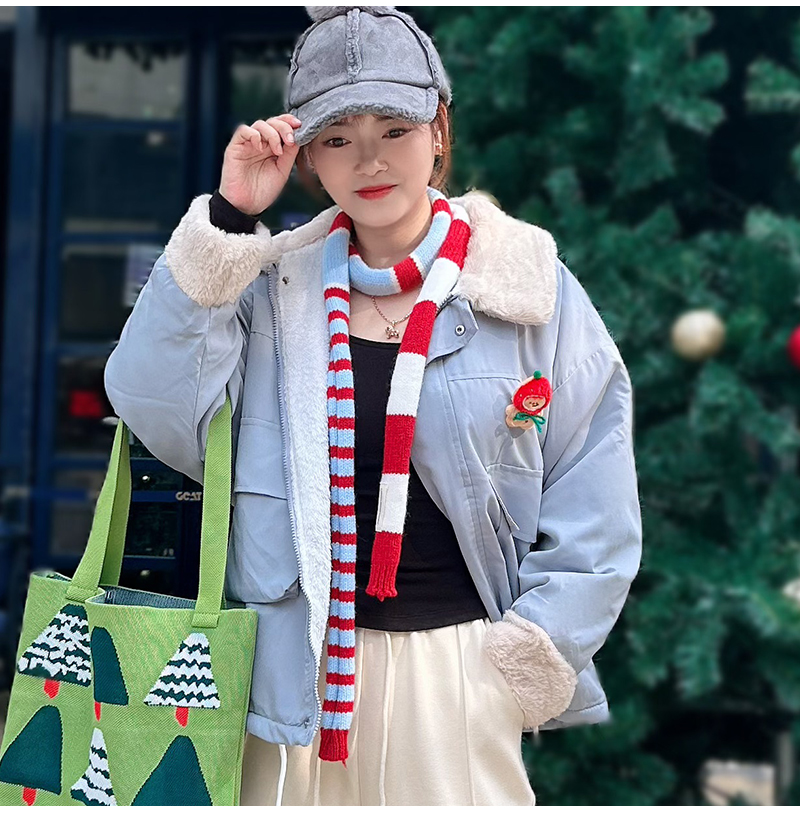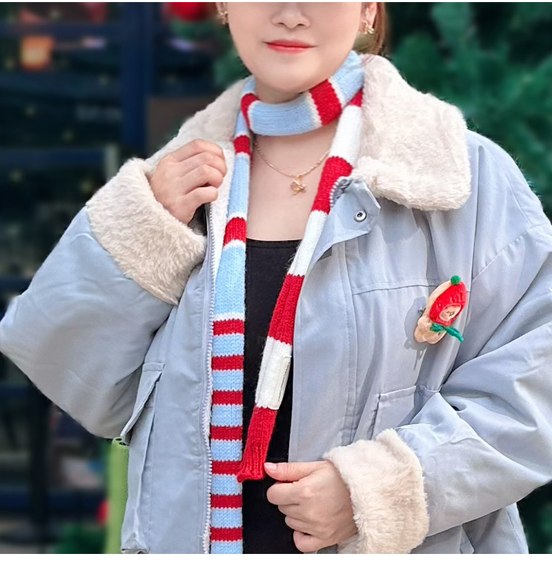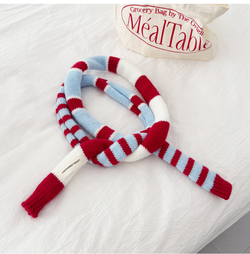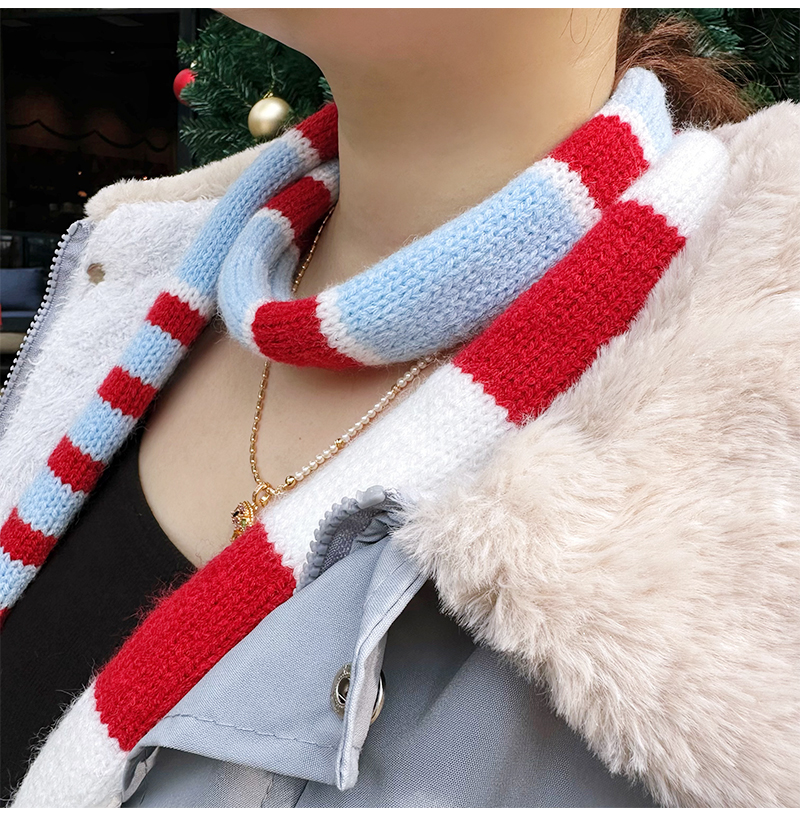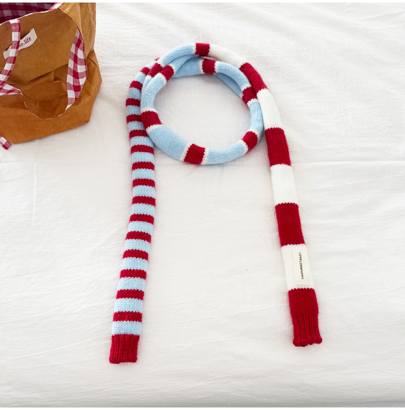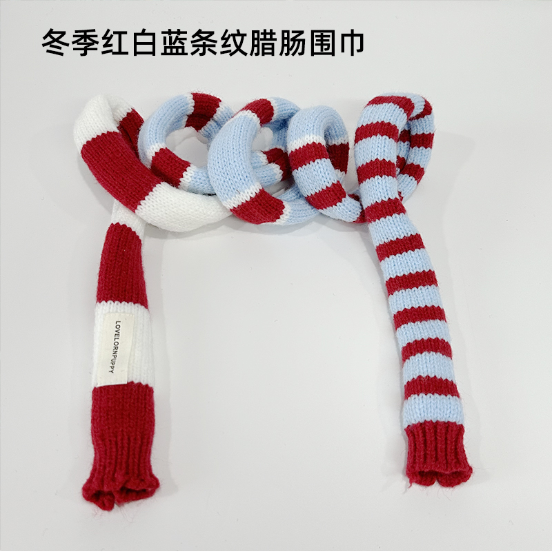 壁虎瑜伽【2601PJ475】冬季红白蓝条纹腊肠围巾 (5天发货)
