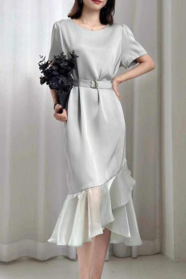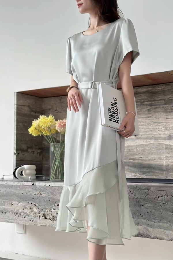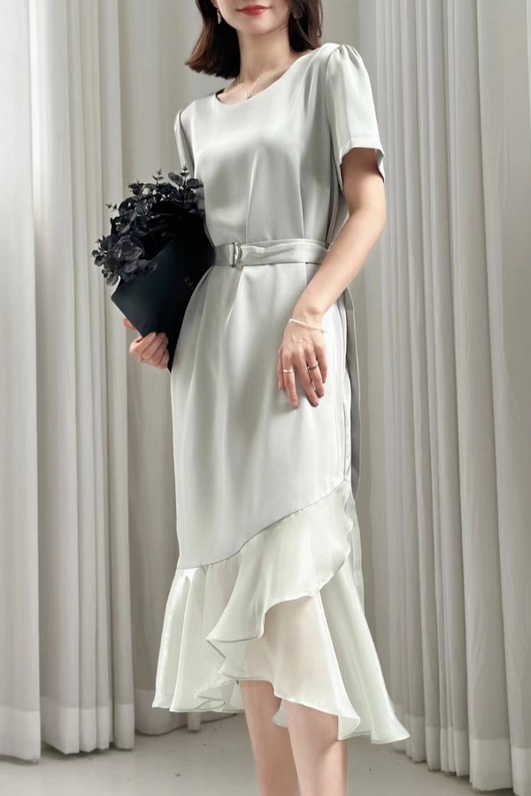 Le Malene 浪漫优雅光泽感拼接式连衣裙 20305